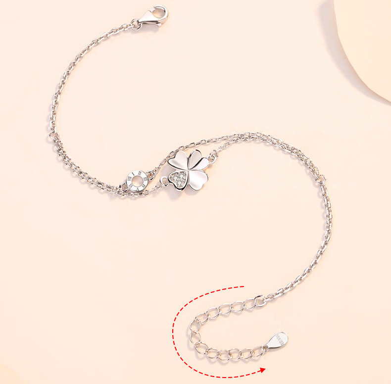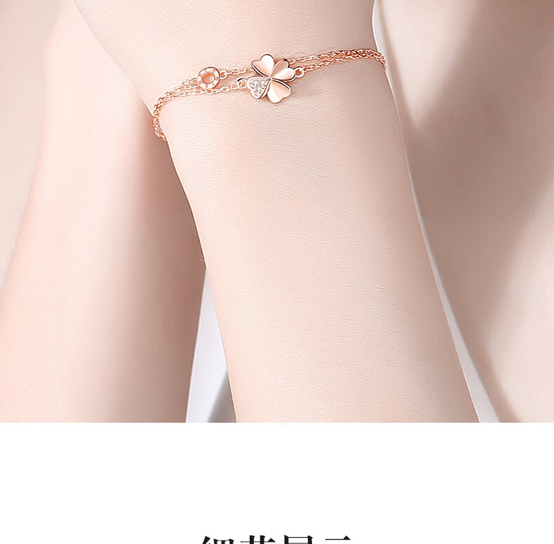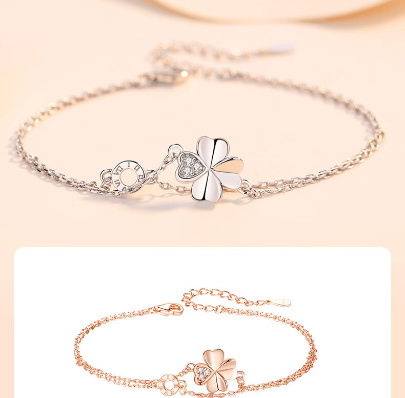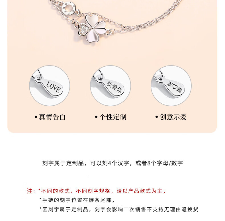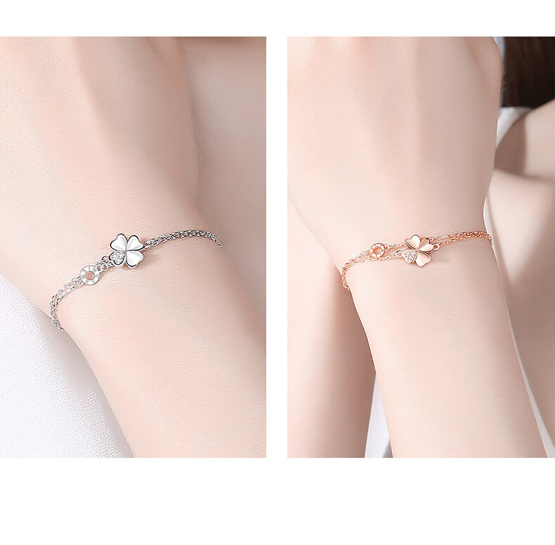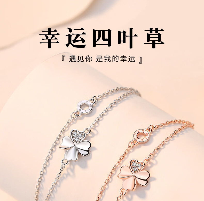 纪思乐轻奢四叶草手链女生高端珠宝首饰新年元旦生日礼物送女友老婆 白金色【四叶草手链】
