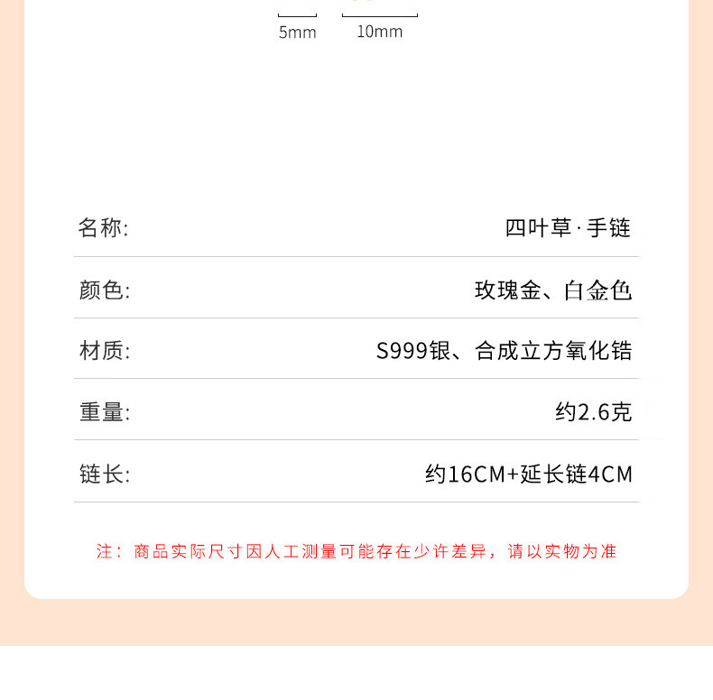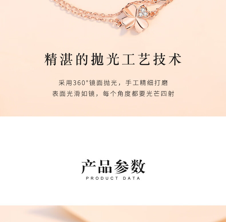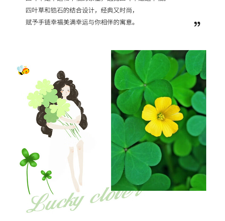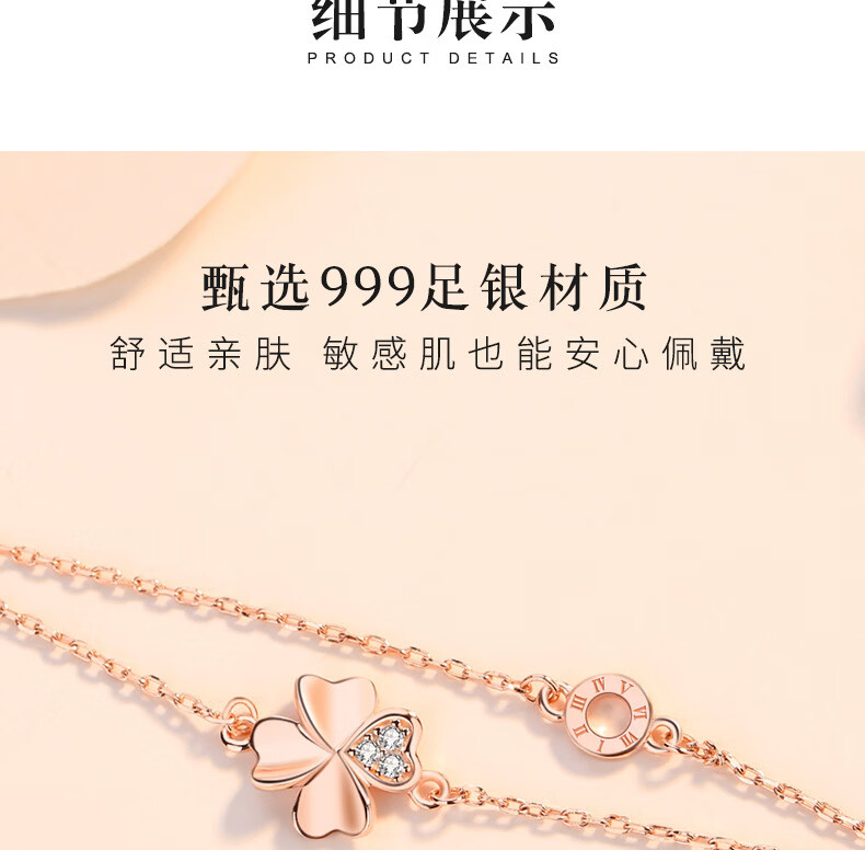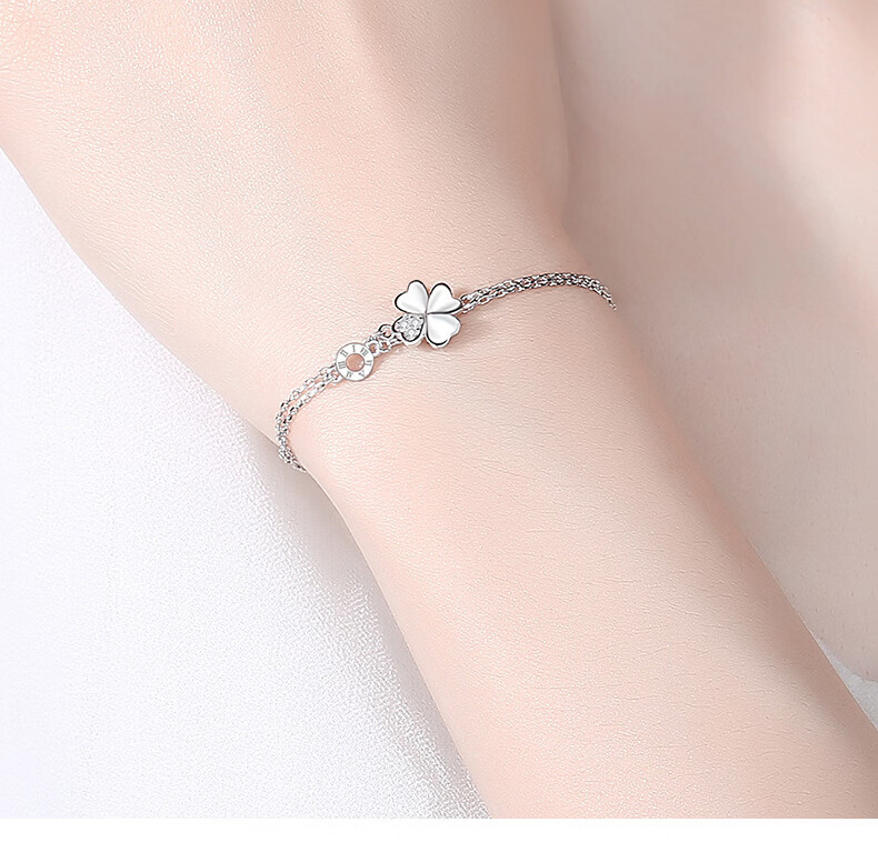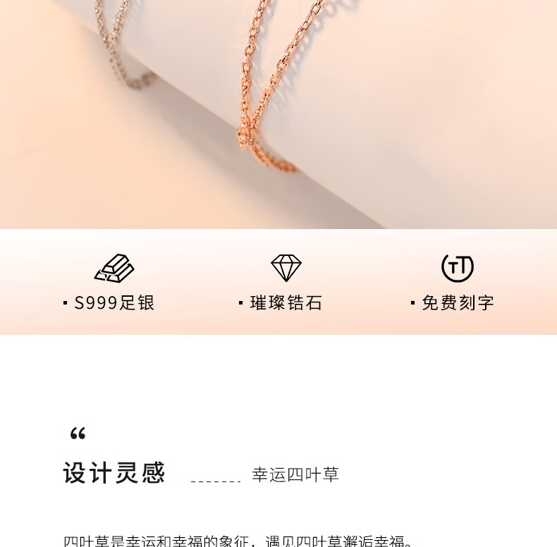 纪思乐轻奢四叶草手链女生高端珠宝首饰新年元旦生日礼物送女友老婆 白金色【四叶草手链】