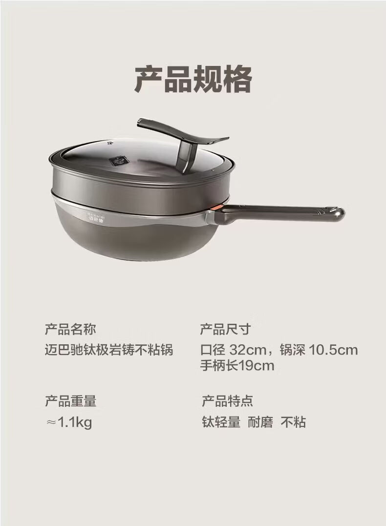 迈巴驰【升级款】极岩铸不粘锅电磁炉锅炒锅无涂层炒菜锅电磁炉燃气灶 【迈巴驰】全新升级款轻奢炒锅 32cm