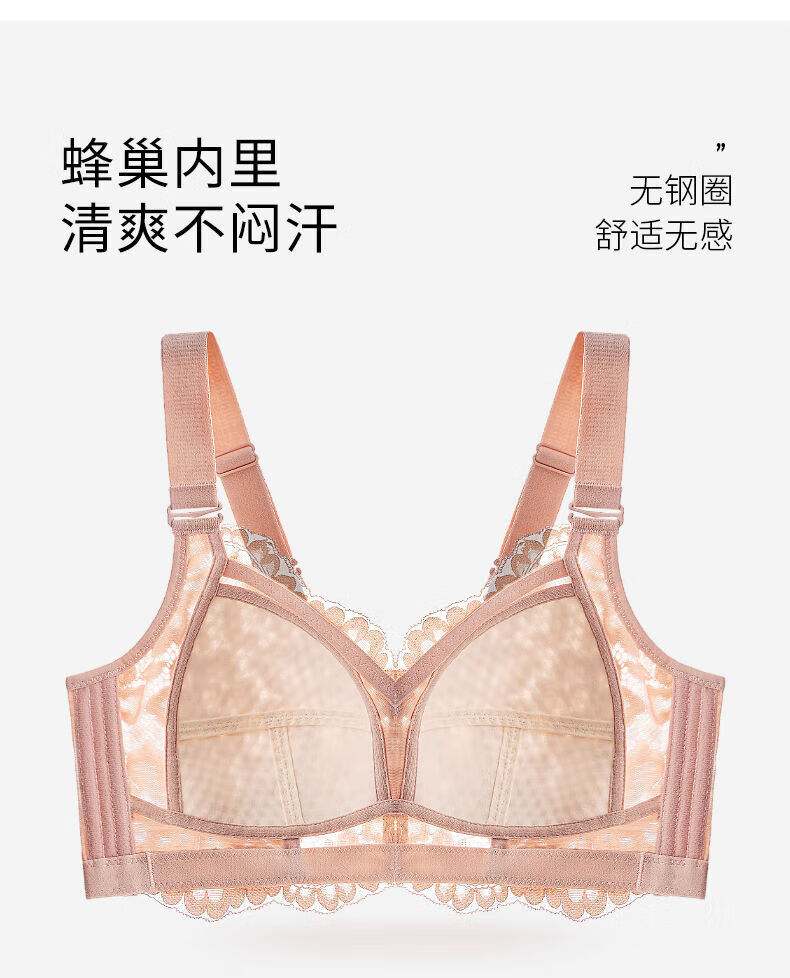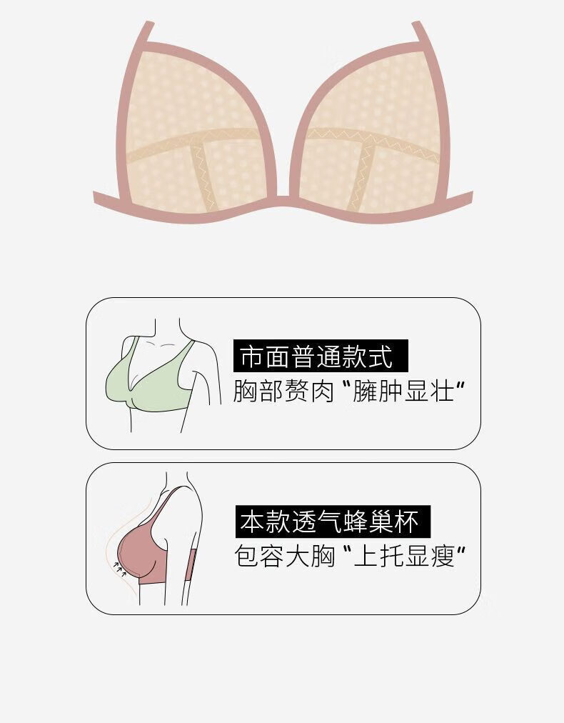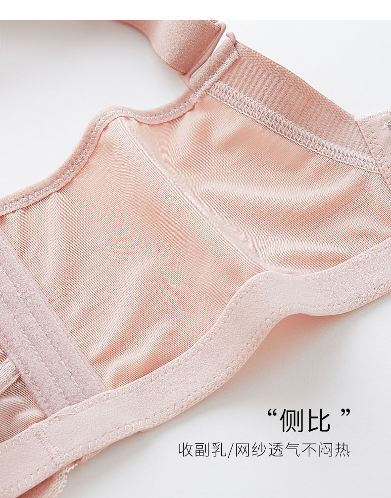千奈美内衣大胸显小防下垂收副乳无钢圈缩胸神器大杯调整型文胸罩 藕粉色 80B