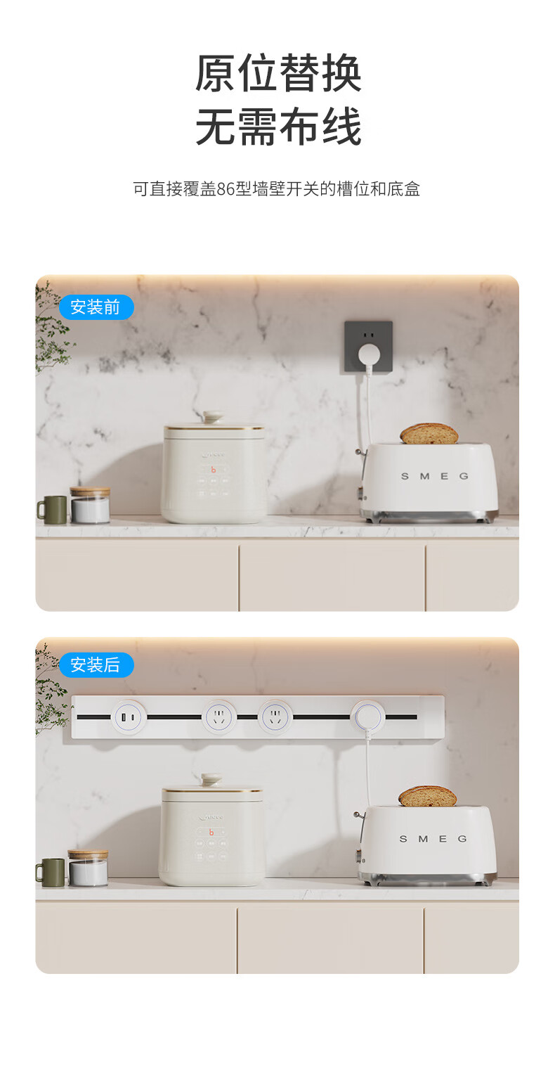 小米有品轨道插座德国品质免打孔厨房餐边柜客厅可移动电力滑盖插排插线板 黑色40公分轨道+4个五孔