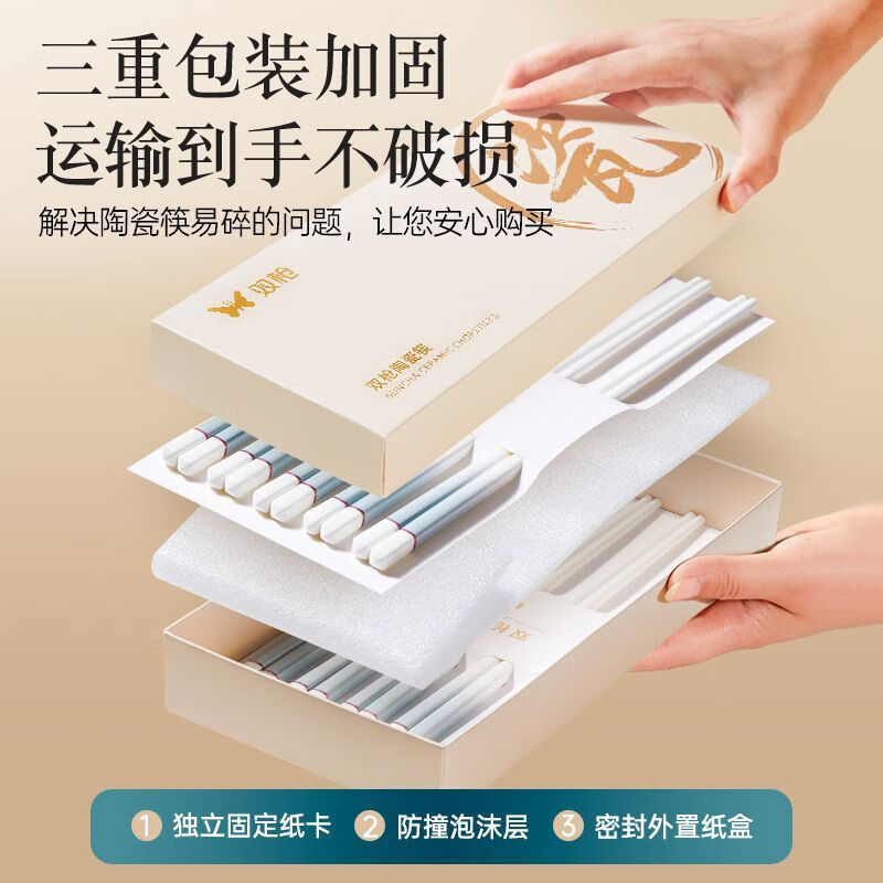 双枪(Suncha)陶瓷筷子家用抗霉耐高专人专用瓷筷送礼礼盒 【瓷韵天成-玉箸拈香】 凝脂白玉 10双 【精致礼盒装】