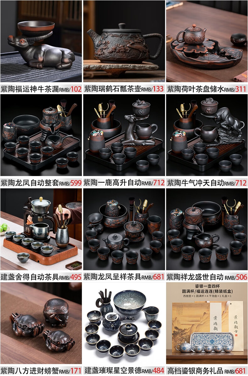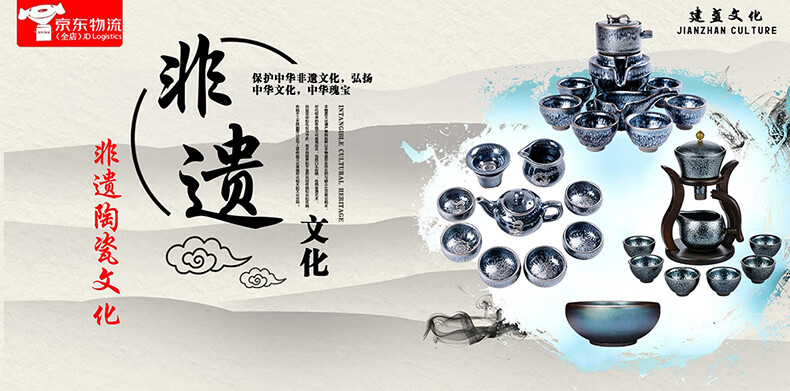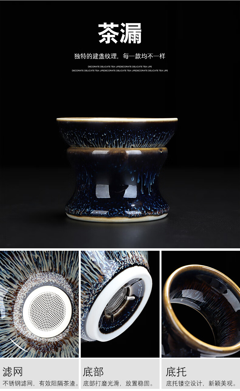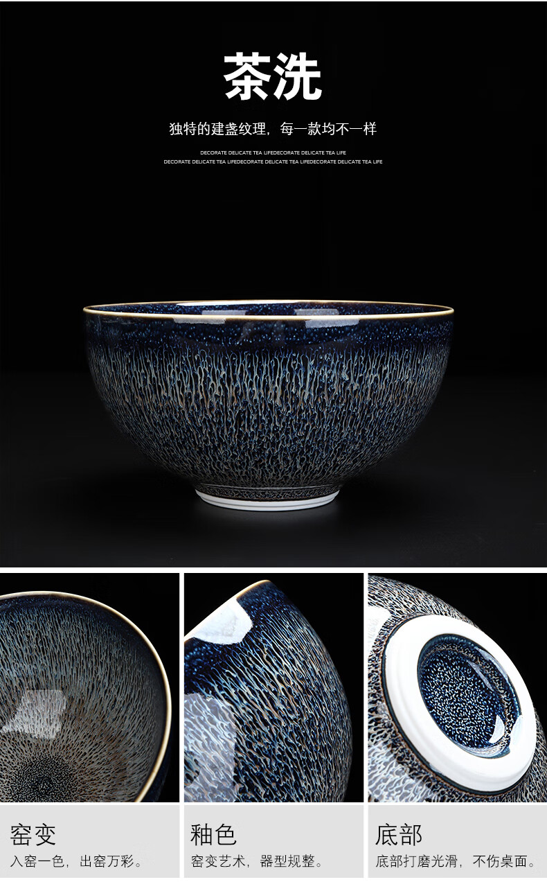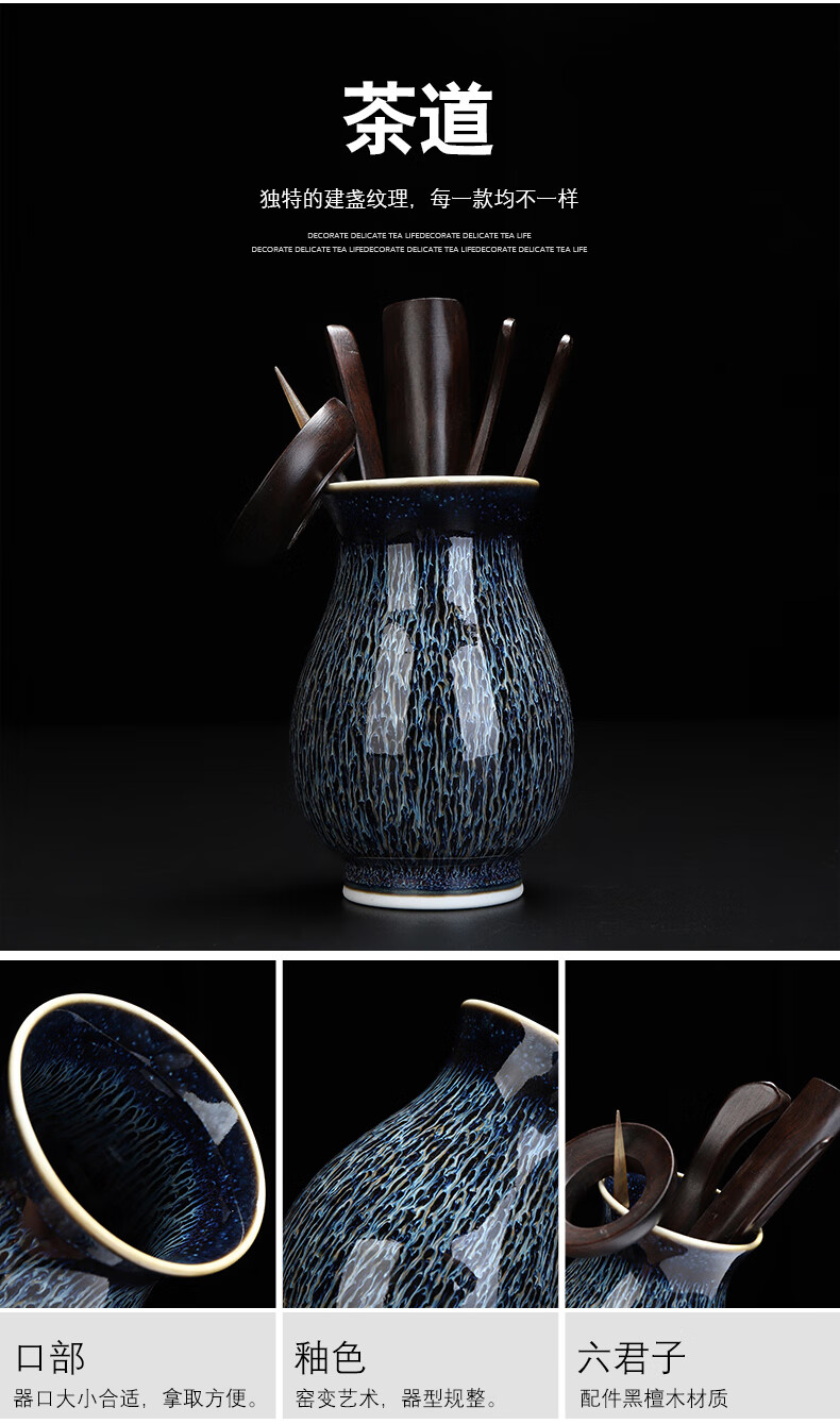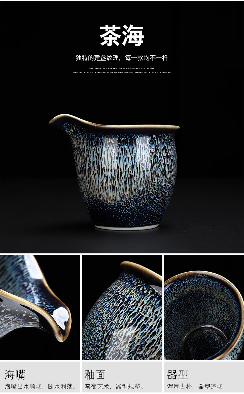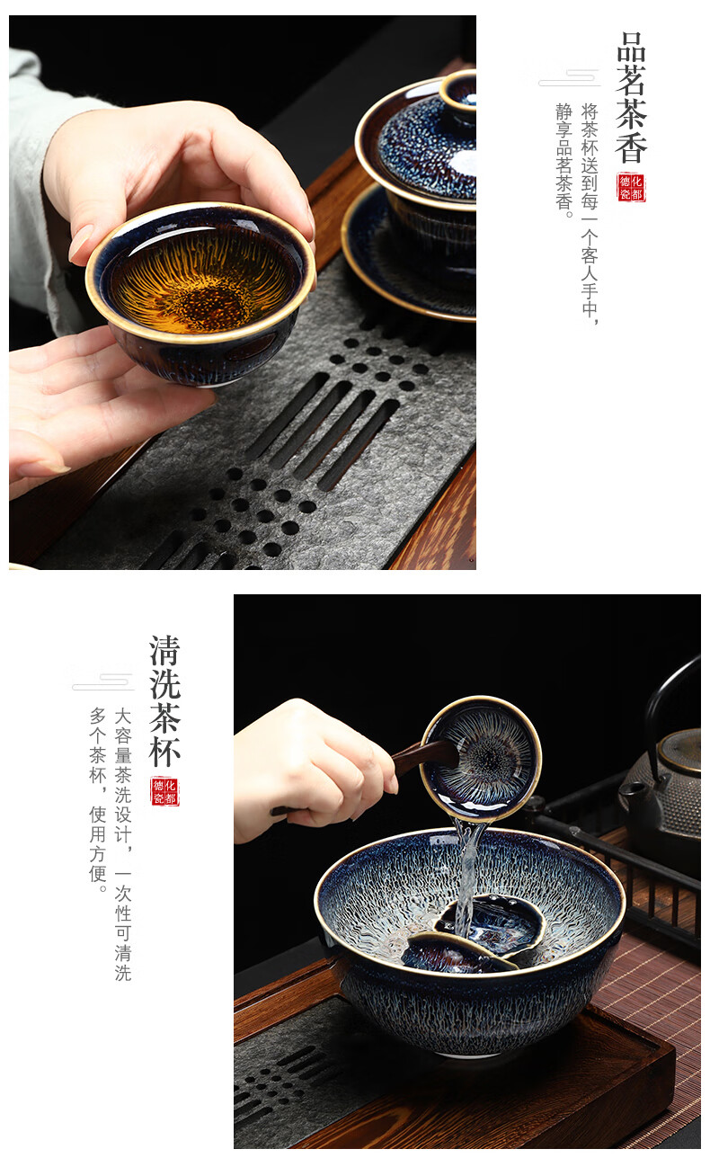 正扬建盏茶具套装家用整套窑变油滴天目铁胎茶壶茶盏杯功夫陶瓷景德镇 15头(璀璨星空)_侧把(竹节壶)