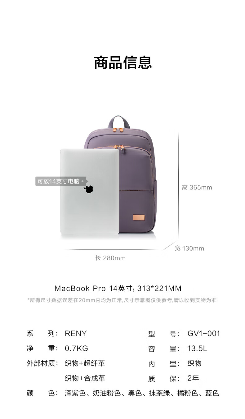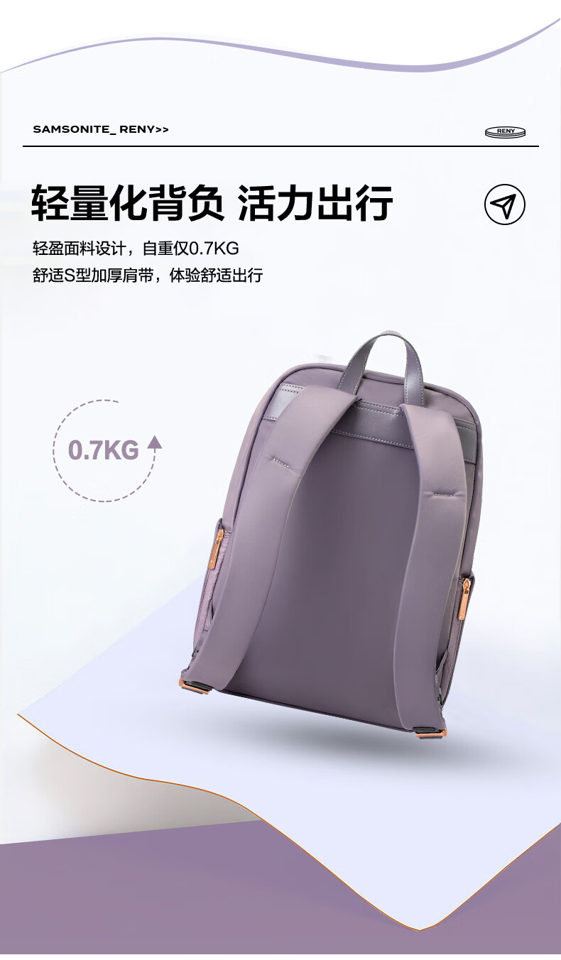 新秀丽(Samsonite)双肩包13英寸电脑包女士背包大学生书包简约时尚旅行包新年礼物