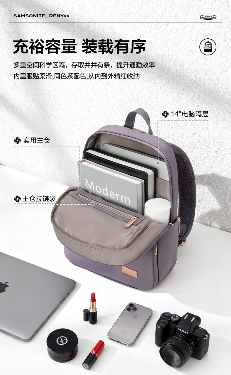 新秀丽(Samsonite)双肩包女14英寸笔记本电脑包旅行背包书包商务出差升级款新年礼物