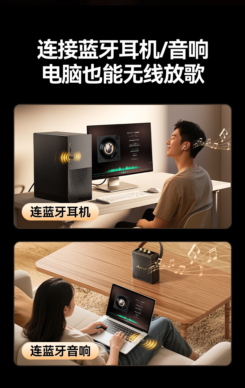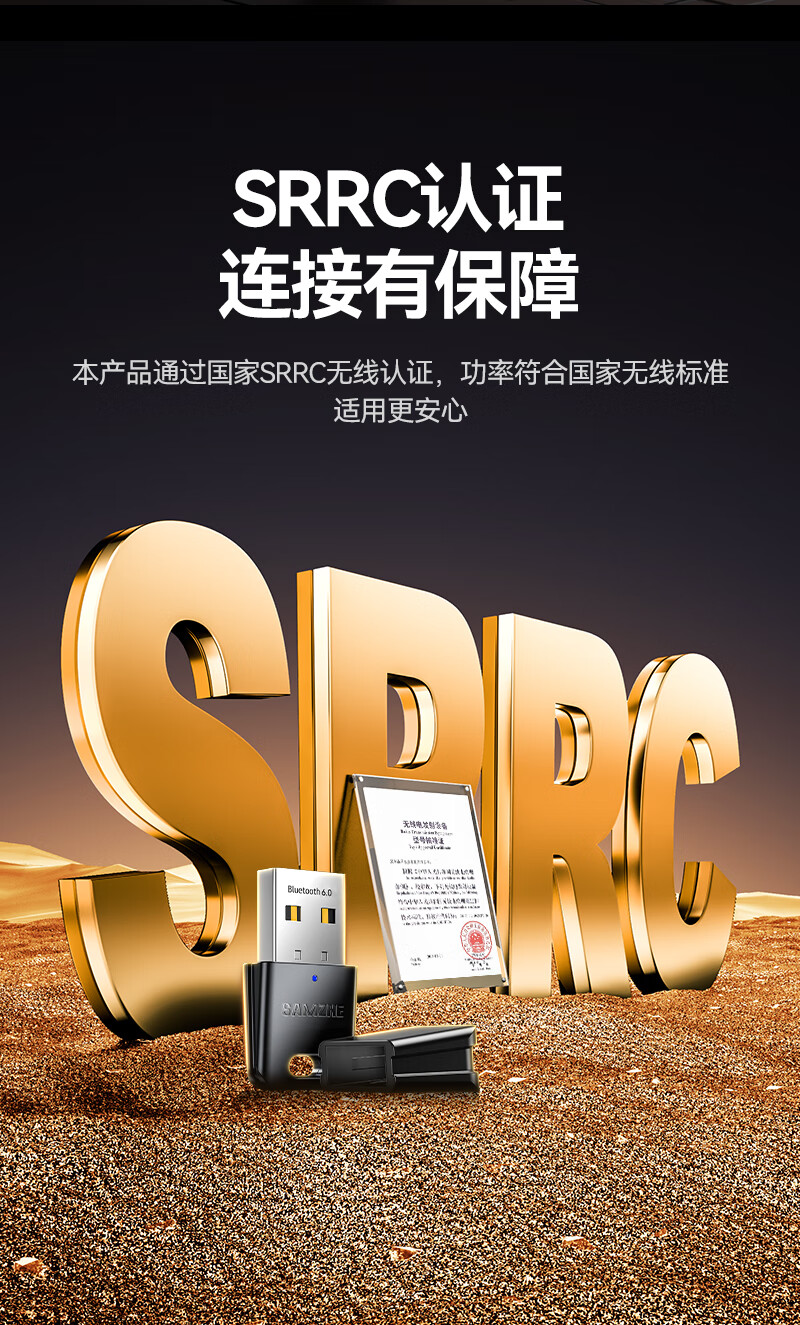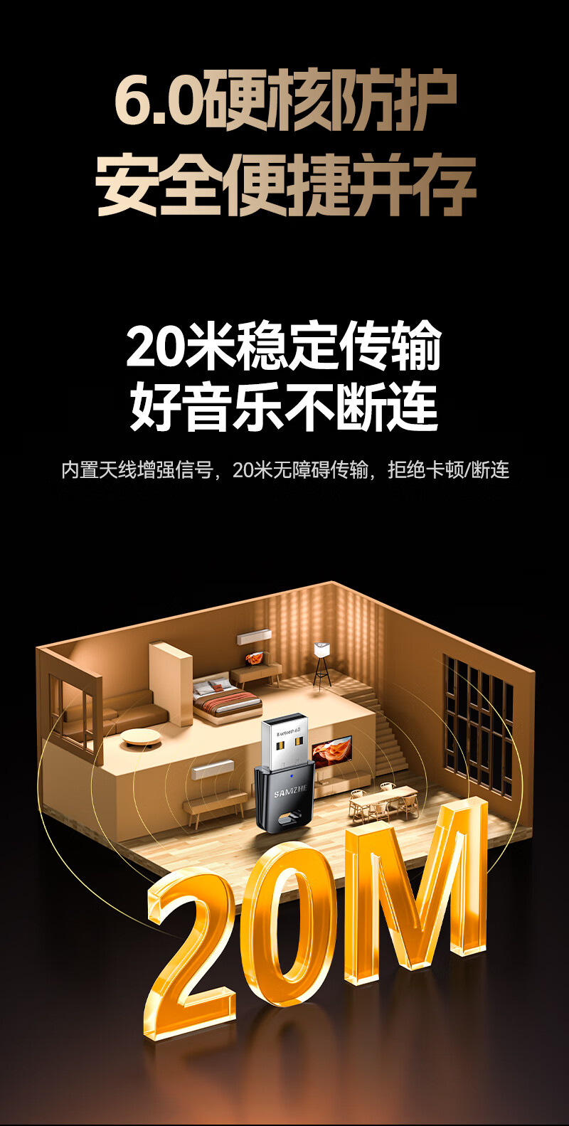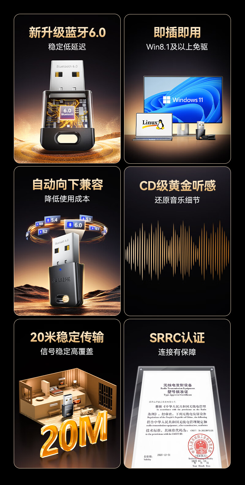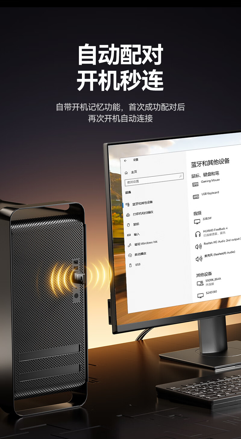 山泽USB蓝牙适配器6.0接收器发射器 电脑台式机键盘鼠标音响音频耳机ps5手柄pc外置无线免驱蓝牙模块