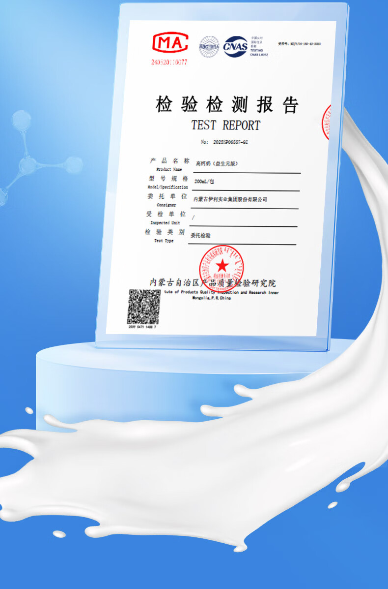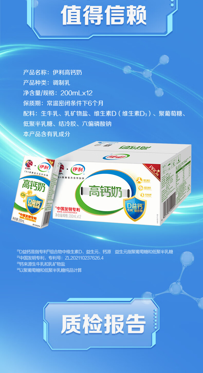 伊利专利高钙牛奶 200ml*12盒 添加维生素D 益生元 礼盒装