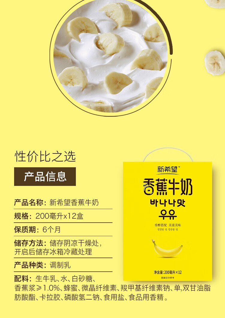 新希望香蕉牛奶礼盒装送礼佳品200ml*12盒*2箱12月生产(乳制品非饮料) 200ml*24盒