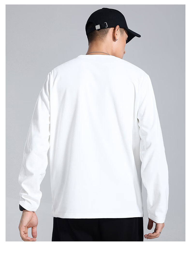 真维斯(Jeanswest)重磅纯棉长袖t恤男春秋季2026男士内搭打底衫男款宽松休闲体恤衫 冰蓝 四列笔刷白 M