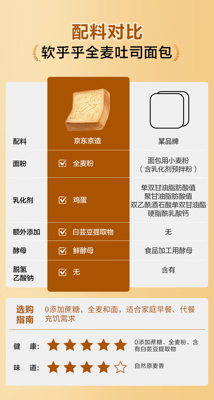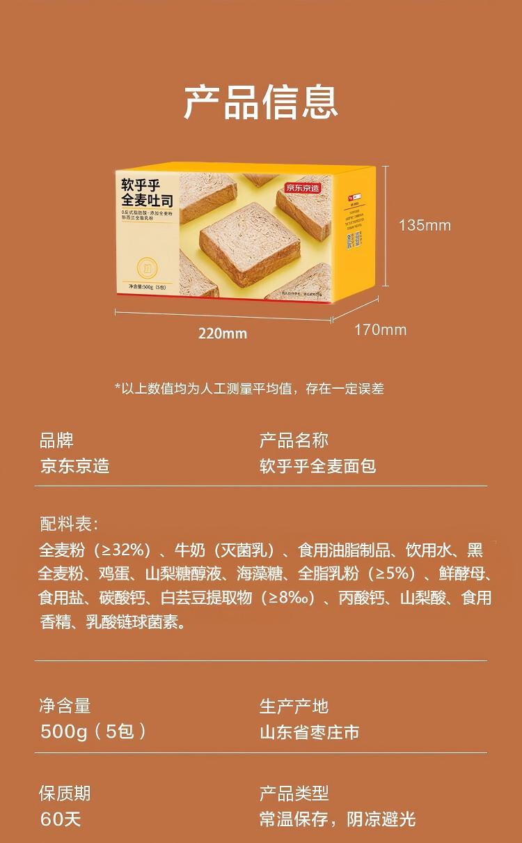 京东京造厚切全麦吐司面包500g早餐面包健身轻食代餐新鲜日期0添加蔗糖