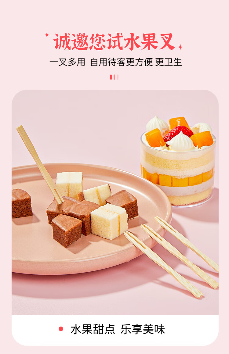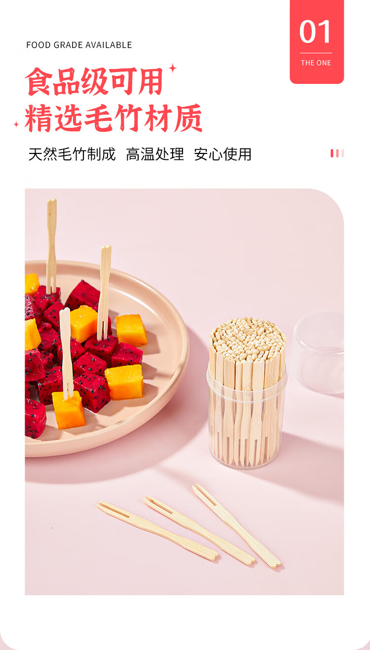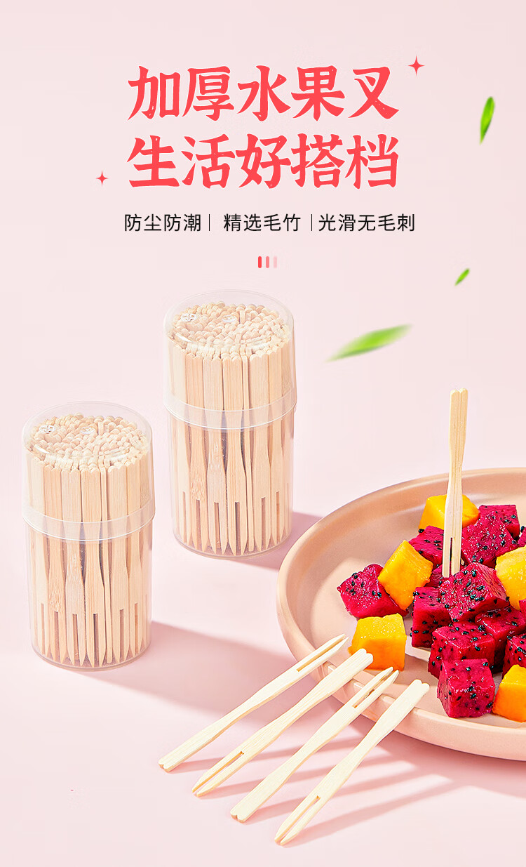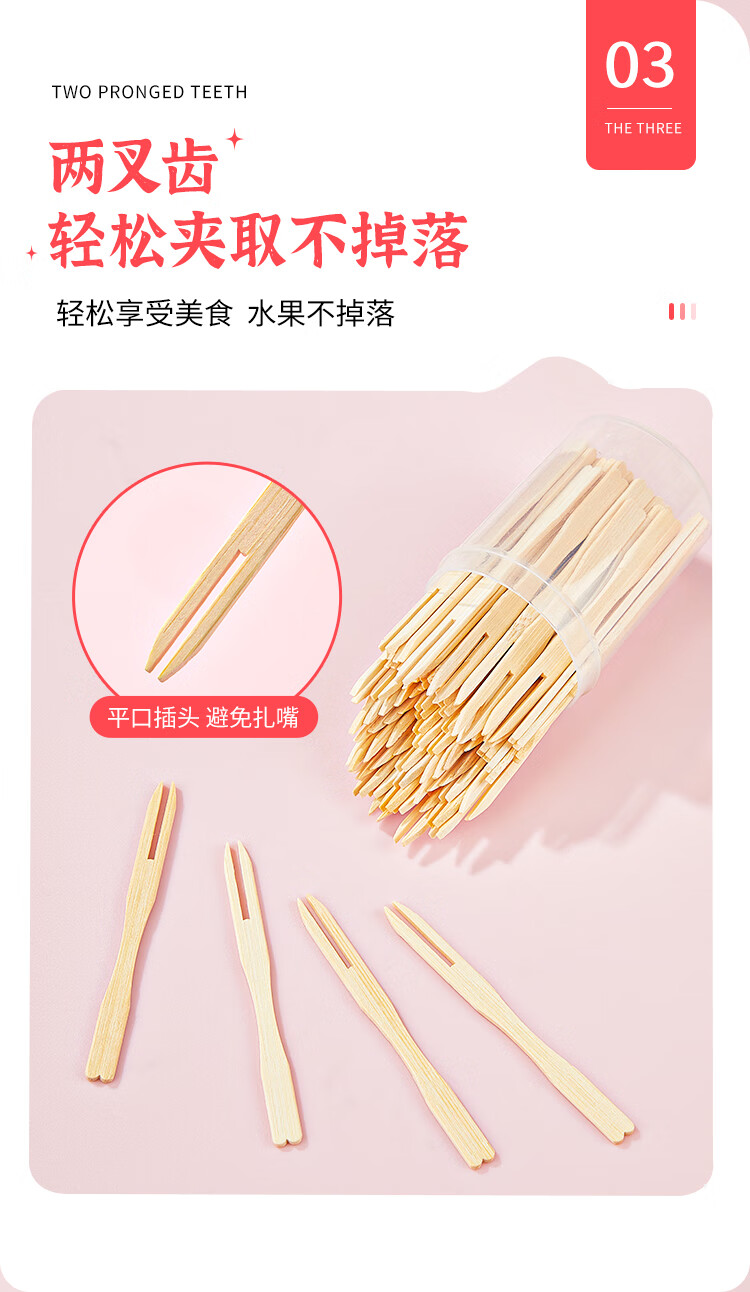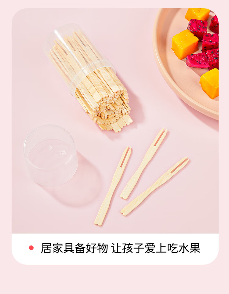 优奥水果叉一次性叉子200支加厚型竹制叉子蛋糕甜品叉水果签