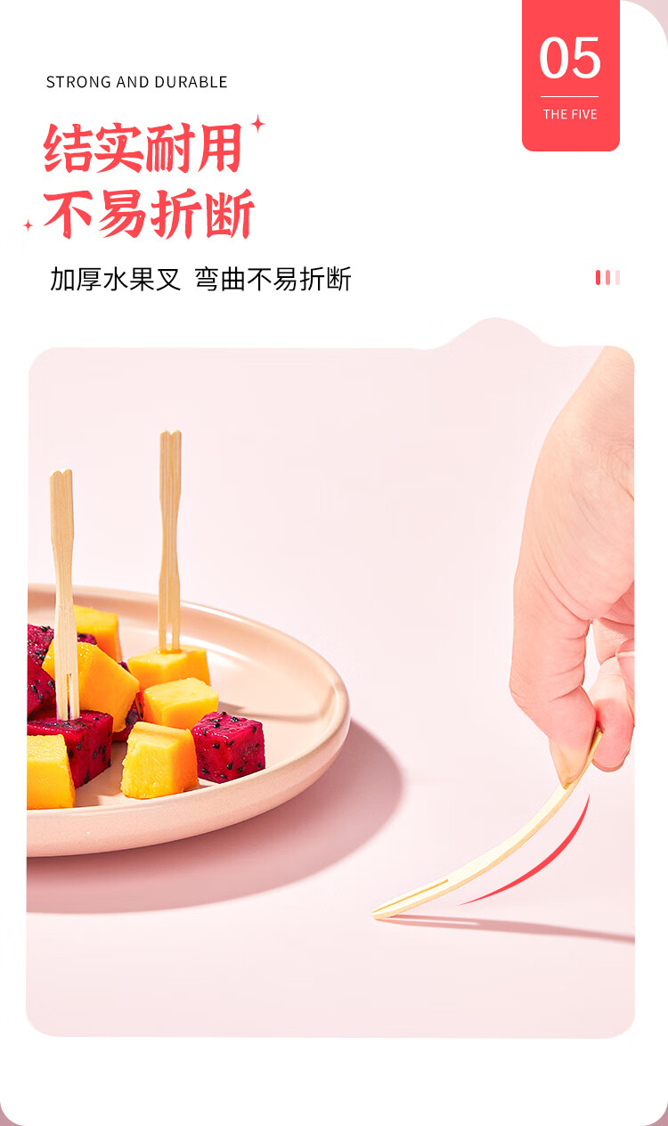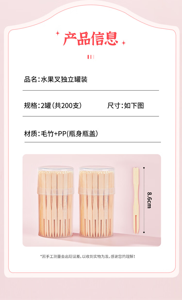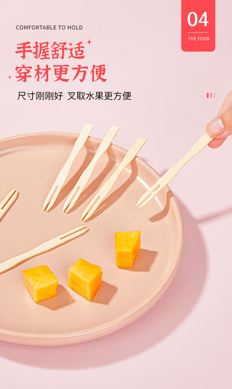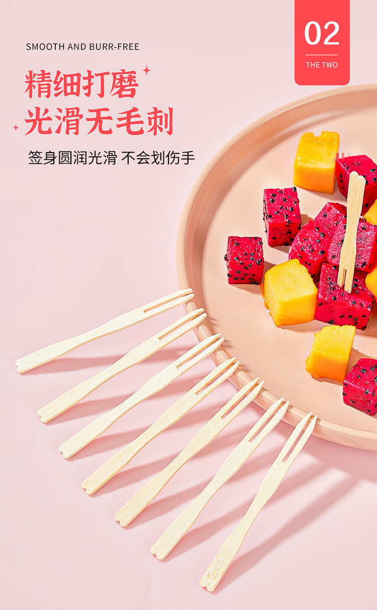 优奥水果叉一次性叉子200支加厚型竹制叉子蛋糕甜品叉水果签
