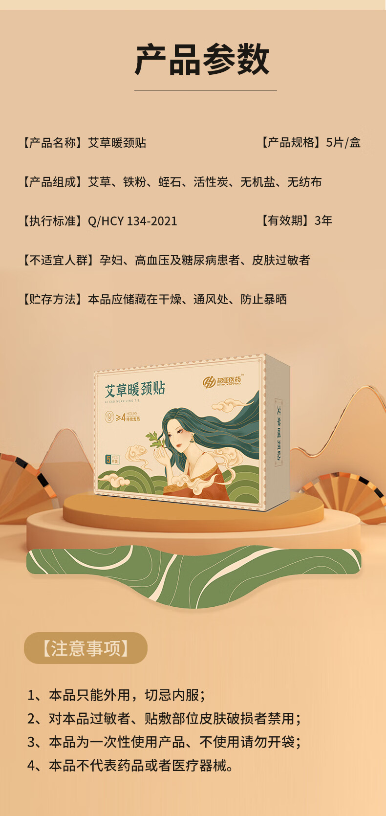超亚艾草暖颈贴颈椎贴热敷贴关节贴空调房艾灸肩周痛低头族贴5片/盒