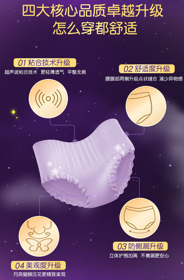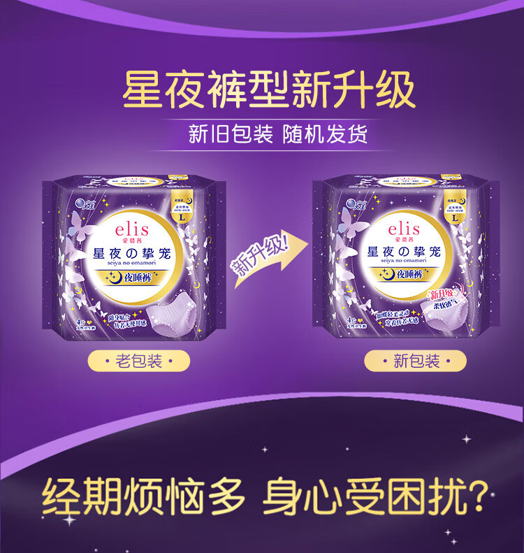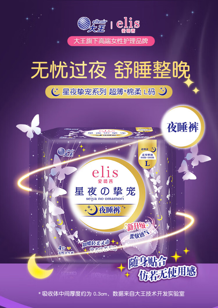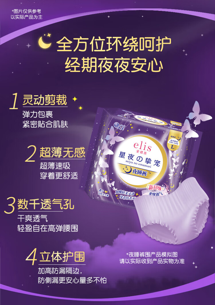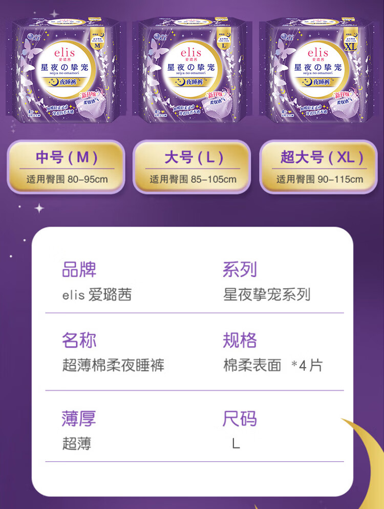 爱璐茜(elis)星夜挚宠医护级超薄安睡裤L大码4条安心裤经期姨妈裤100-140斤