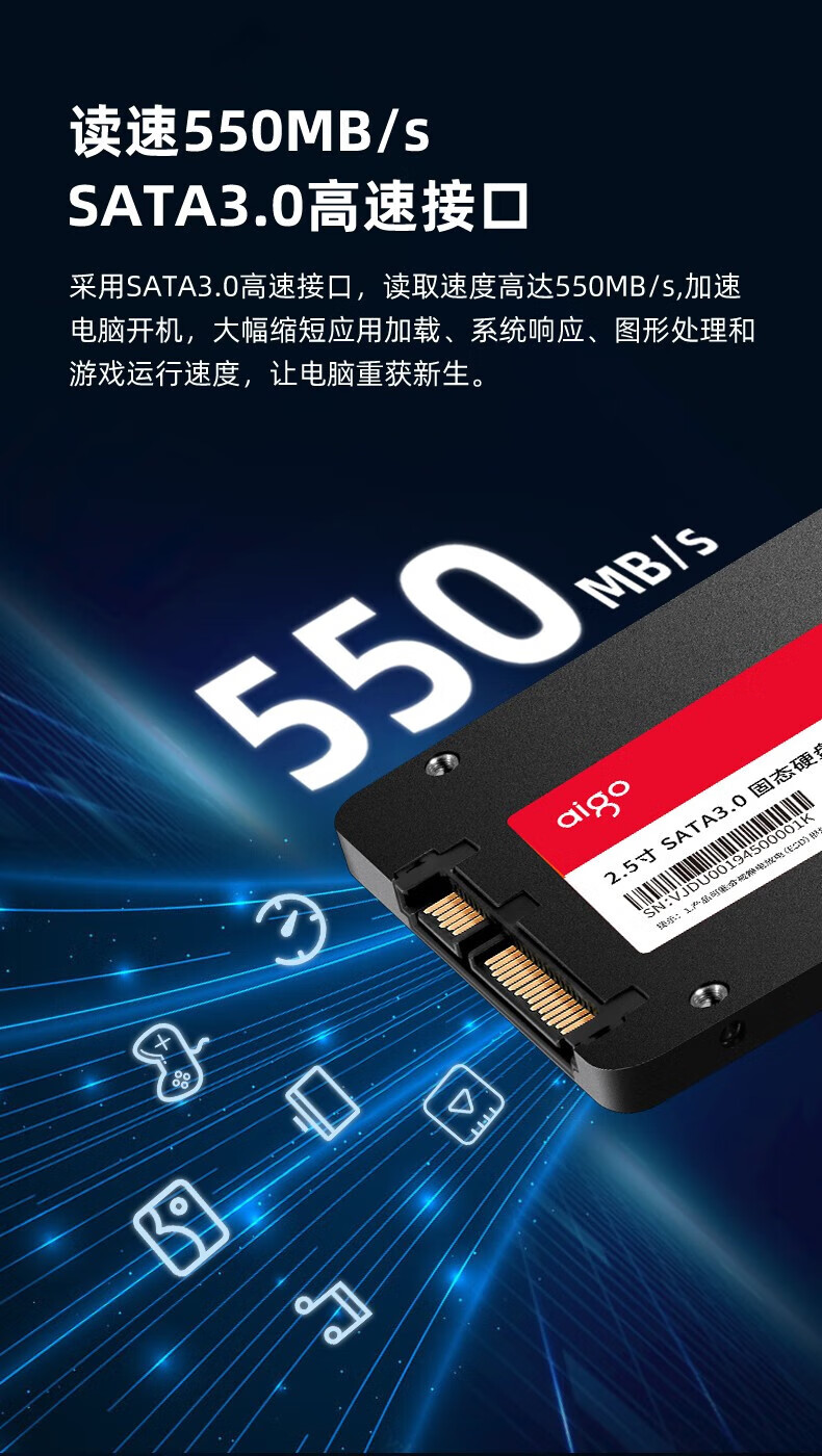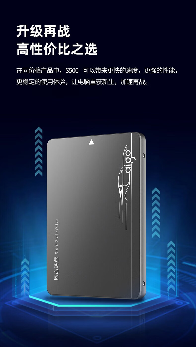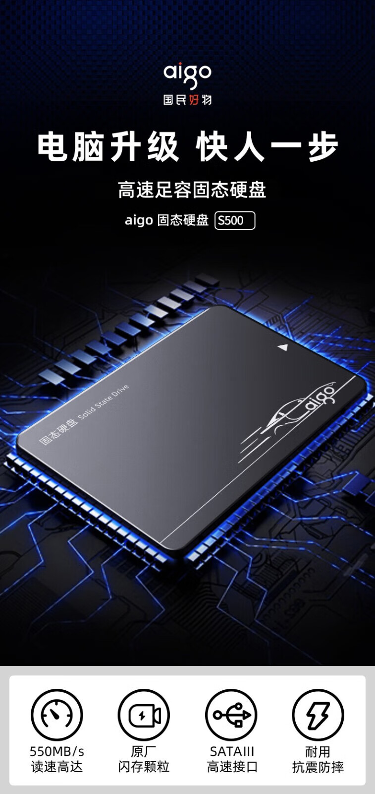 爱国者(aigo)1TB SSD固态硬盘 SATA3.0接口 2.5英寸 台式机笔记本系统盘 原厂颗粒读速550MB/s 存储配件S500