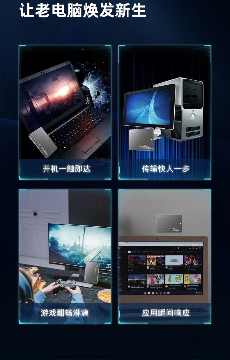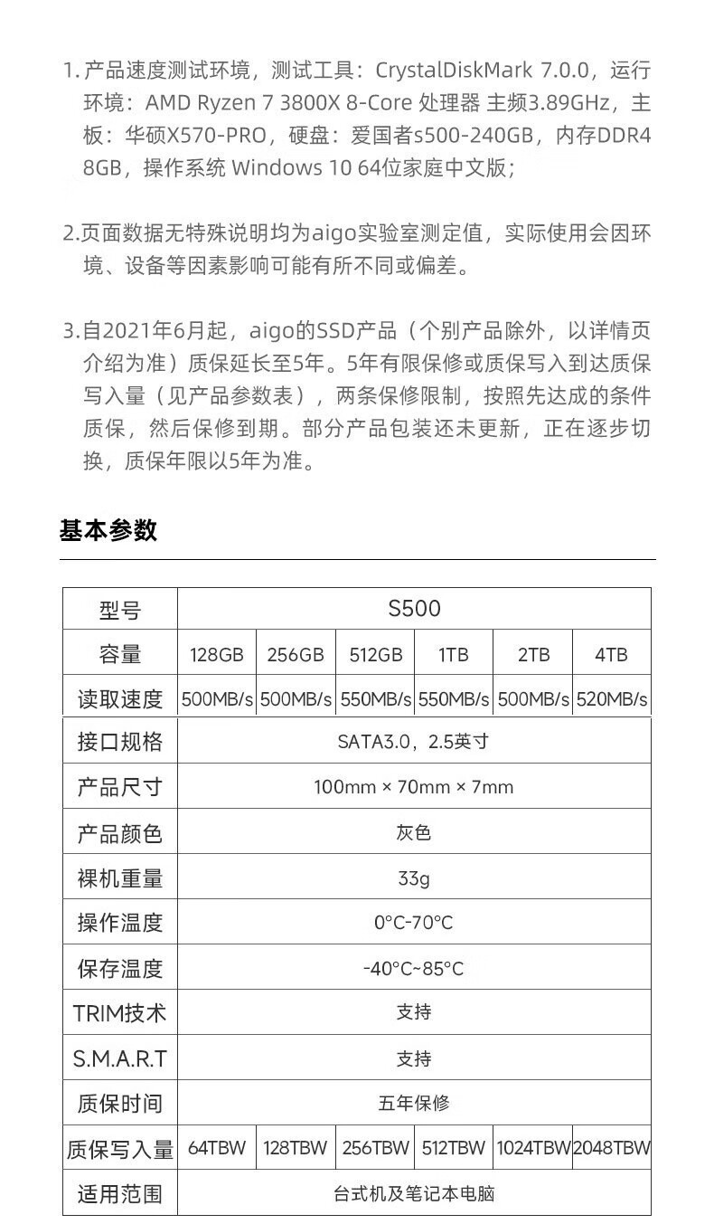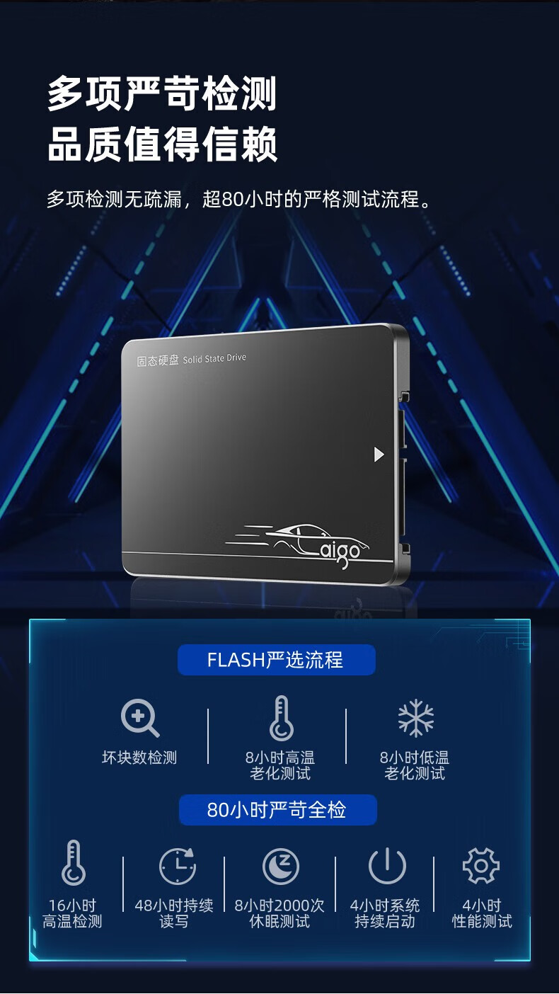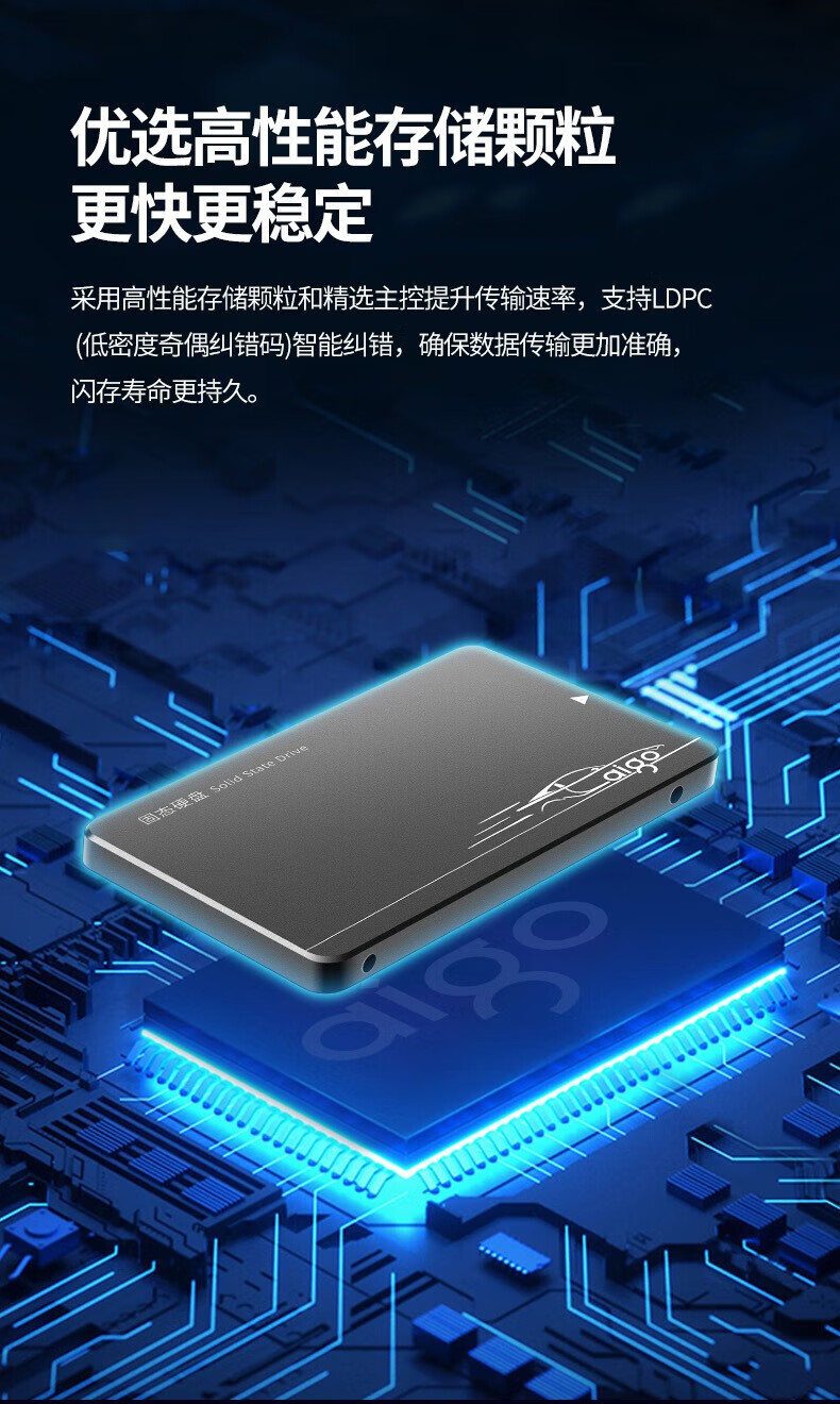 爱国者(aigo)1TB SSD固态硬盘 SATA3.0接口 2.5英寸 台式机笔记本系统盘 原厂颗粒读速550MB/s 存储配件S500