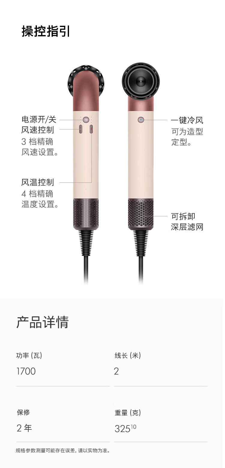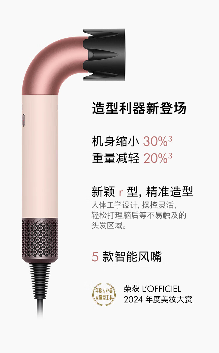 戴森(DYSON)精准造型吹风机 Supersonic r 电吹风 负离子 速干护发 沙龙级美发科技 礼物推荐 HD17晨曦粉色