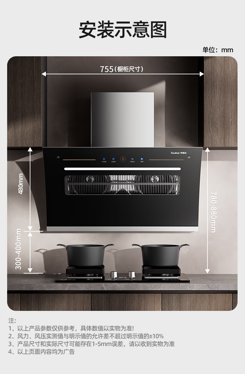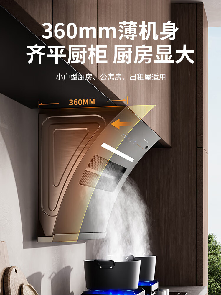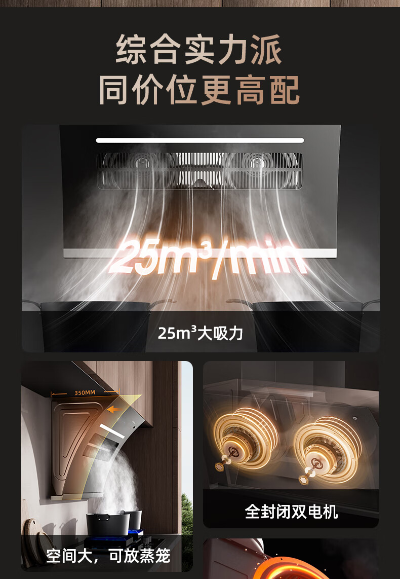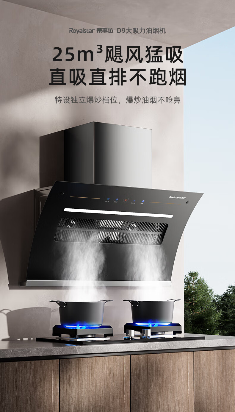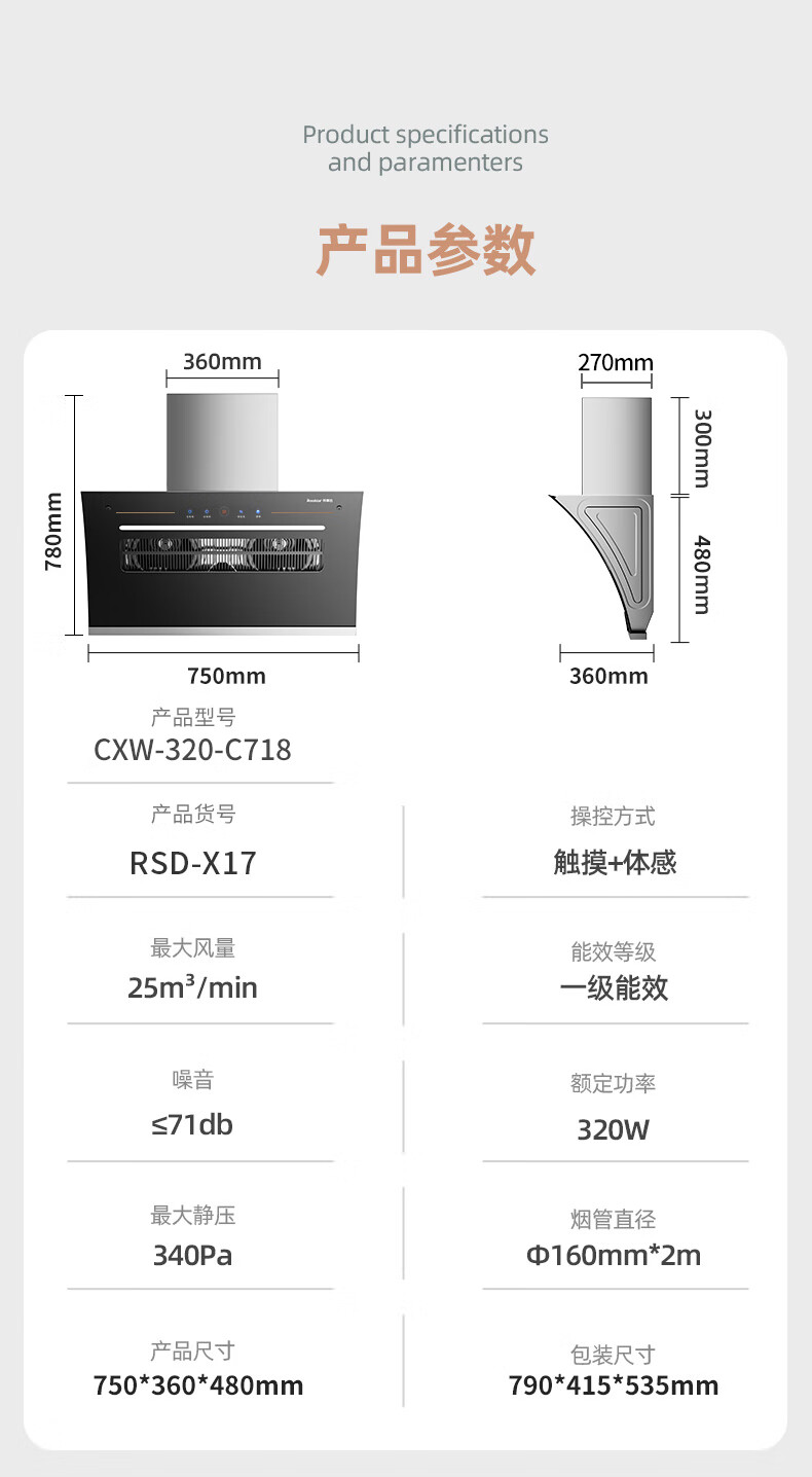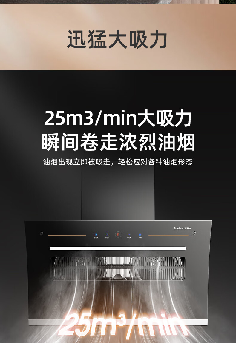 荣事达抽油烟机侧吸式家用自清洗25立方大吸力排烟机公寓超薄大风量挥手体感双电机吸烟机 CXW-320-C718