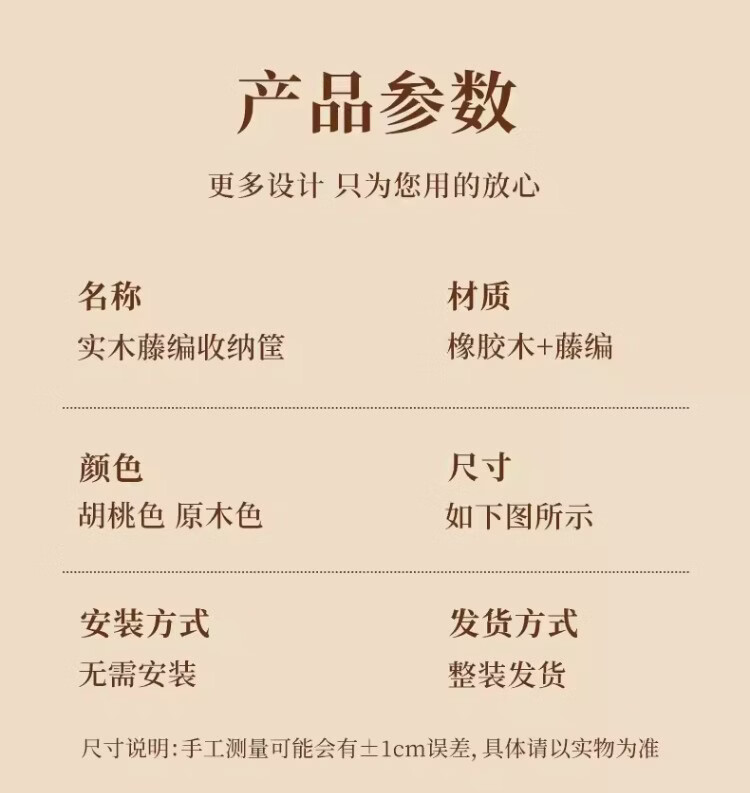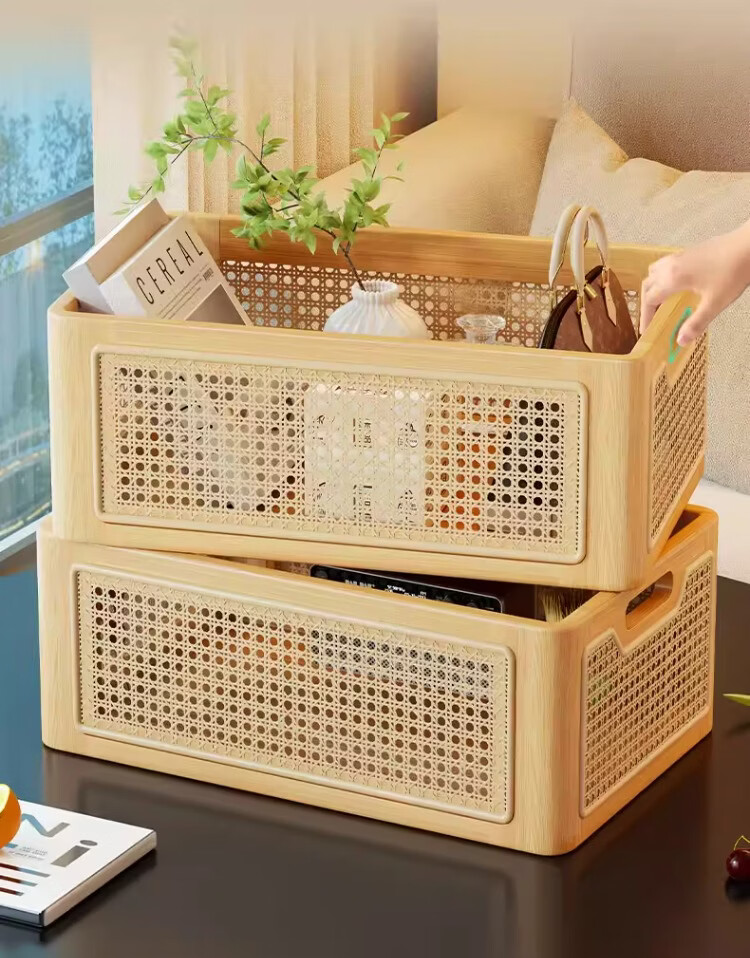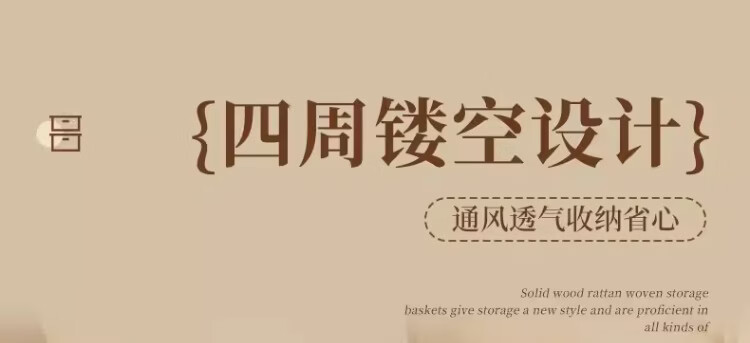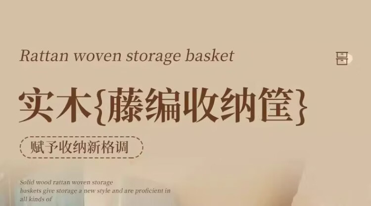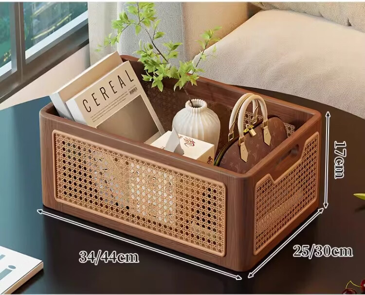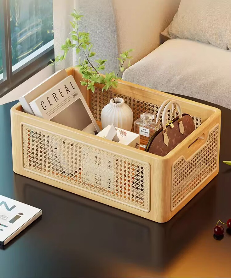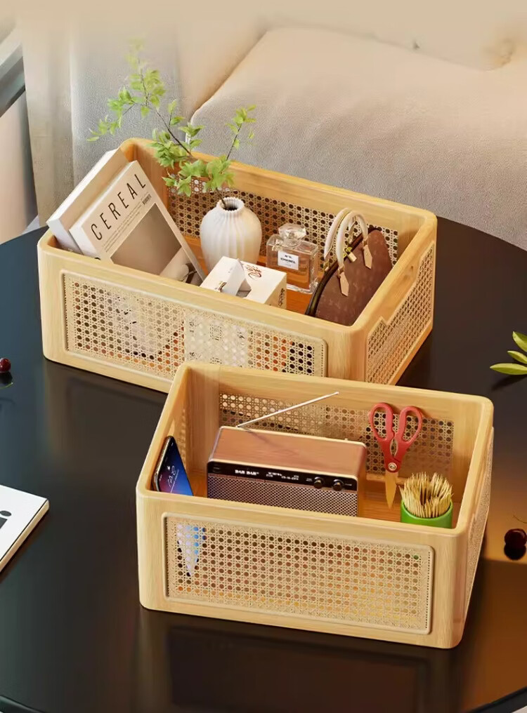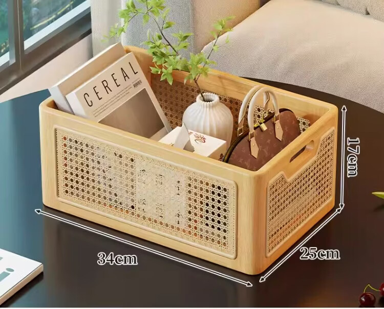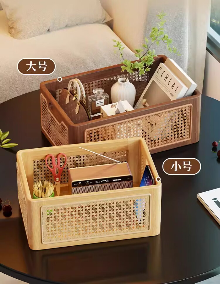 尔思家桌面收纳筐玄关摆件放钥匙零食置物架客厅高级多功能仿藤编储物筐 原木色小号【进口实木】