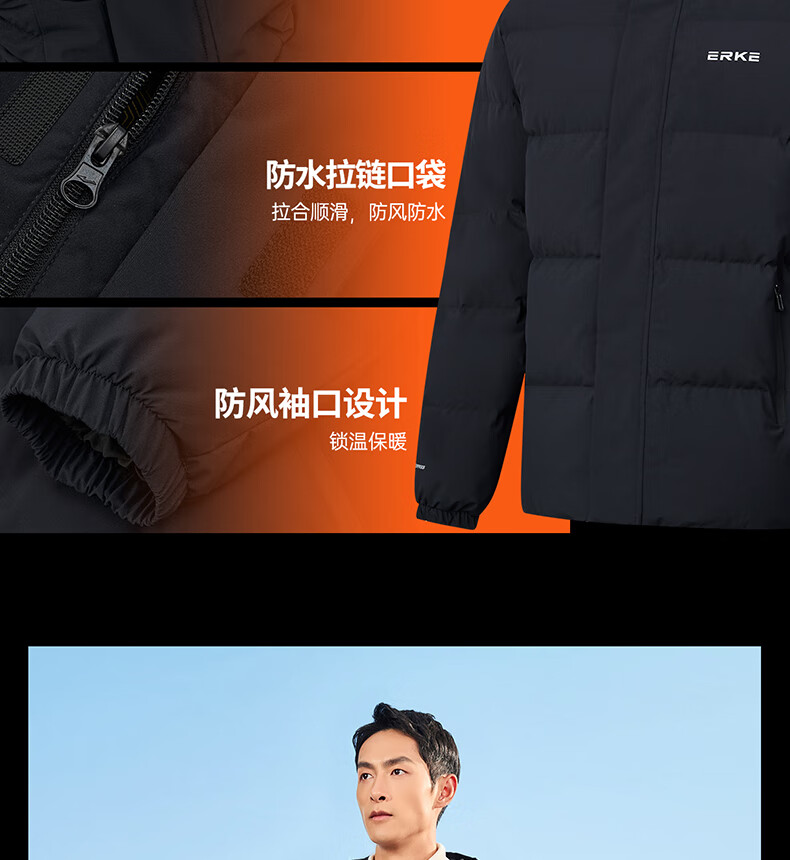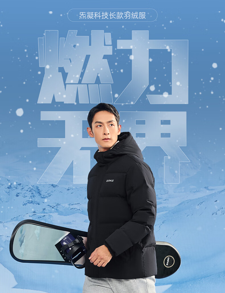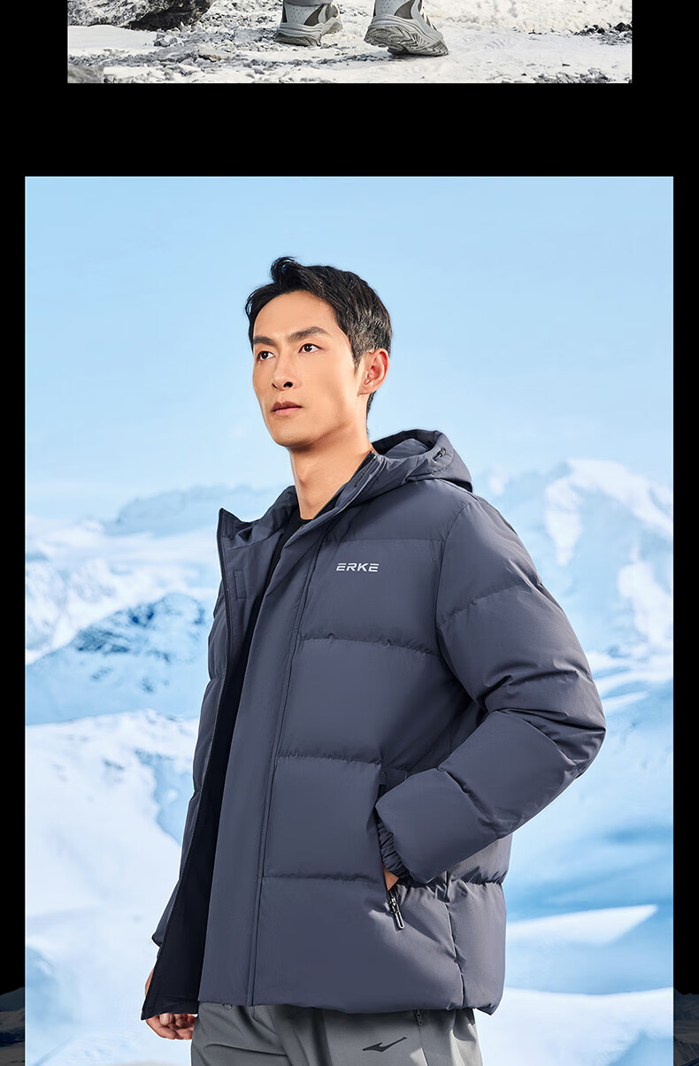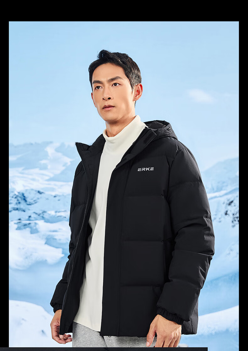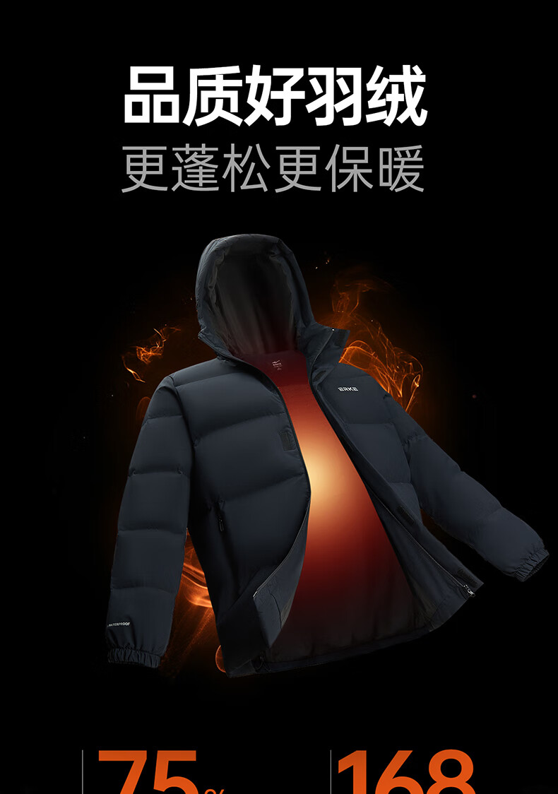 鸿星尔克羽绒服男冬季防泼水科技外套防风连帽保暖加厚运动休闲通勤上衣