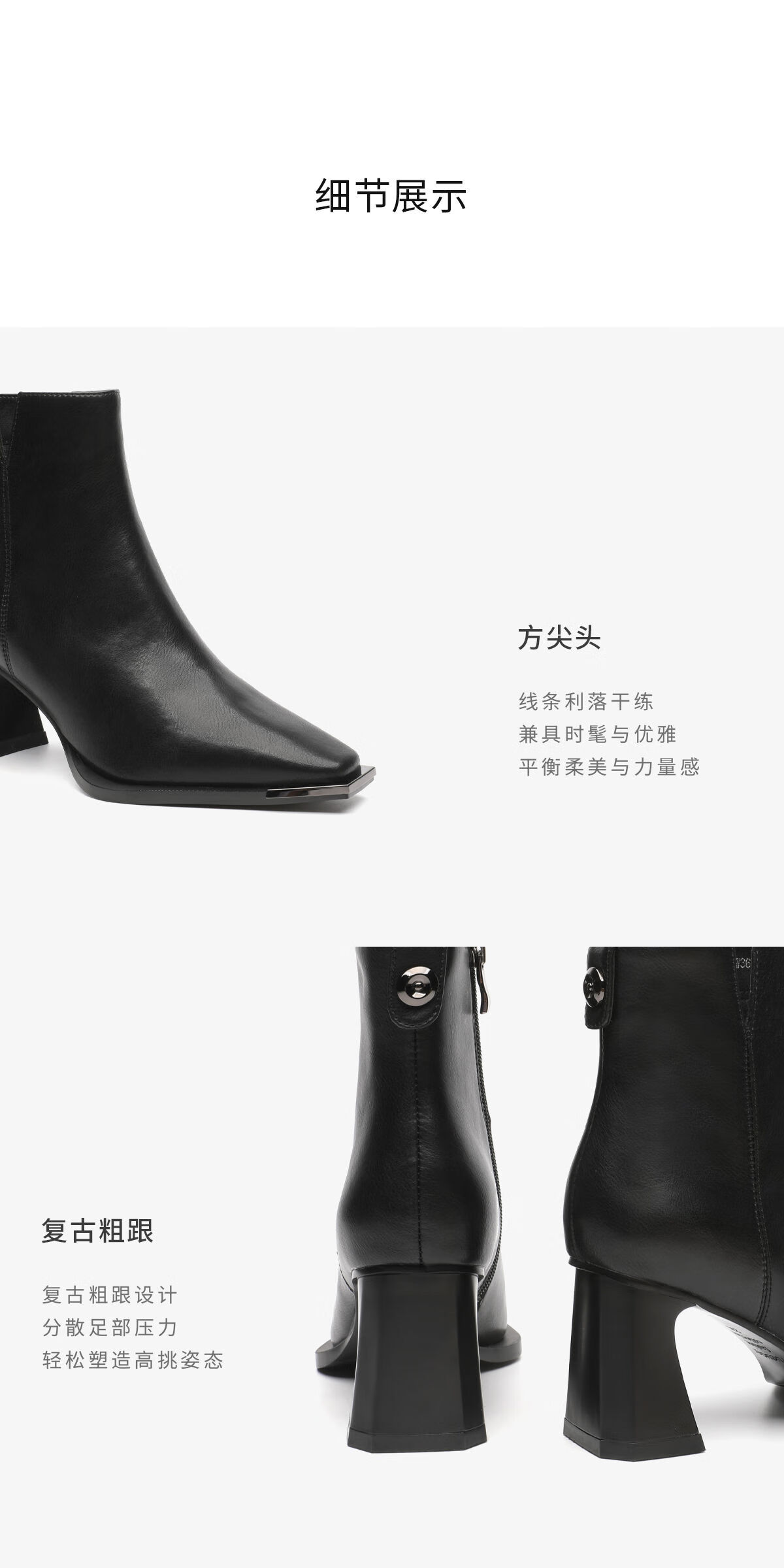 月芽儿高跟短靴女2025年秋季季新款百搭气质瘦瘦靴时尚靴子短筒时装靴 绒里黑色01T 34