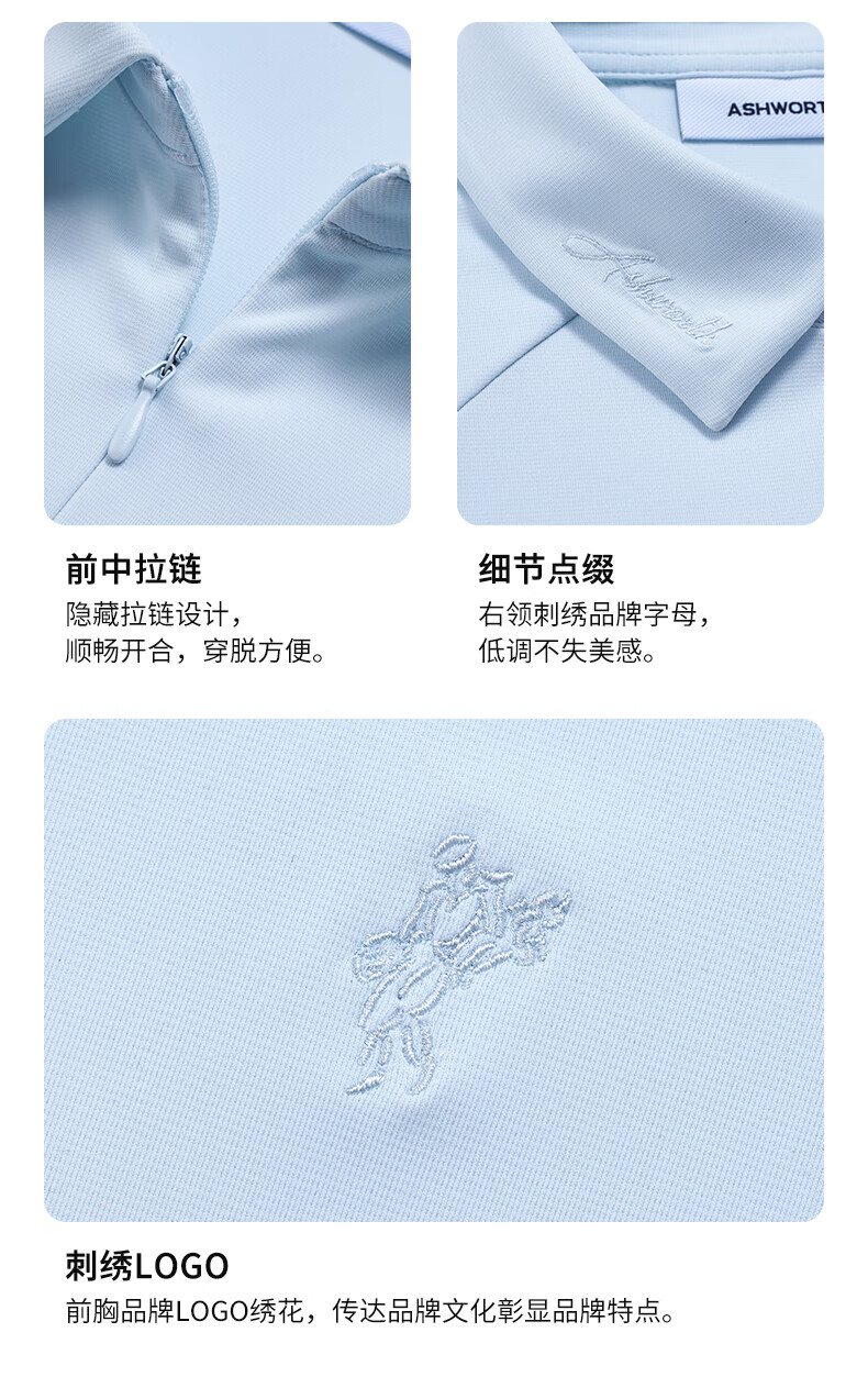 ASHWORTH【抗晒抑菌】秋季新品显瘦长袖高尔夫T恤女运动户外半拉链POLO L4-天蓝色 XS (0)