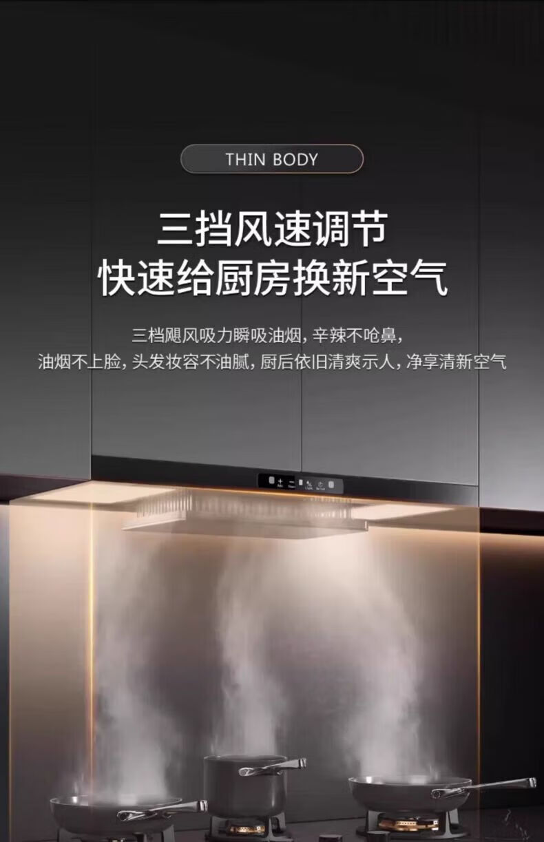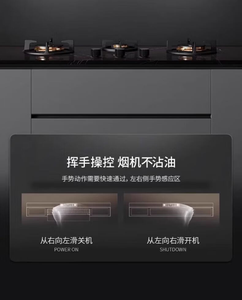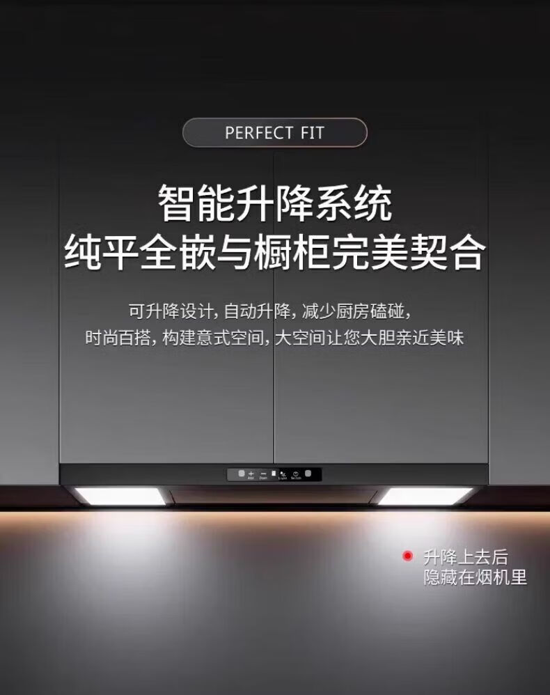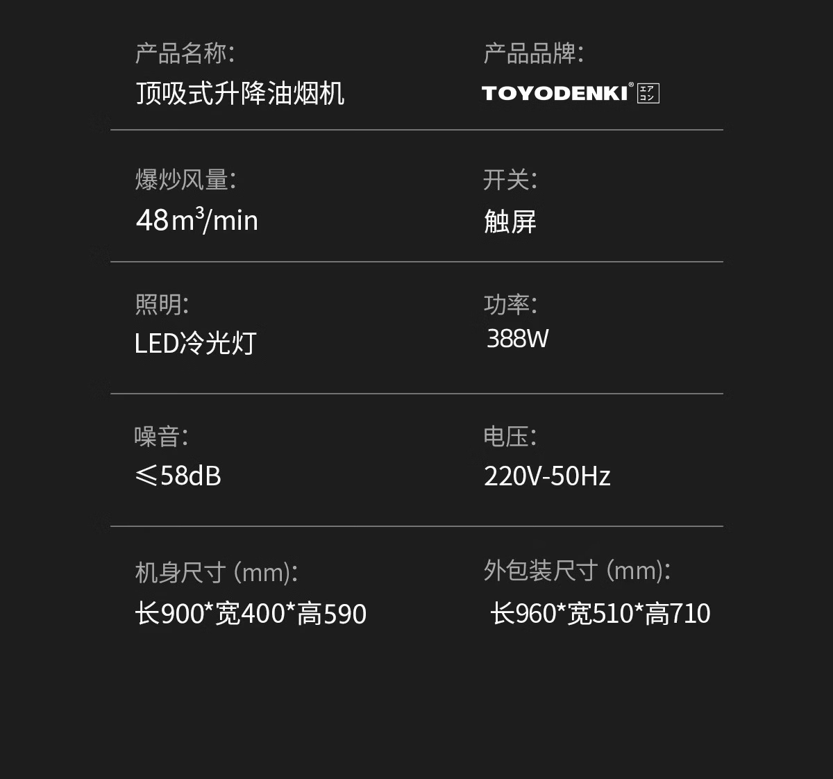 TOYODENKI日本東洋有限公司家用隐藏式可升降顶吸抽油烟机大灯嵌入挥手体感控制一键自动清洁大吸力 隐藏式智能升降-黑色
