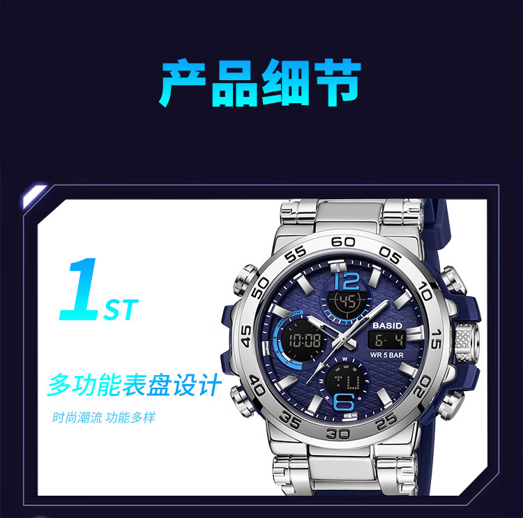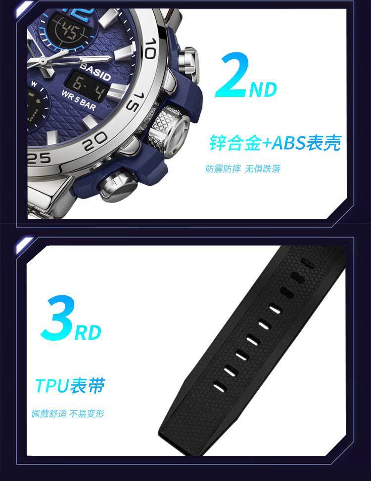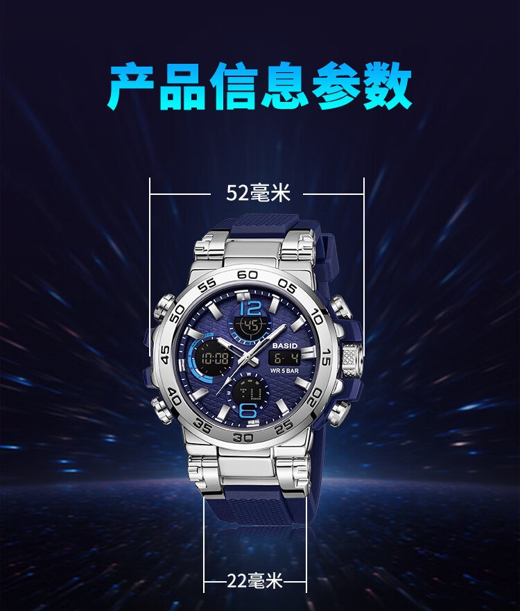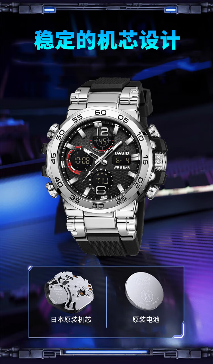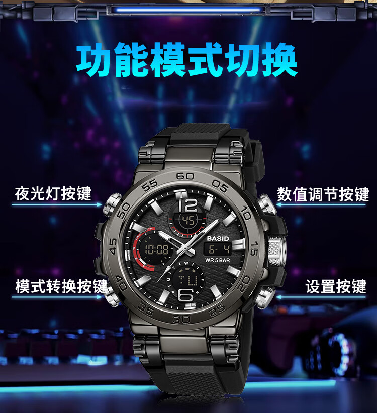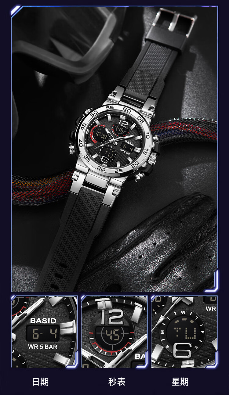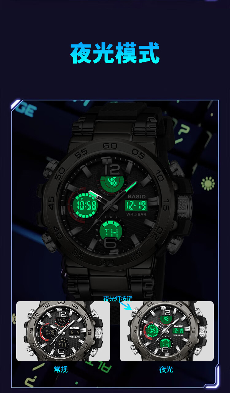 佰时顿电子手表男青少年初高中学生防水男生开学入伍礼物军人运动腕表