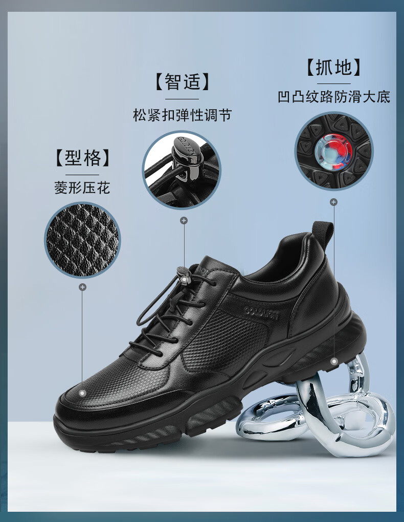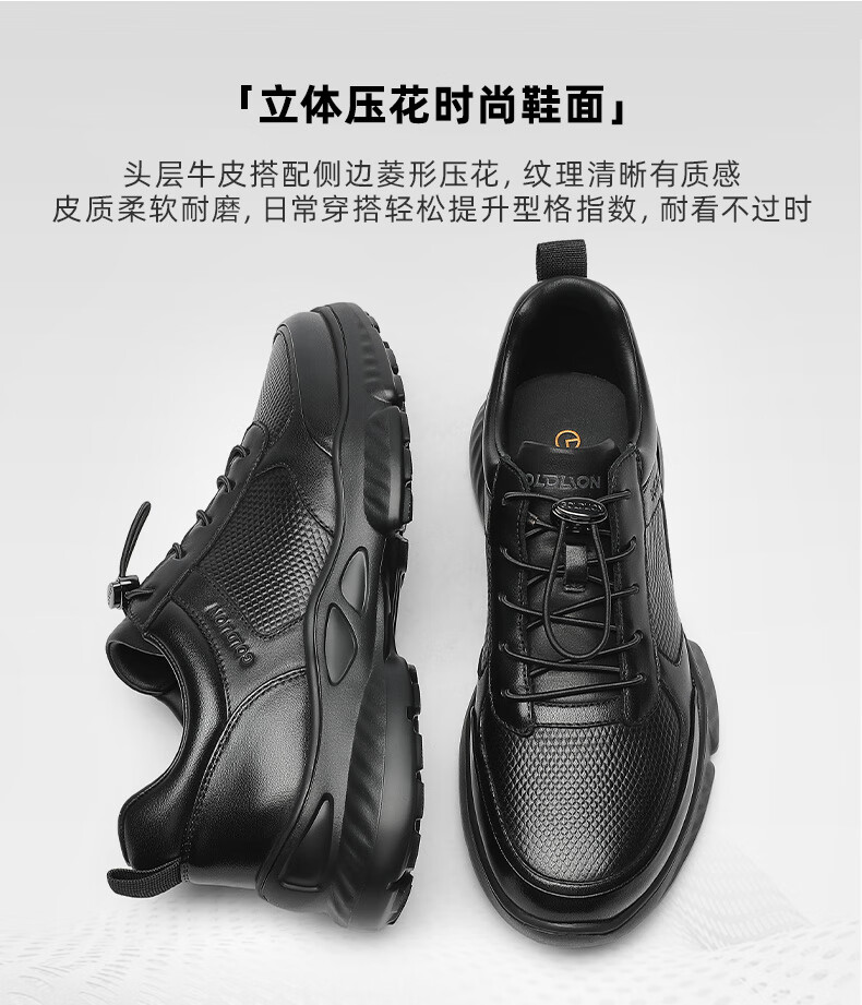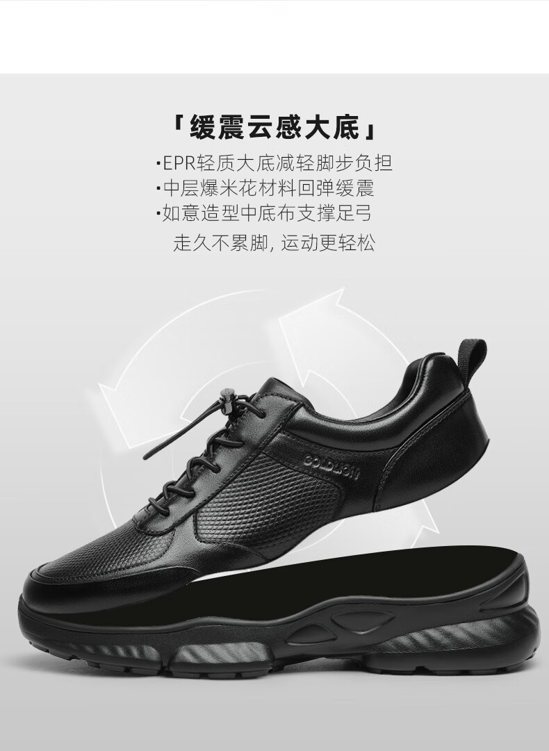 金利来(Goldlion)男鞋25年秋季新品休闲鞋皮鞋男爆米花软弹厚底运动鞋健步鞋跑步鞋 黑色 40