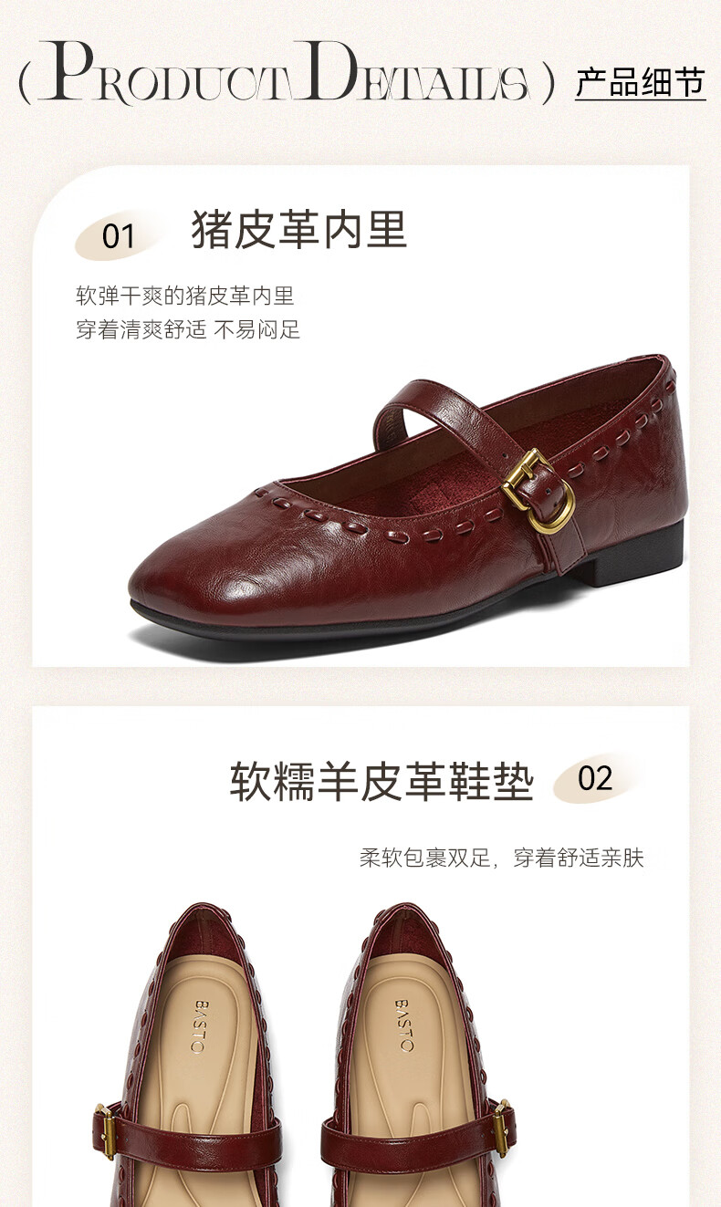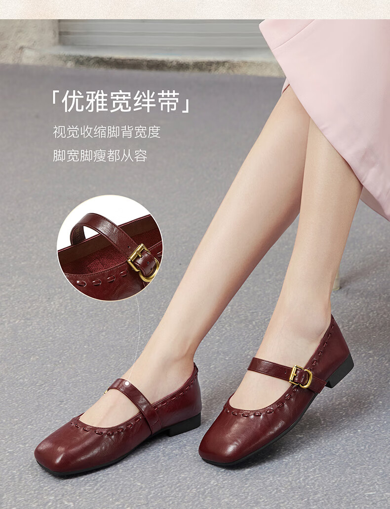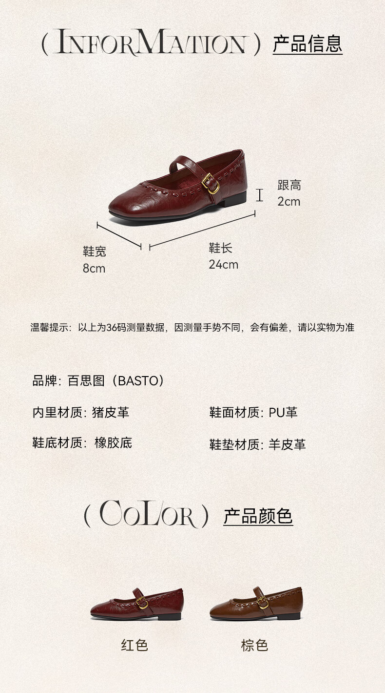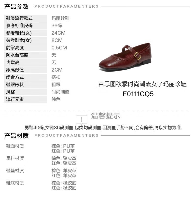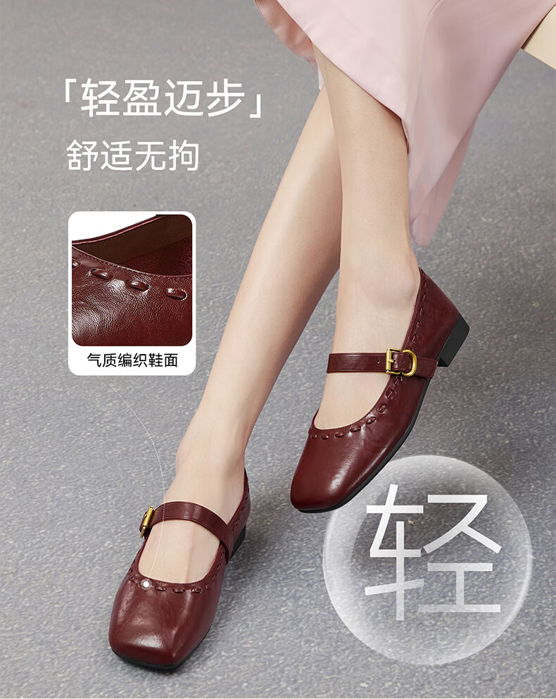 百思图2025秋新款舒适低跟红色玛丽珍鞋小皮鞋浅口女单鞋F0111CQ5 红色 35