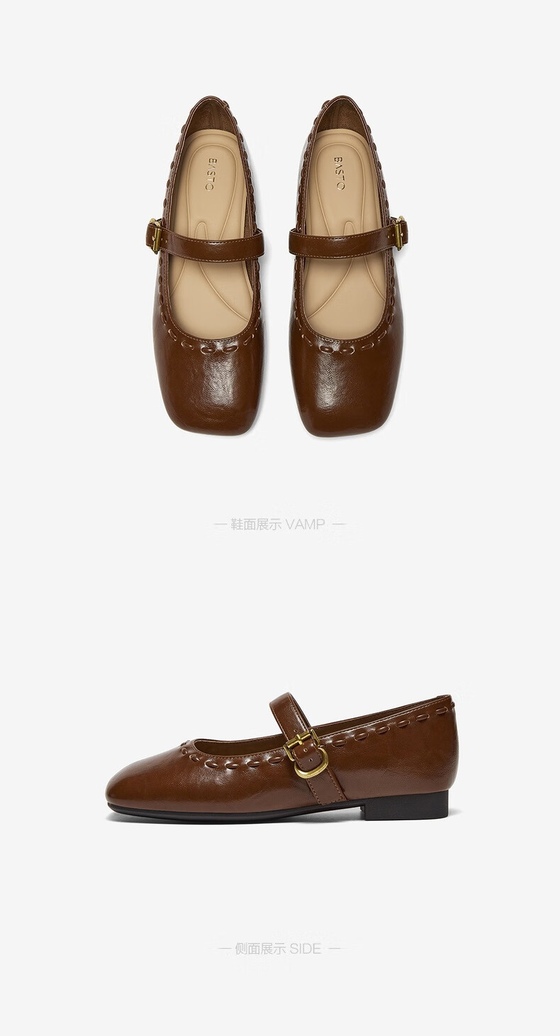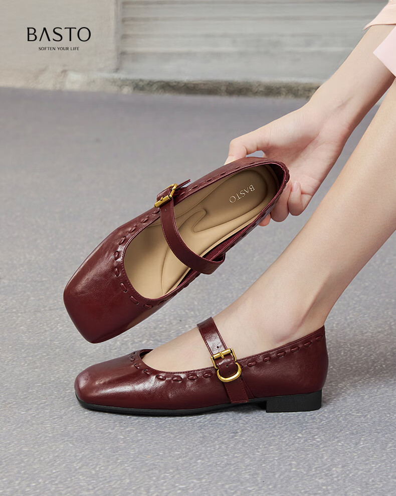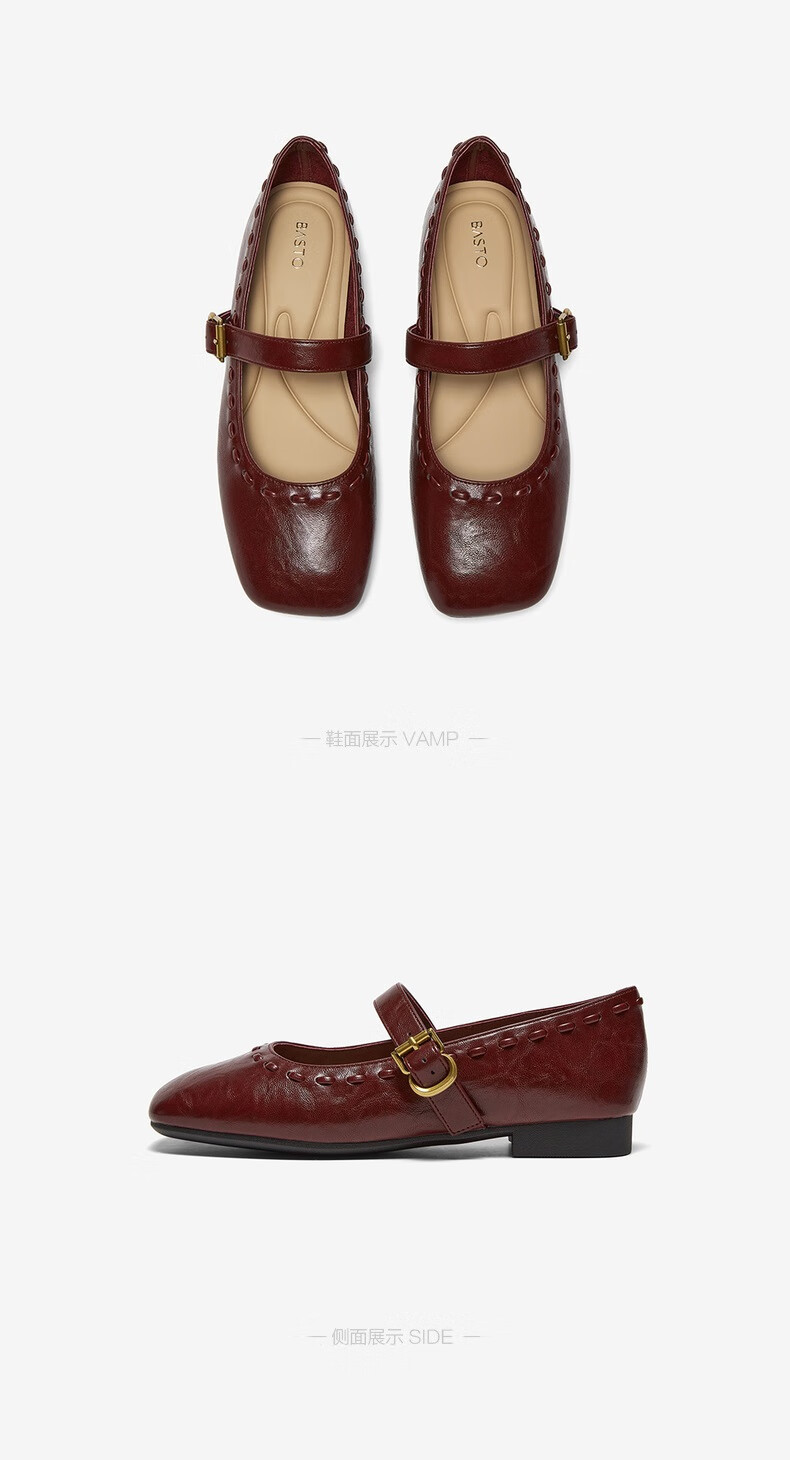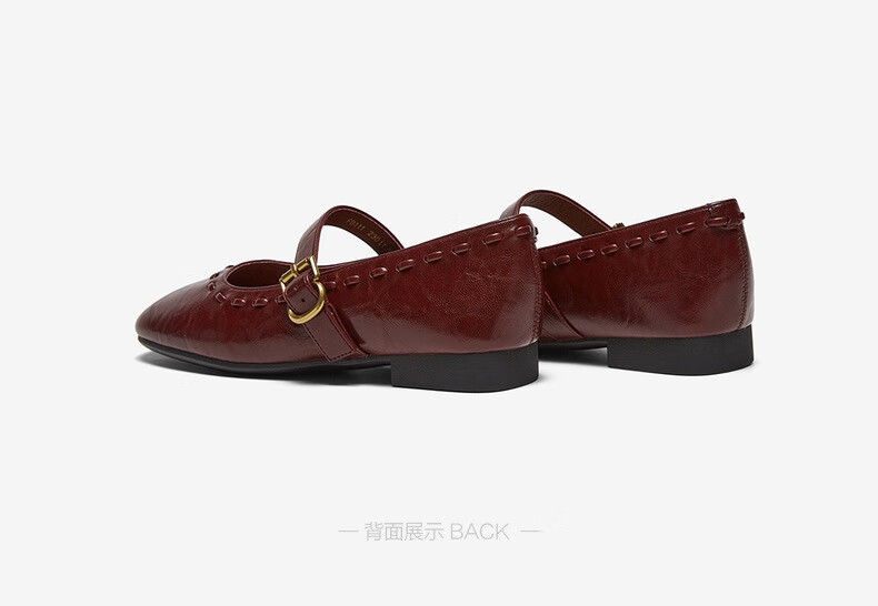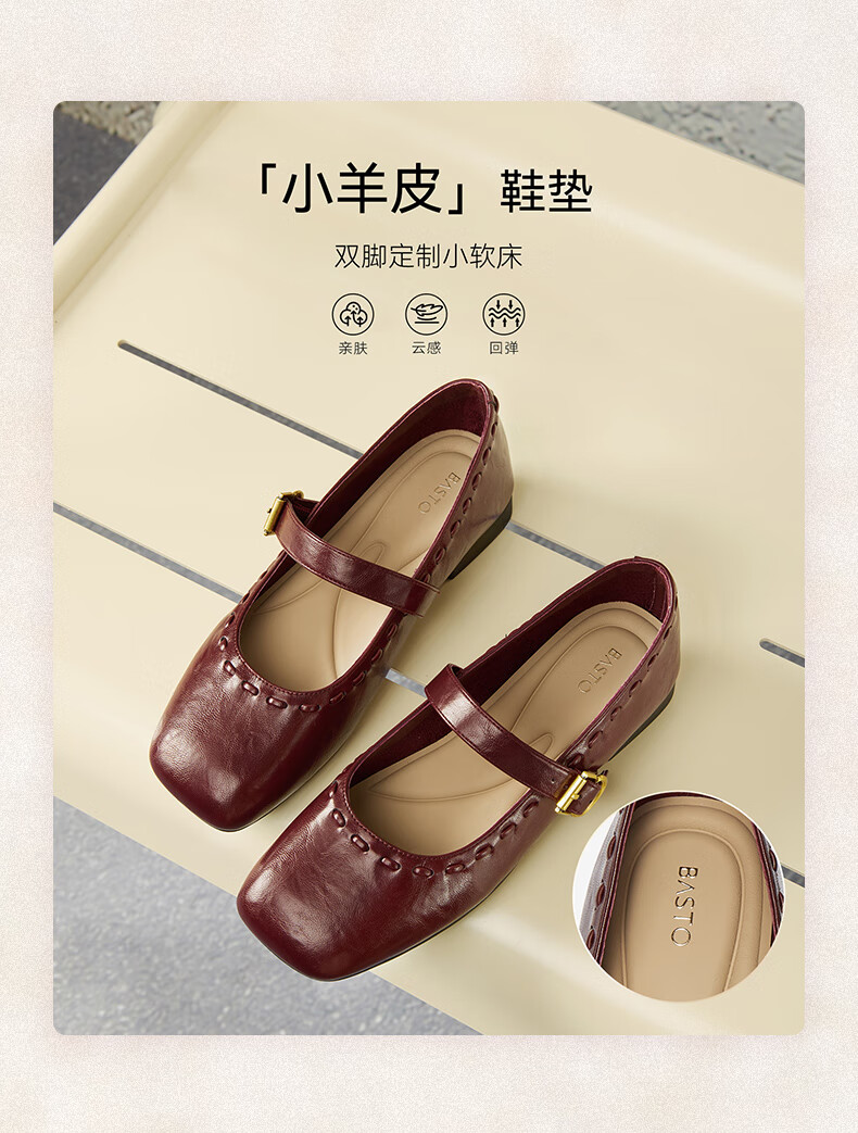 百思图2025秋新款舒适低跟红色玛丽珍鞋小皮鞋浅口女单鞋F0111CQ5 红色 35
