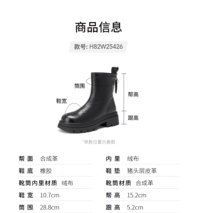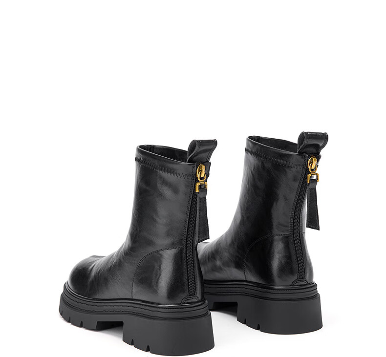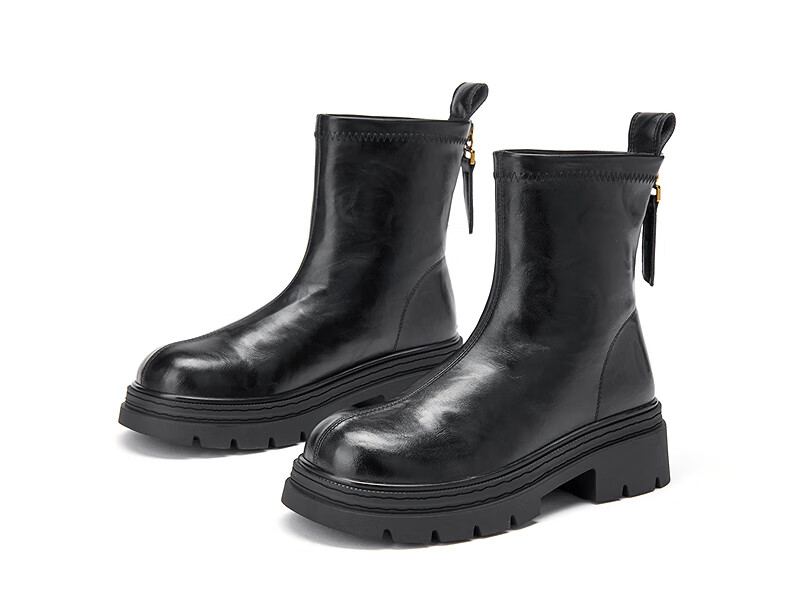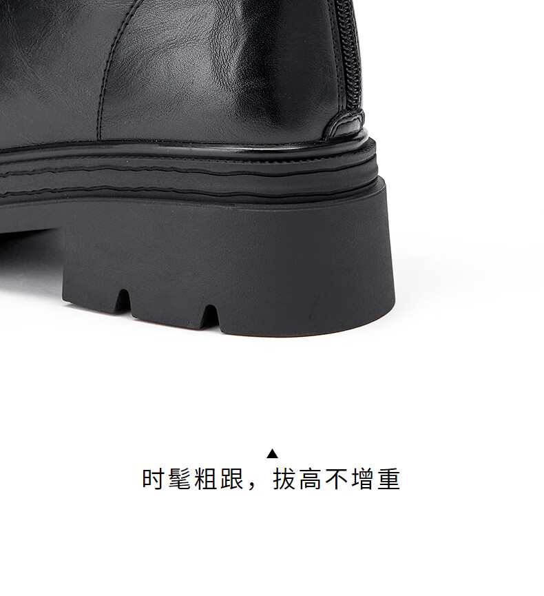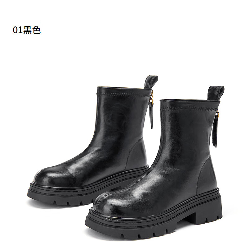 热风【商场同款】厚底时装靴女2025年冬季新款百搭短靴小个子增高靴子 01黑色 36