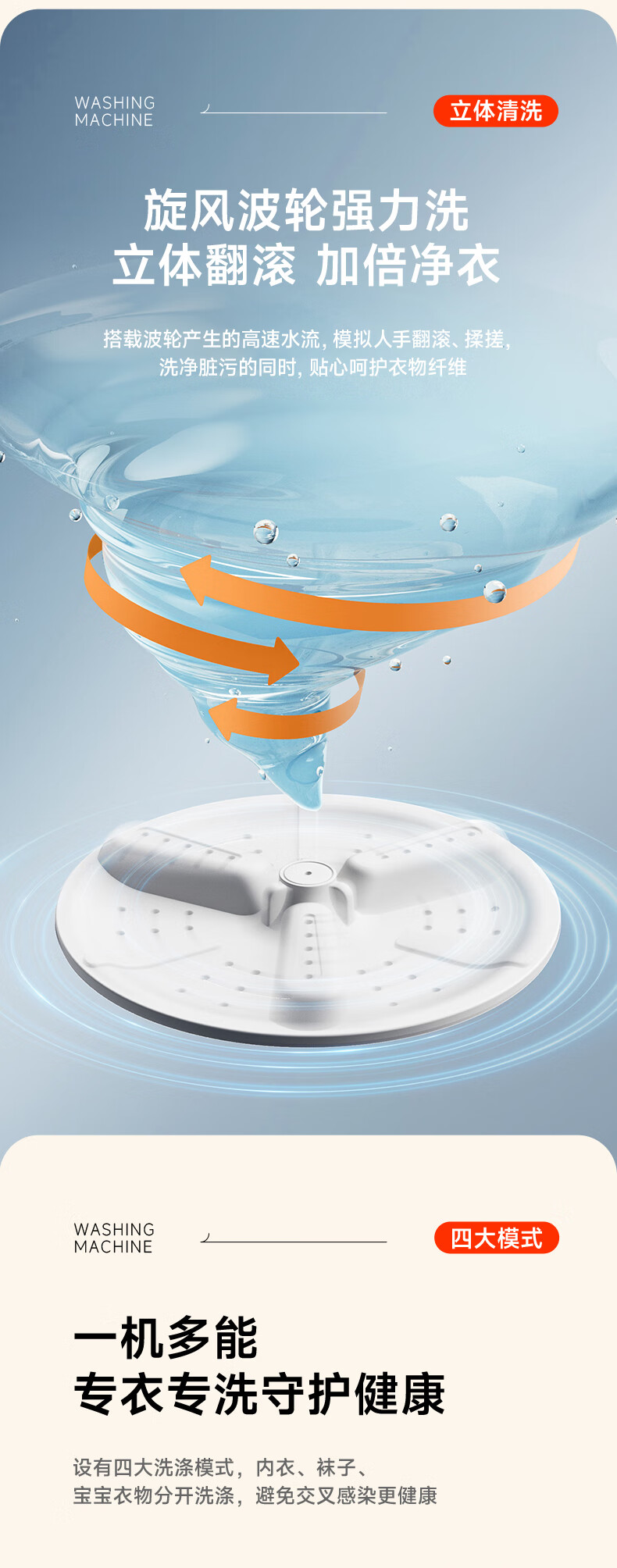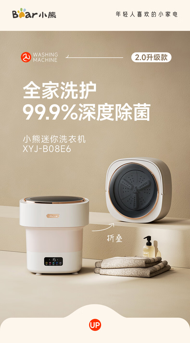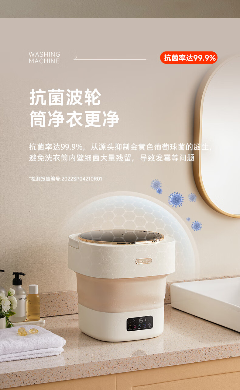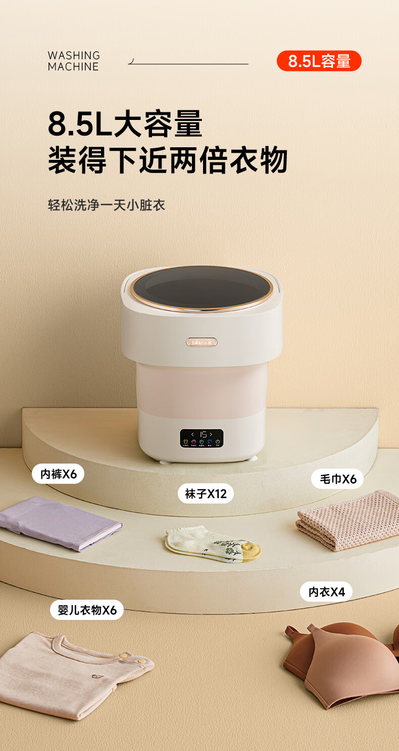 小熊(Bear)迷你洗衣机折叠洗衣机母婴儿童内衣洗衣机专用小型内裤清洗机除菌便携式微型宿舍半自动甩干脱水机
