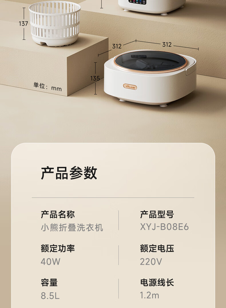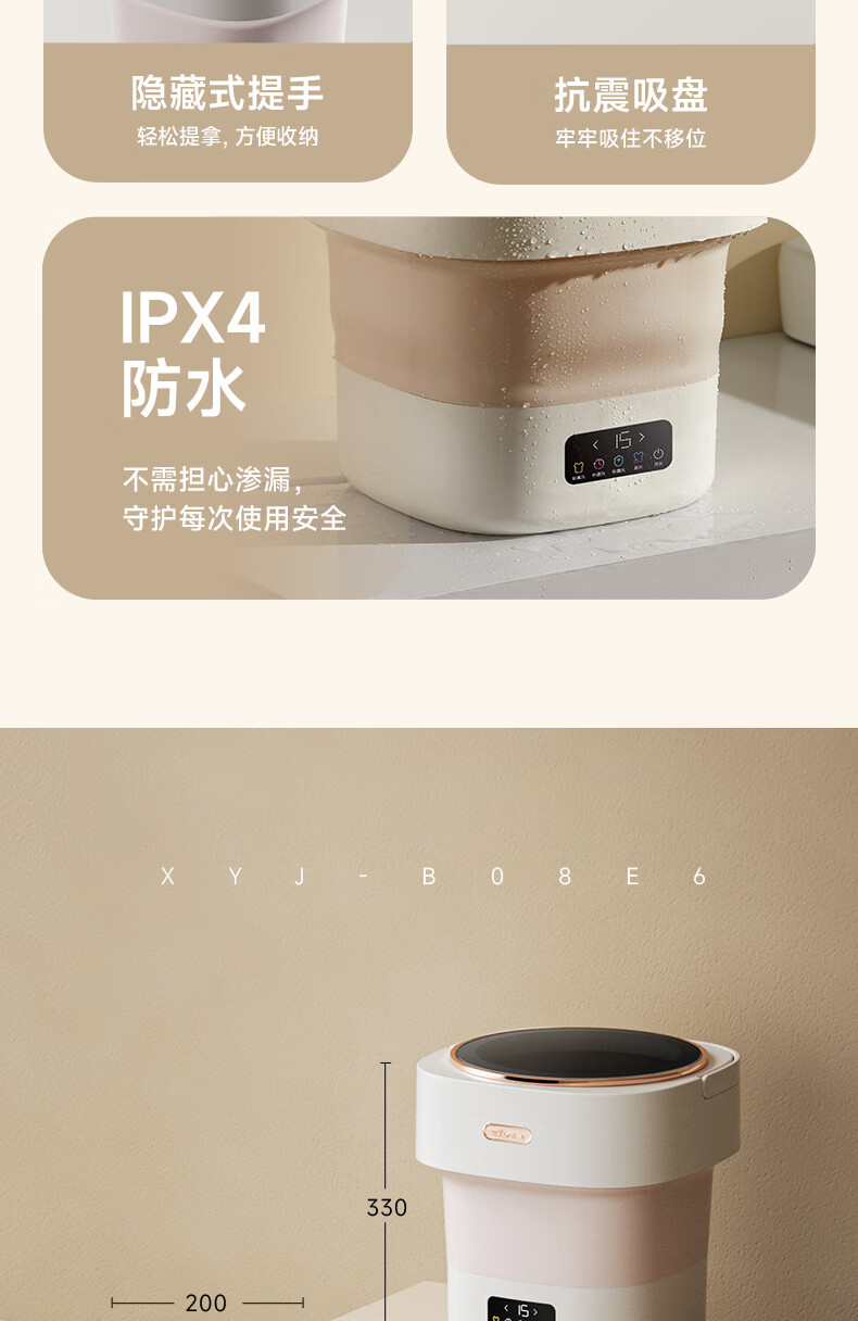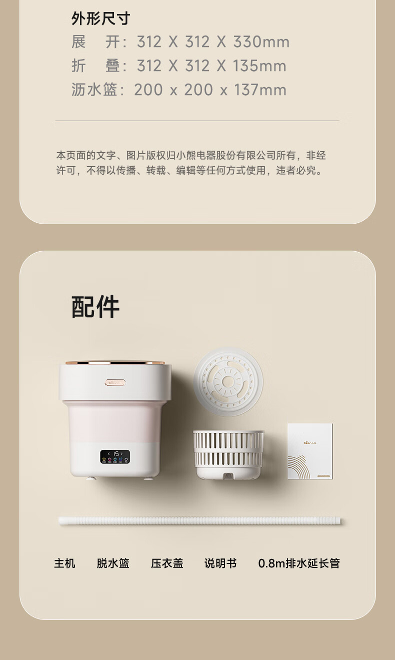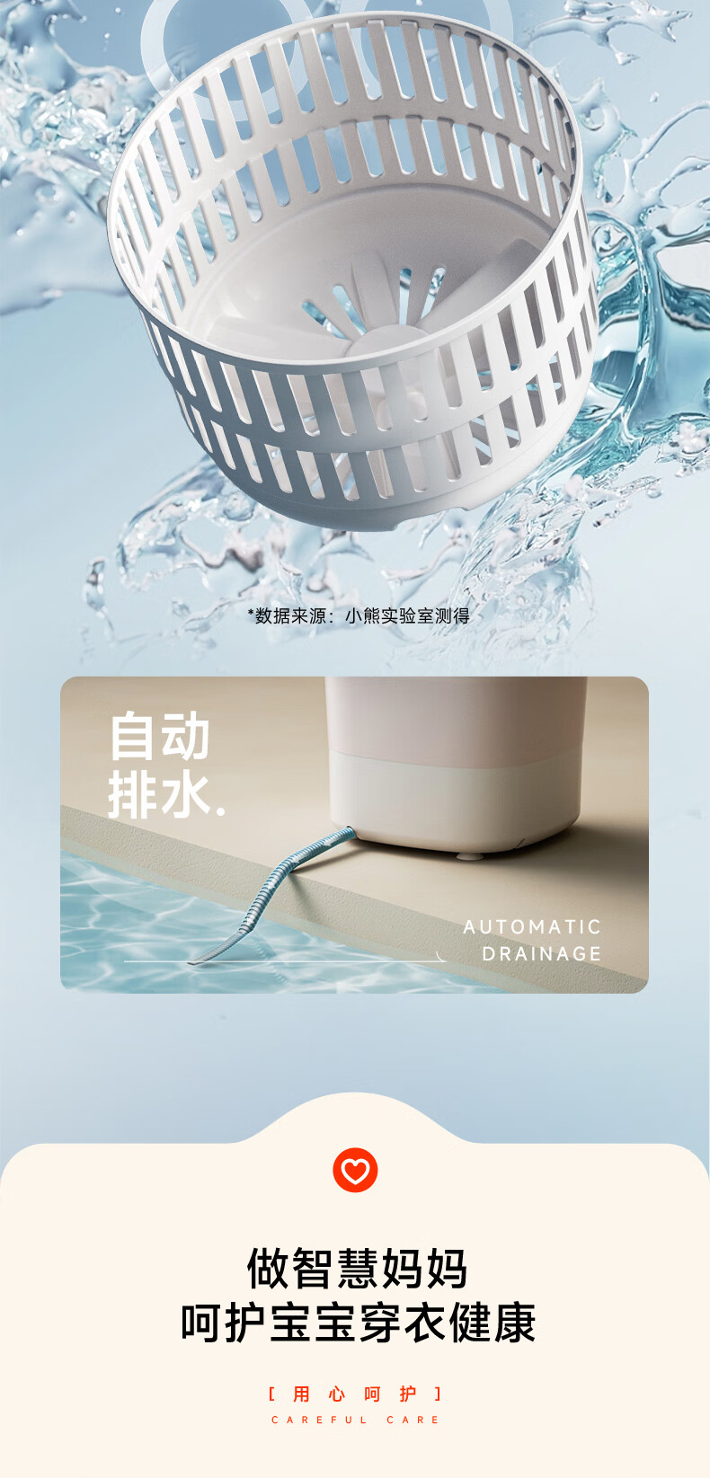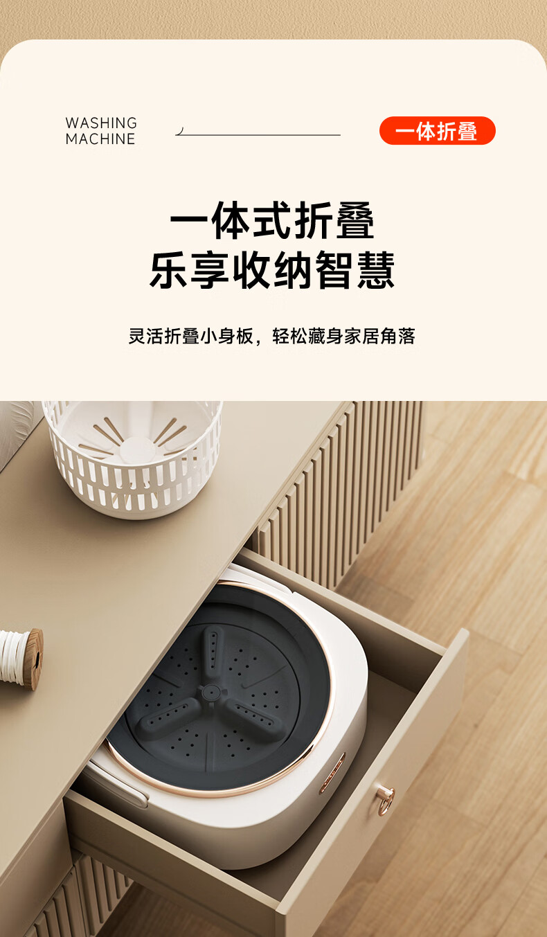 小熊(Bear)迷你洗衣机折叠洗衣机母婴儿童内衣洗衣机专用小型内裤清洗机除菌便携式微型宿舍半自动甩干脱水机