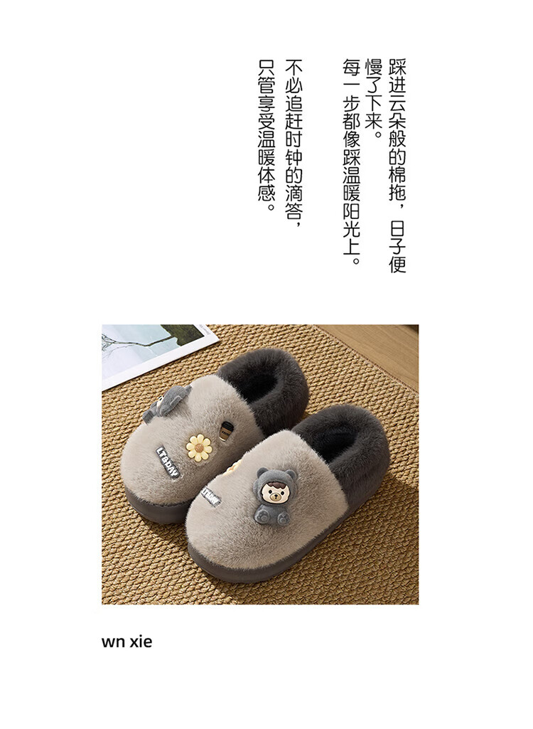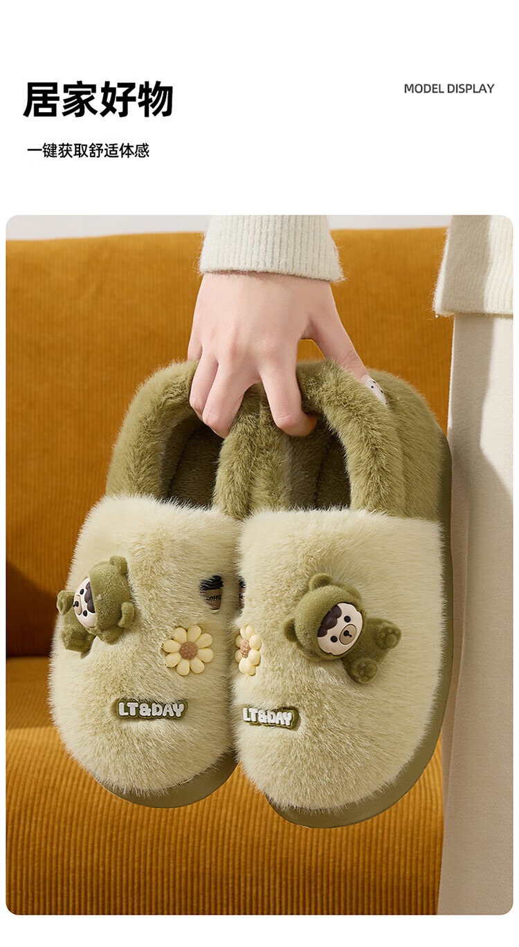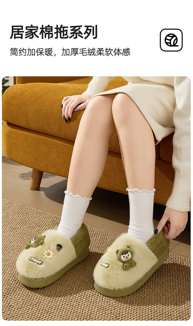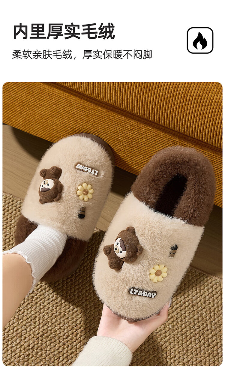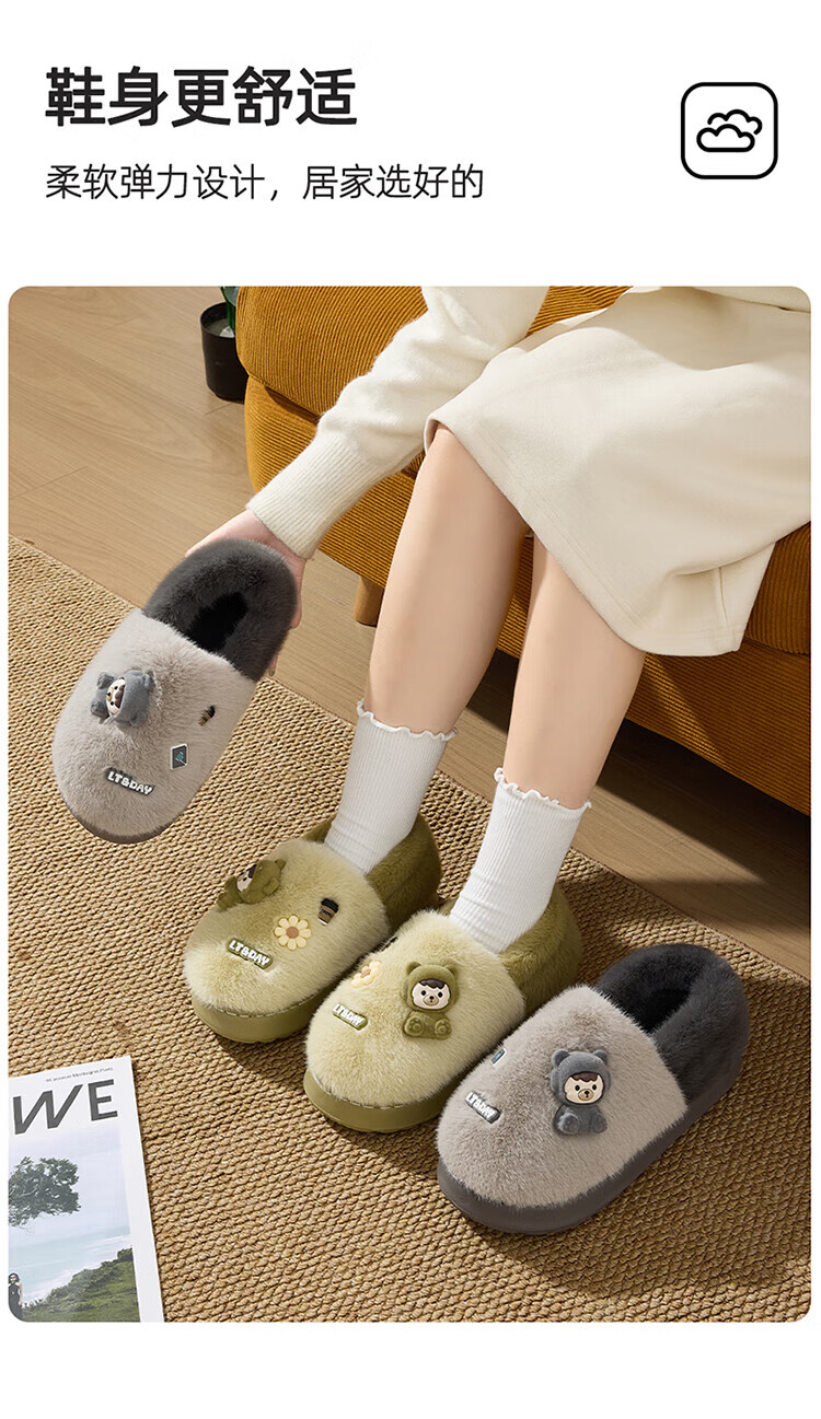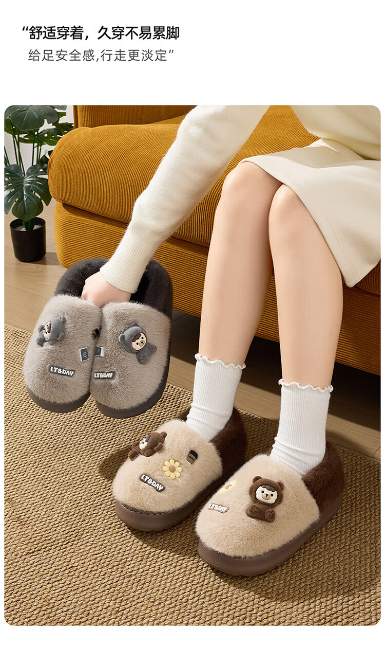 FZT棉拖鞋女士2025冬季新款家居室内厚底包跟外穿毛绒保暖月子棉鞋男 咖色 36 -37适合35-36(内长225mm)