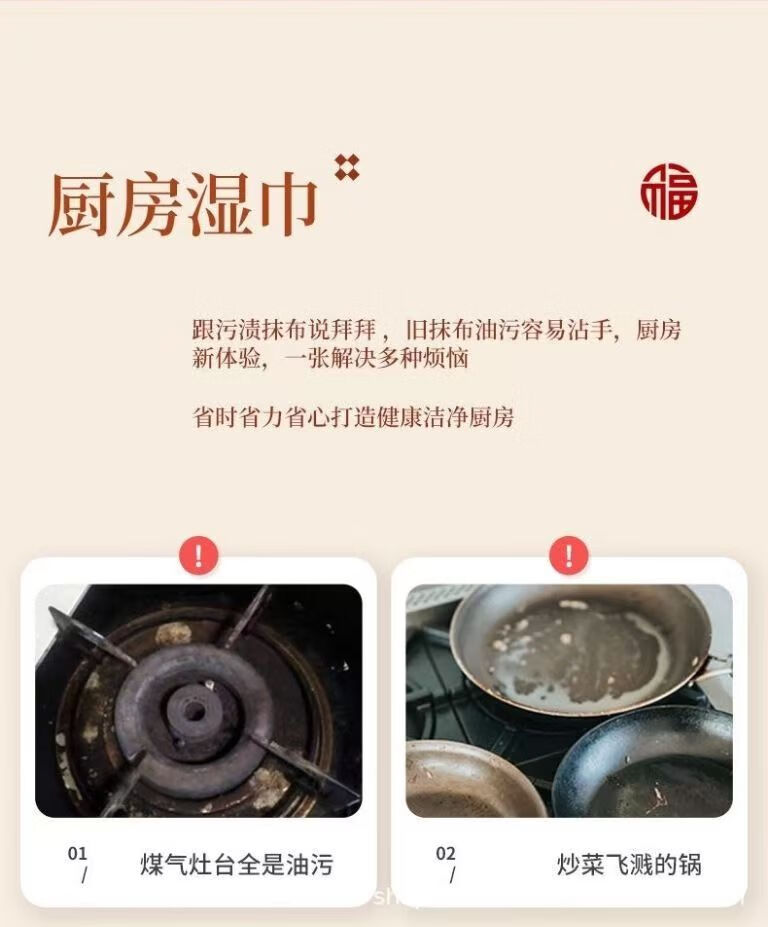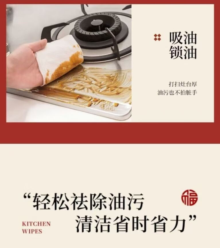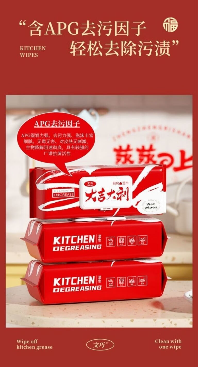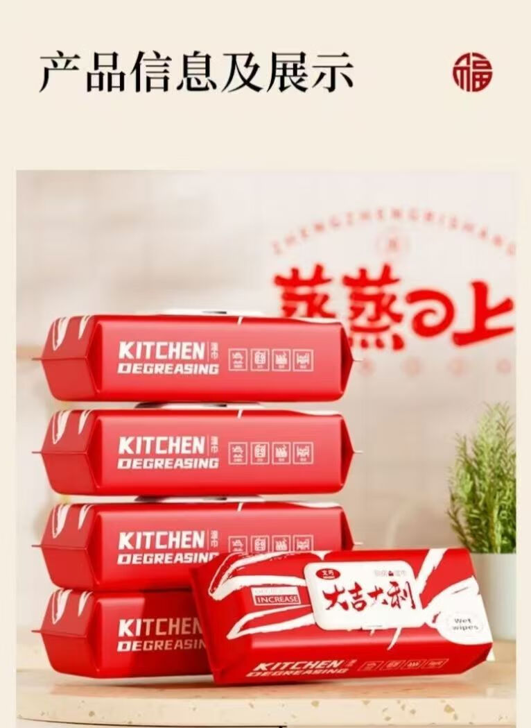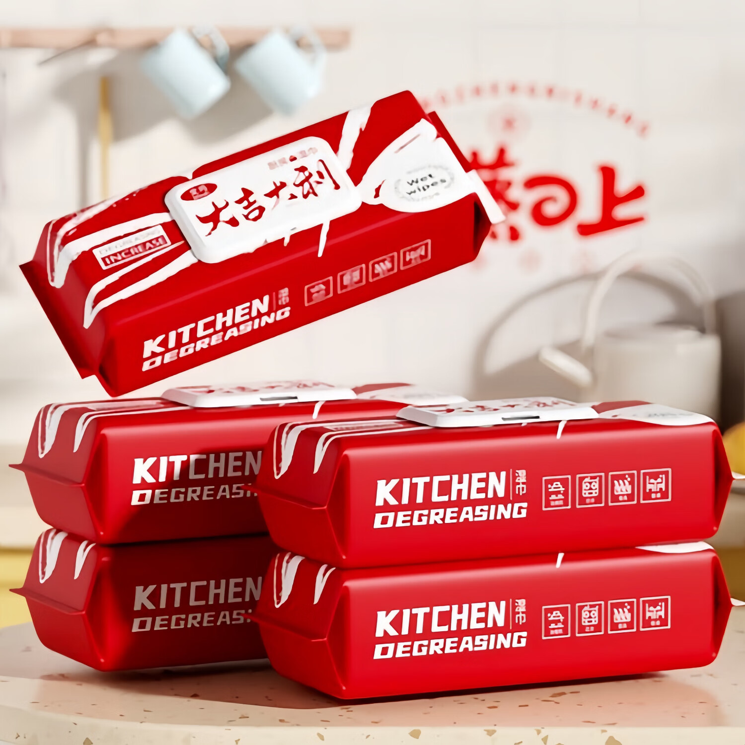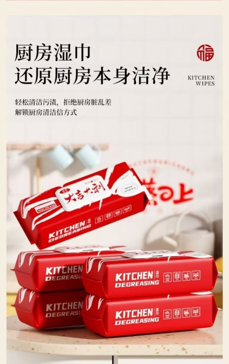 节庆用品过节大吉大利清洁湿巾超大加厚专用强力去污清洁 加大加厚40抽(165X160mm) 2包