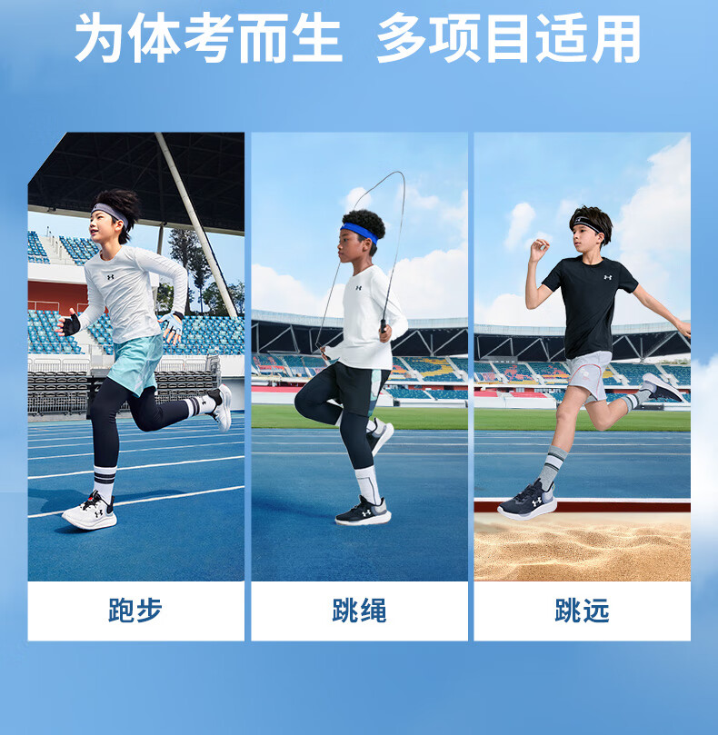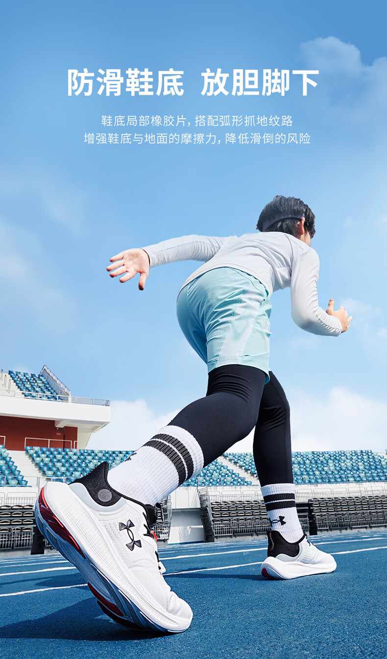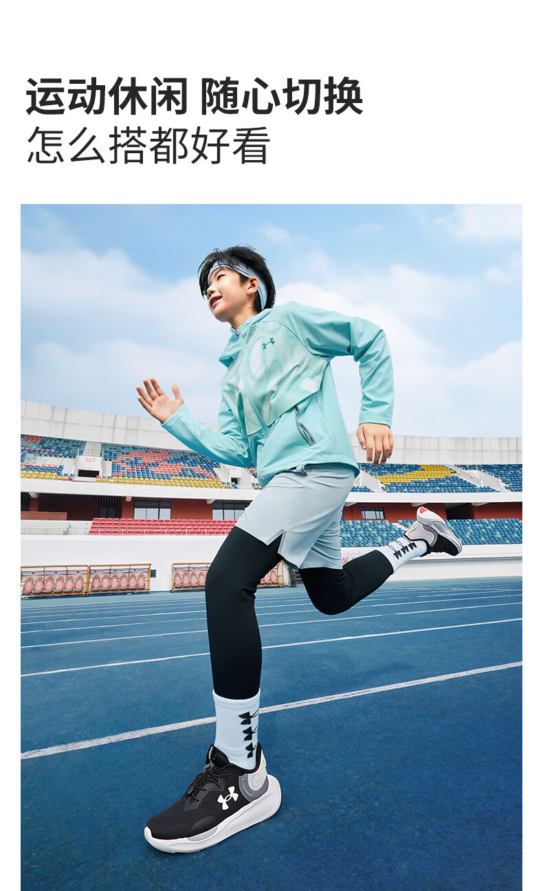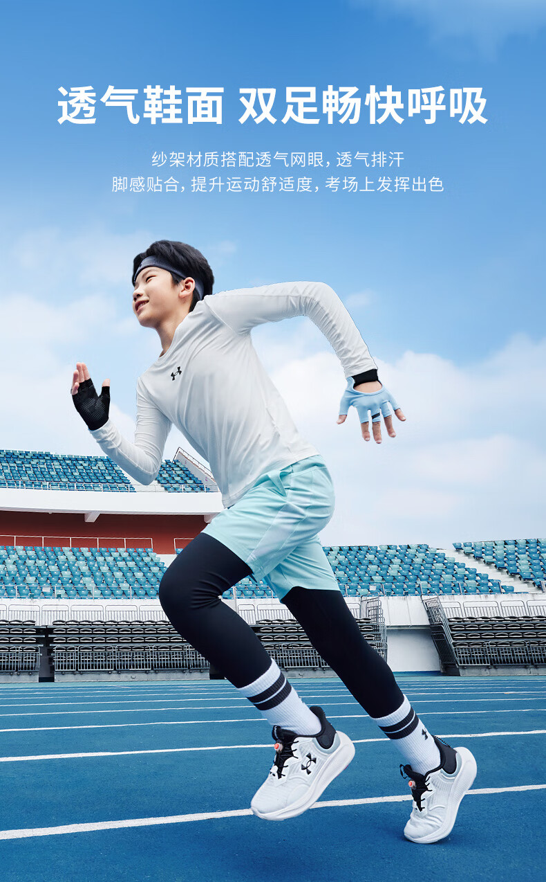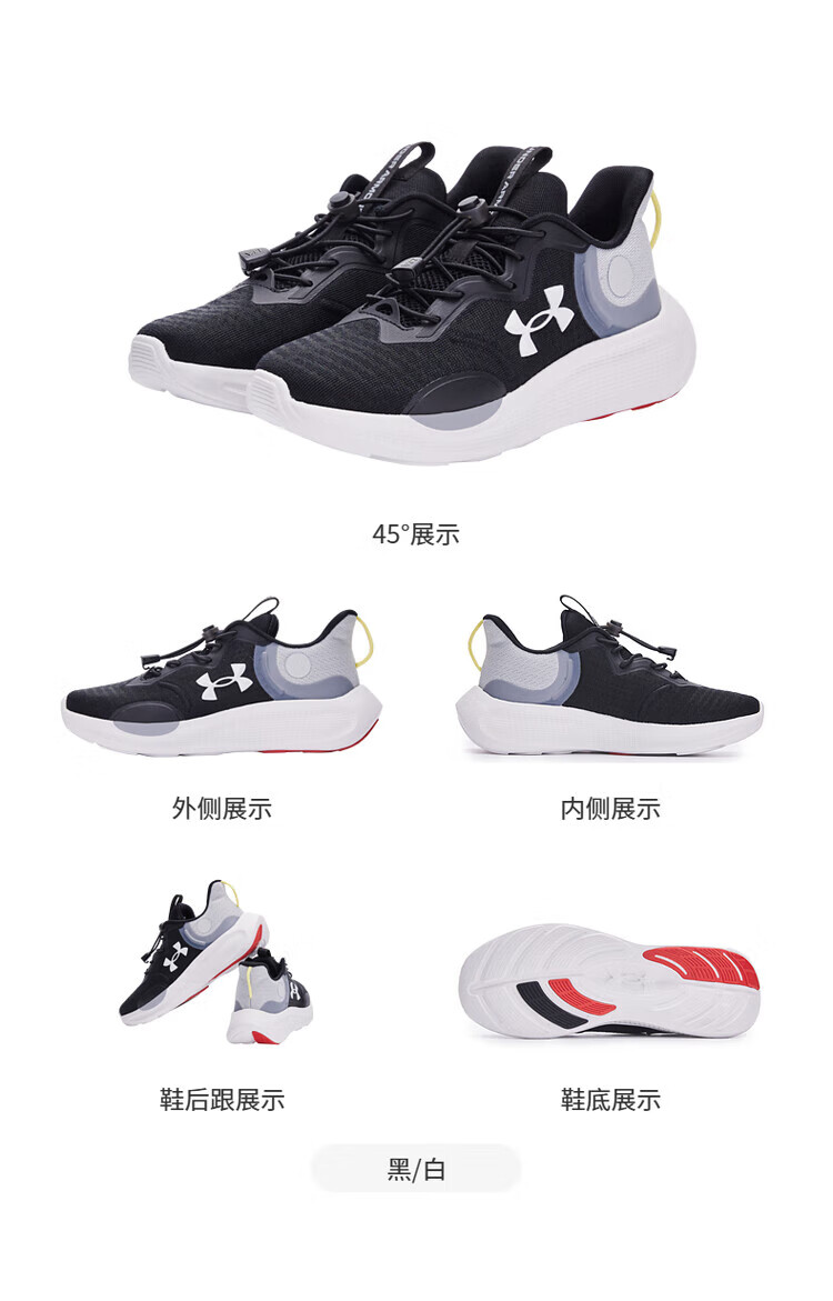 安德玛(Under Armour)男女大童网面透气高弹防滑束带体考跑步鞋2511104 黑/白 40