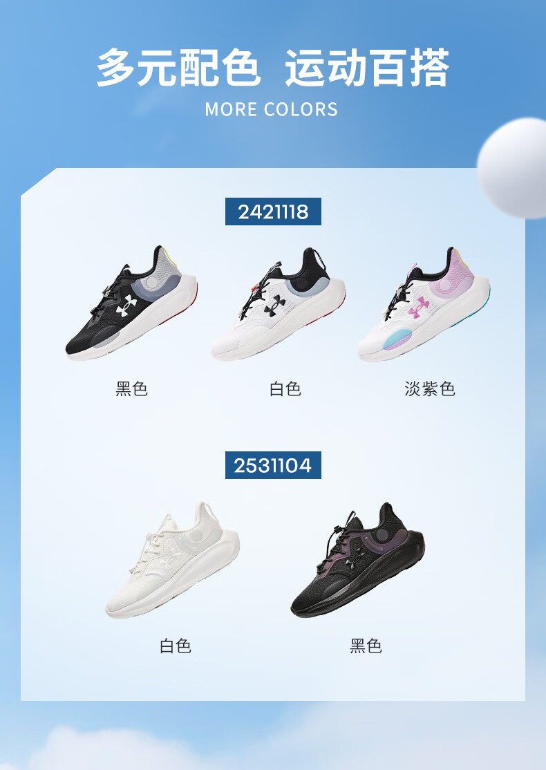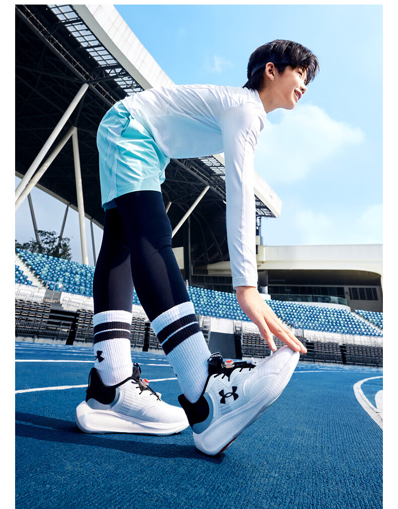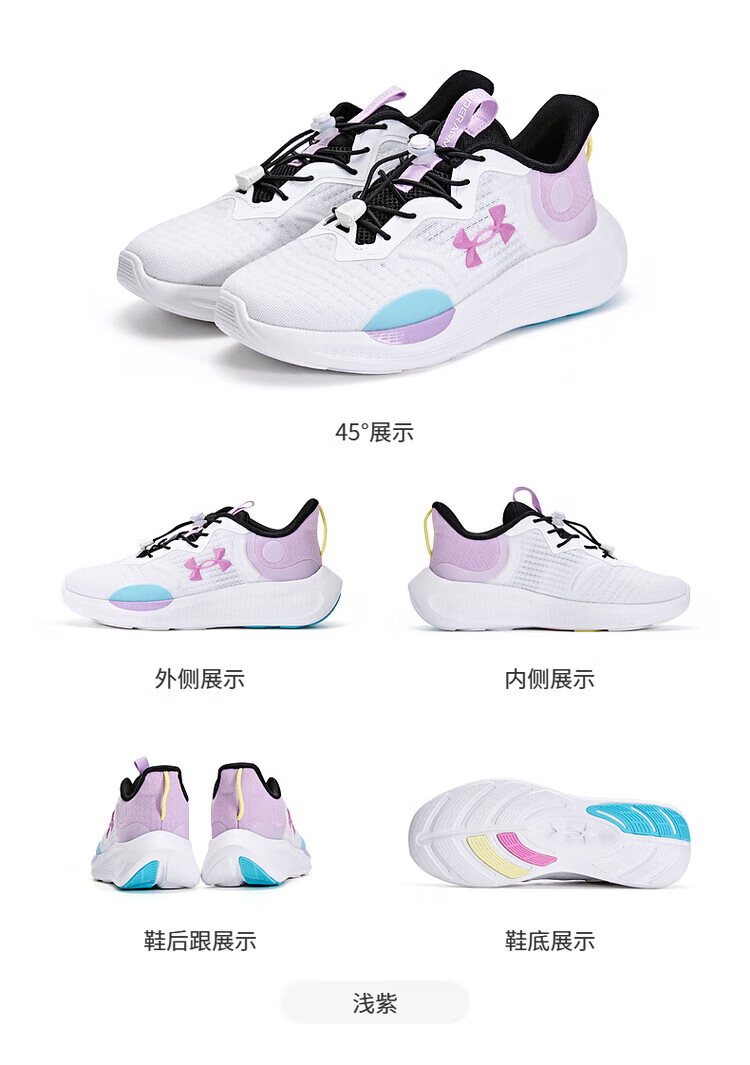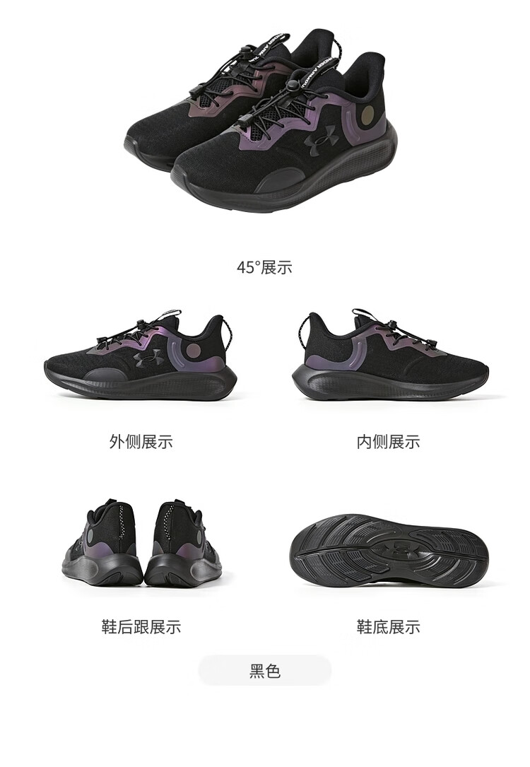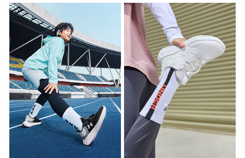 安德玛(Under Armour)男女大童网面透气高弹防滑束带体考跑步鞋2511104 黑/白 40