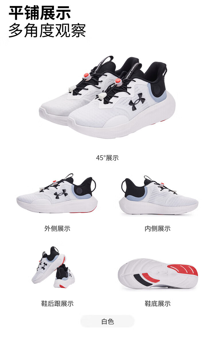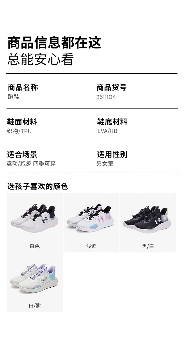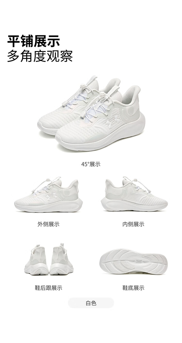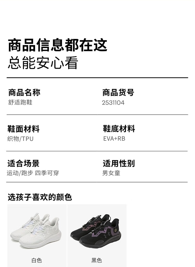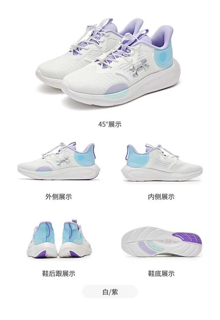 安德玛(Under Armour)男女大童网面透气高弹防滑束带体考跑步鞋2511104 黑/白 40