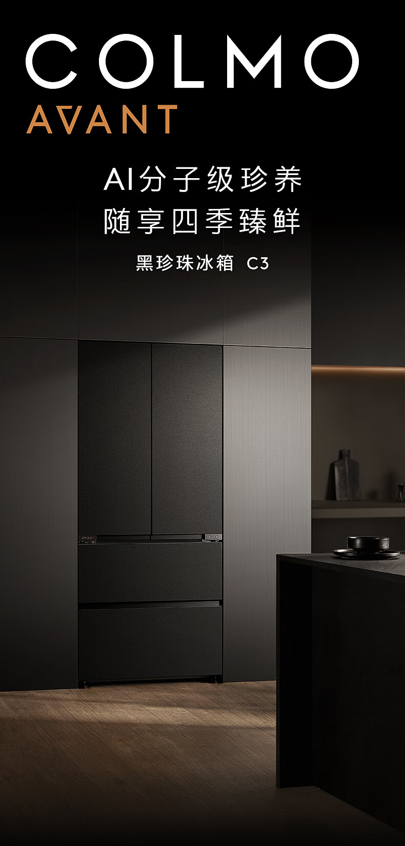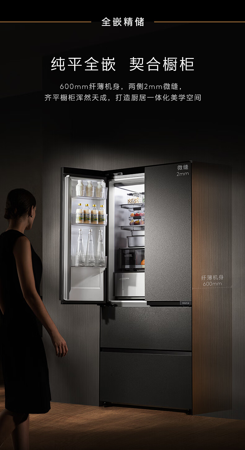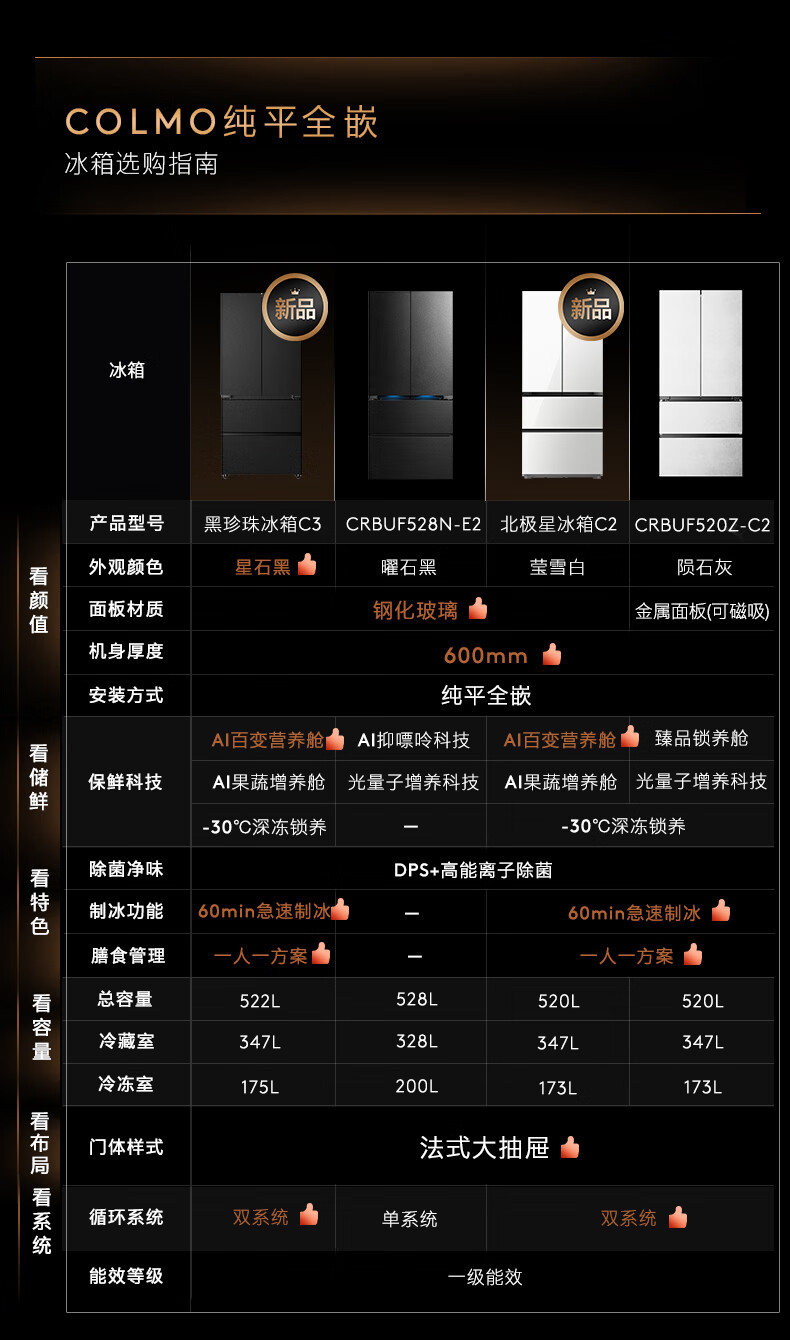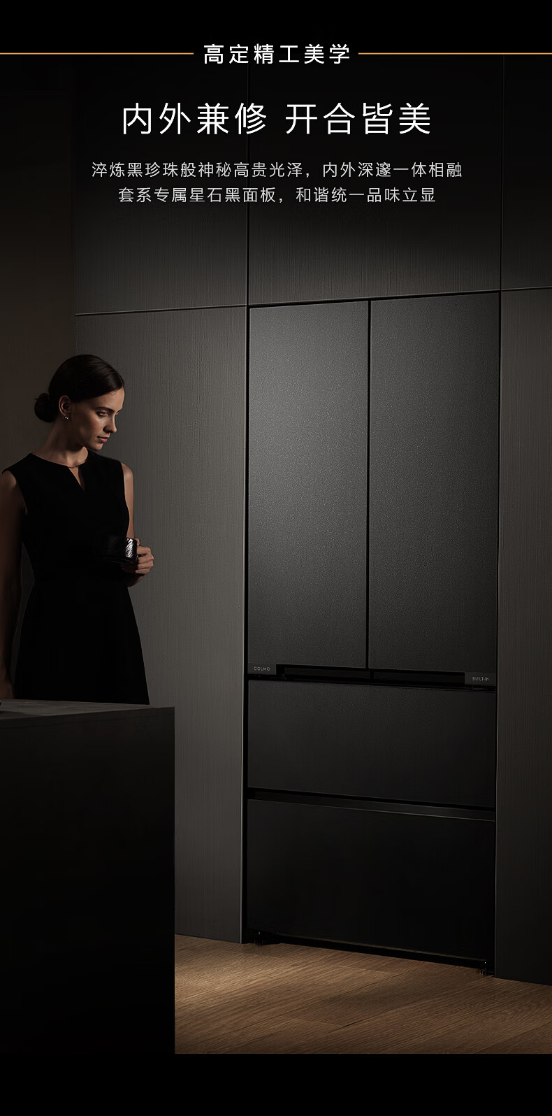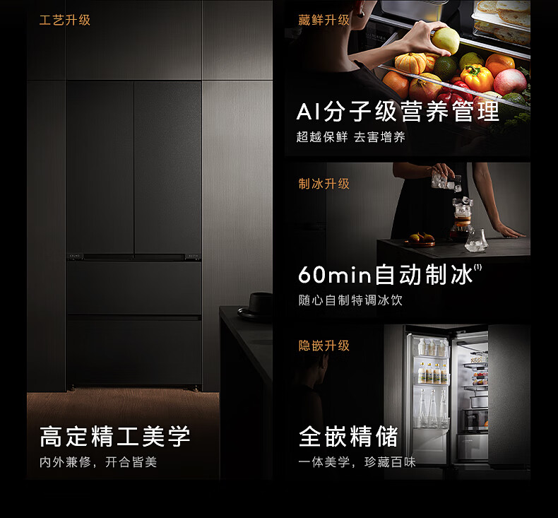 COLMO黑珍珠522L法式多门冰箱自动制冰纯平全嵌一级能效双系统AI分子级珍养星石黑CRBUF522-C3国家补贴