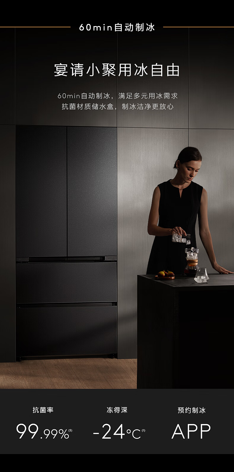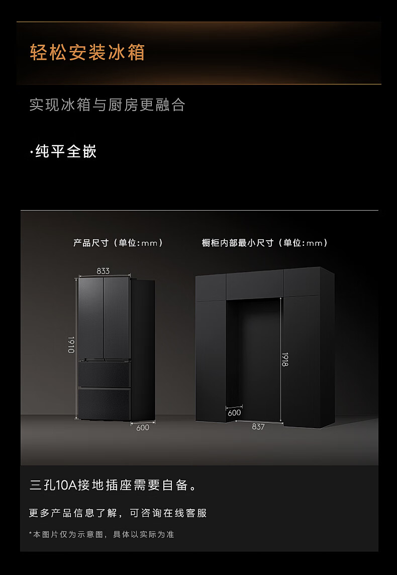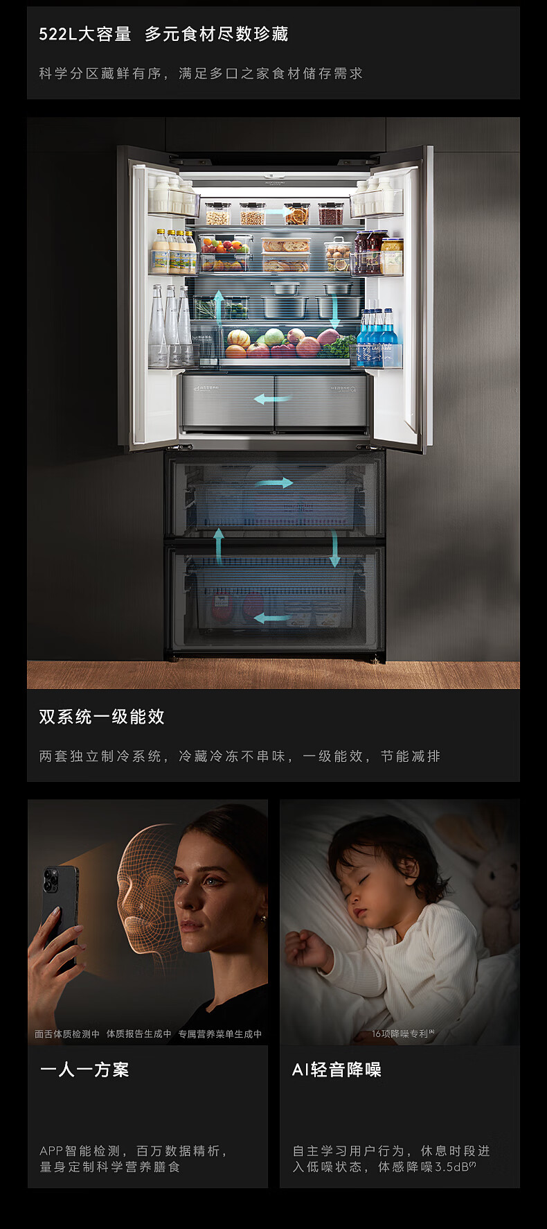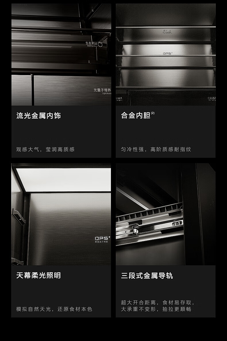 COLMO黑珍珠522L法式多门冰箱自动制冰纯平全嵌一级能效双系统AI分子级珍养星石黑CRBUF522-C3国家补贴