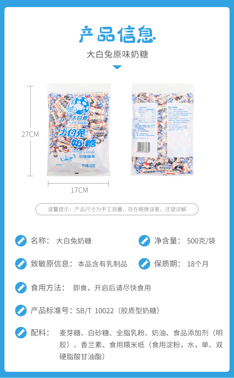 大白兔奶糖500g袋装 牛奶结婚庆喜糖果散装中华老字号特产零食