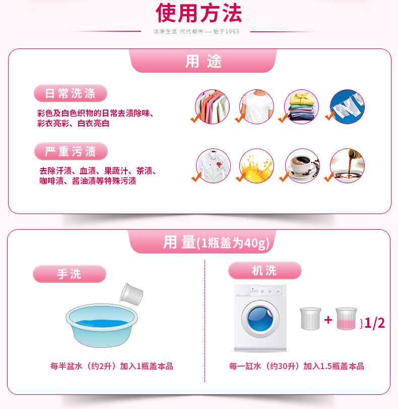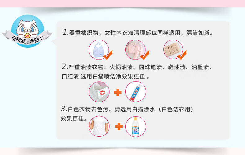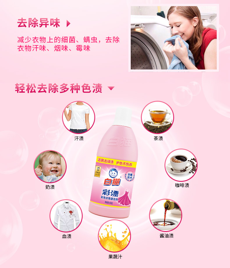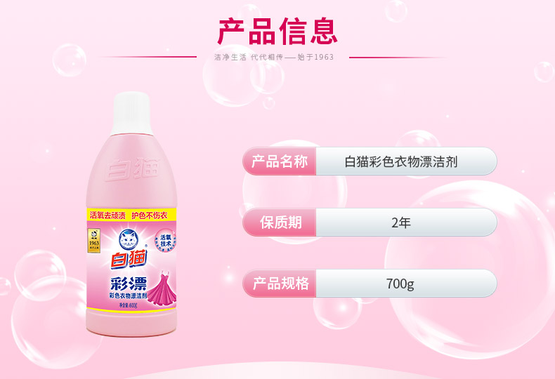 白猫 彩漂700g 护色增艳 去除异味 漂渍液 漂白剂 衣物漂白