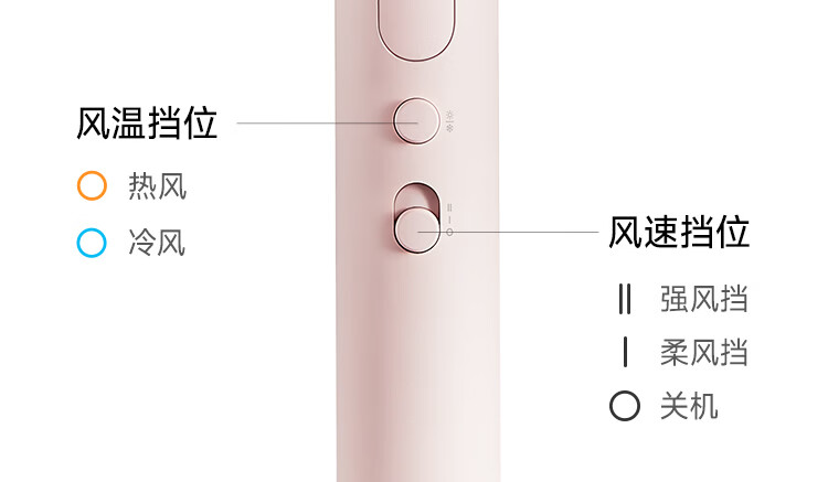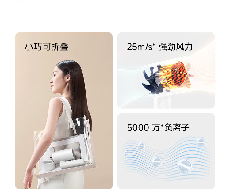 米家小米电吹风机负离子护发便携可折叠大风力速干H101家用宿舍学生风筒 出行必备新年生日礼物 粉色