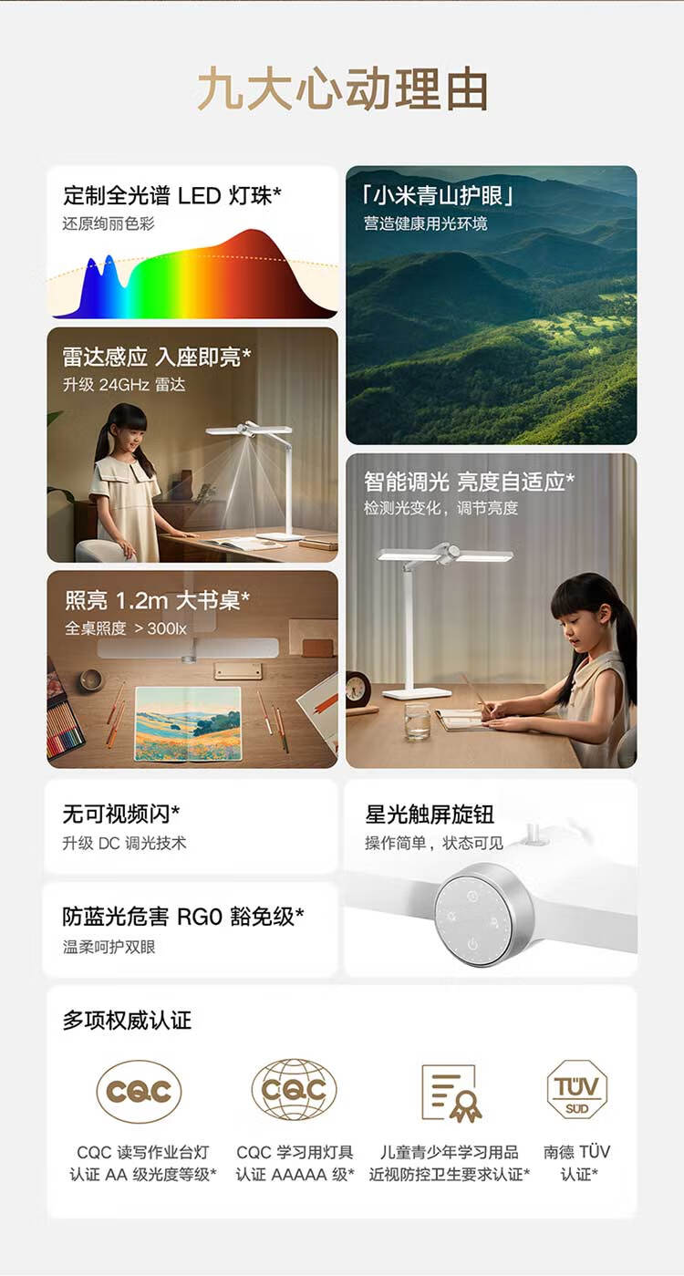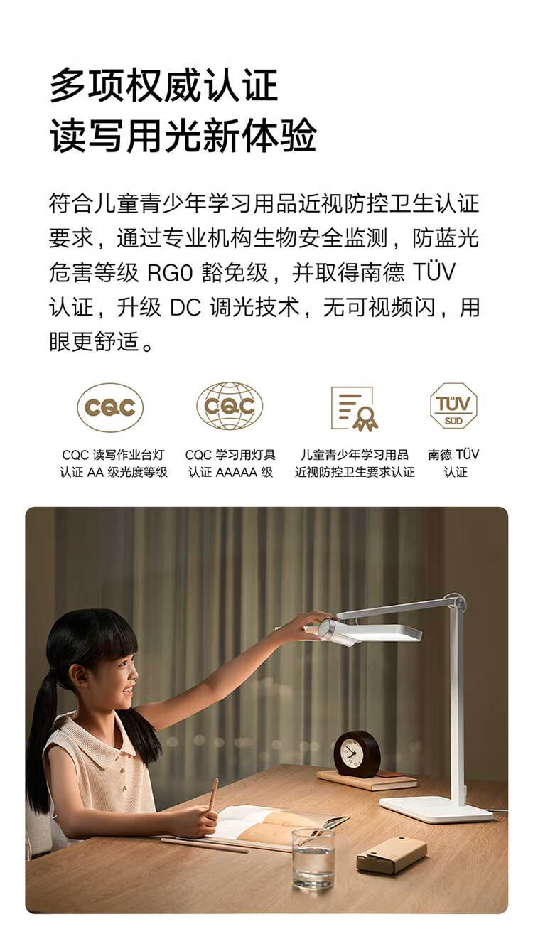 欧普照明(OPPLE)智控调光护眼台灯学习儿童学生防蓝光防近视全光谱米悦pro