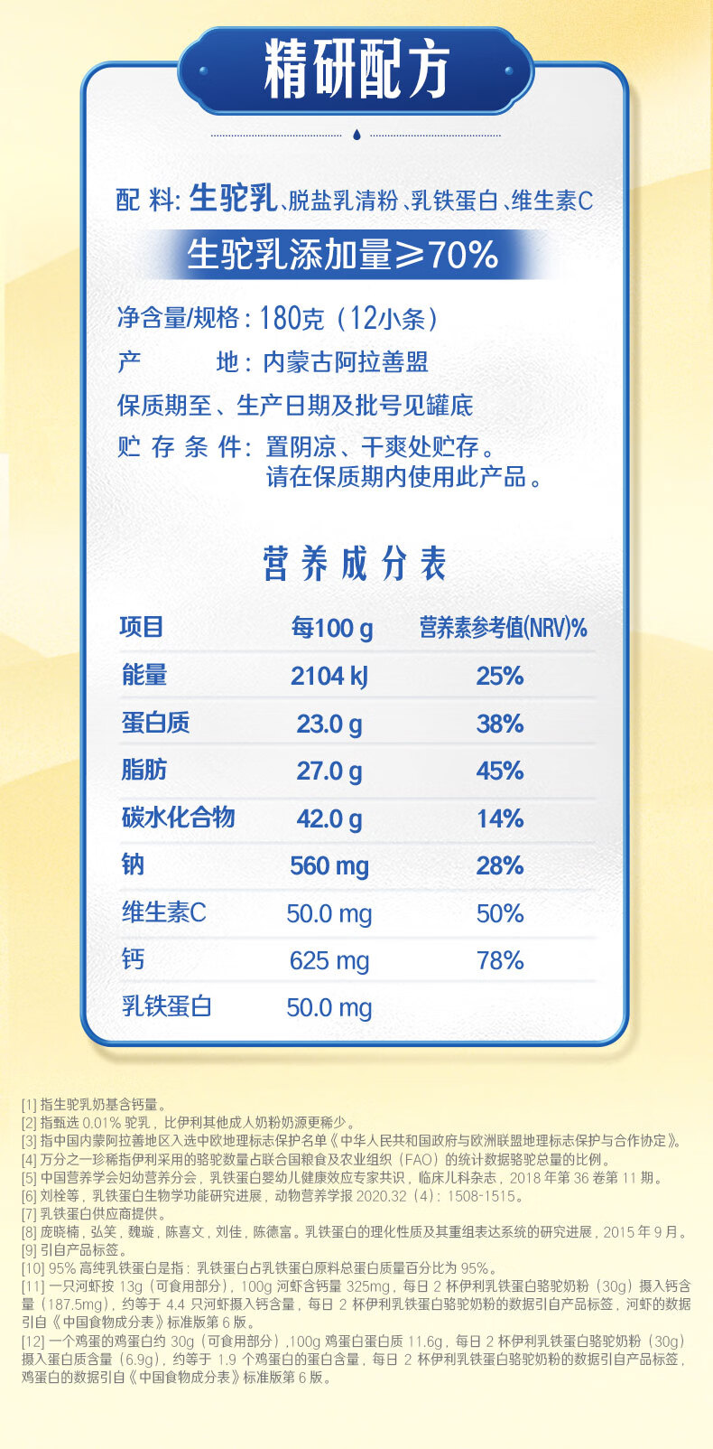 伊利沙漠礼赞乳铁蛋白骆驼奶粉 年货节送礼 成人奶粉 老年人营养 180g