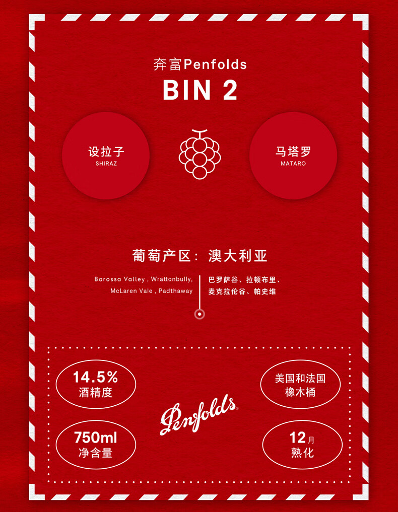 Penfolds【奔富官旗】Bin2/Bin389/Bin407红葡萄酒750ml 澳洲进口正品送礼 Bin2 双支马年生肖礼盒装