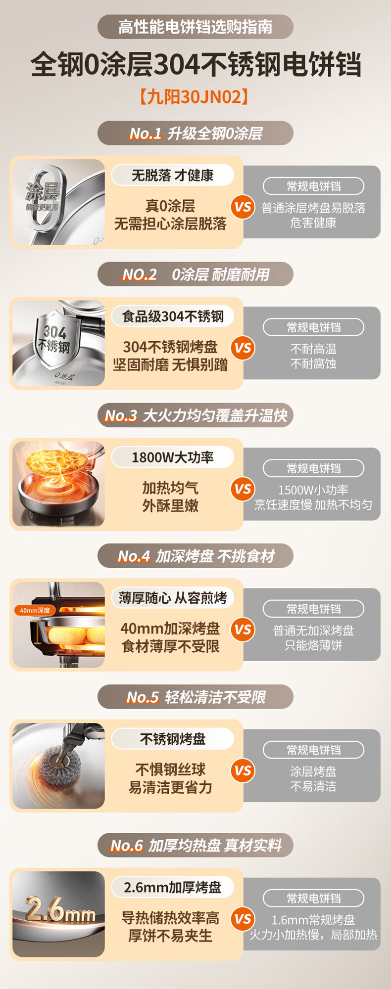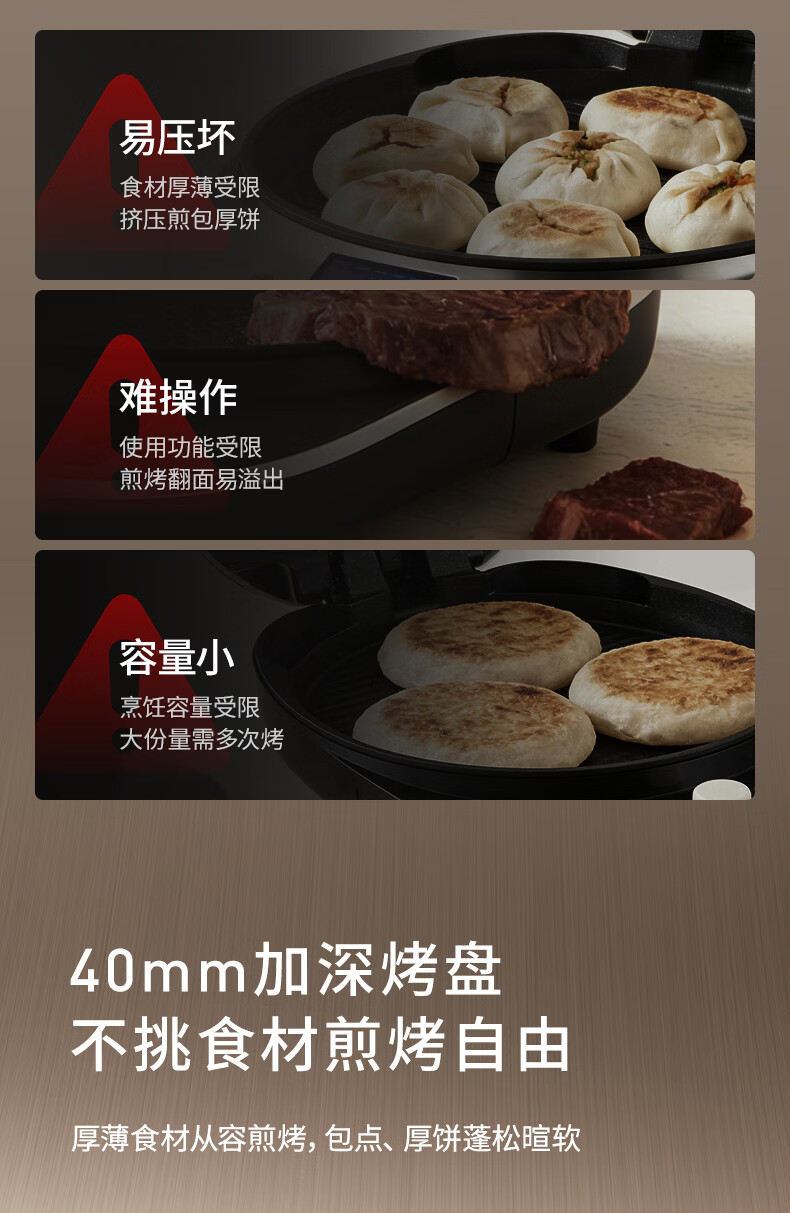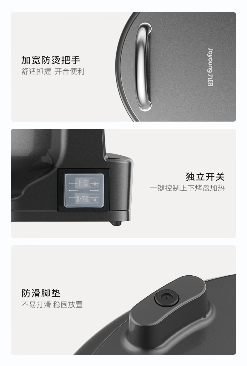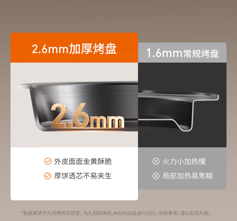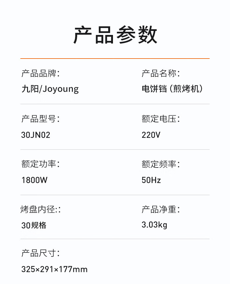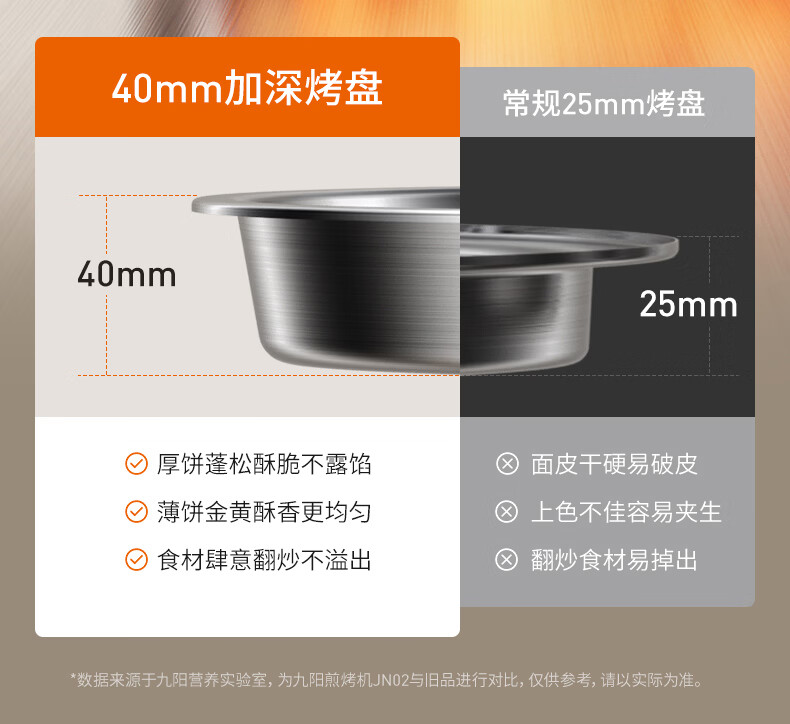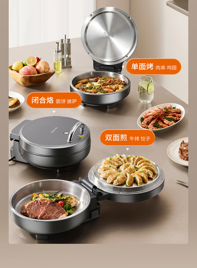 九阳电饼铛不锈钢家用0涂层烙饼锅1800W双面加热煎饼锅烤肉锅小精钢多功能40mm加深加大早餐机无涂层锅 30JN02