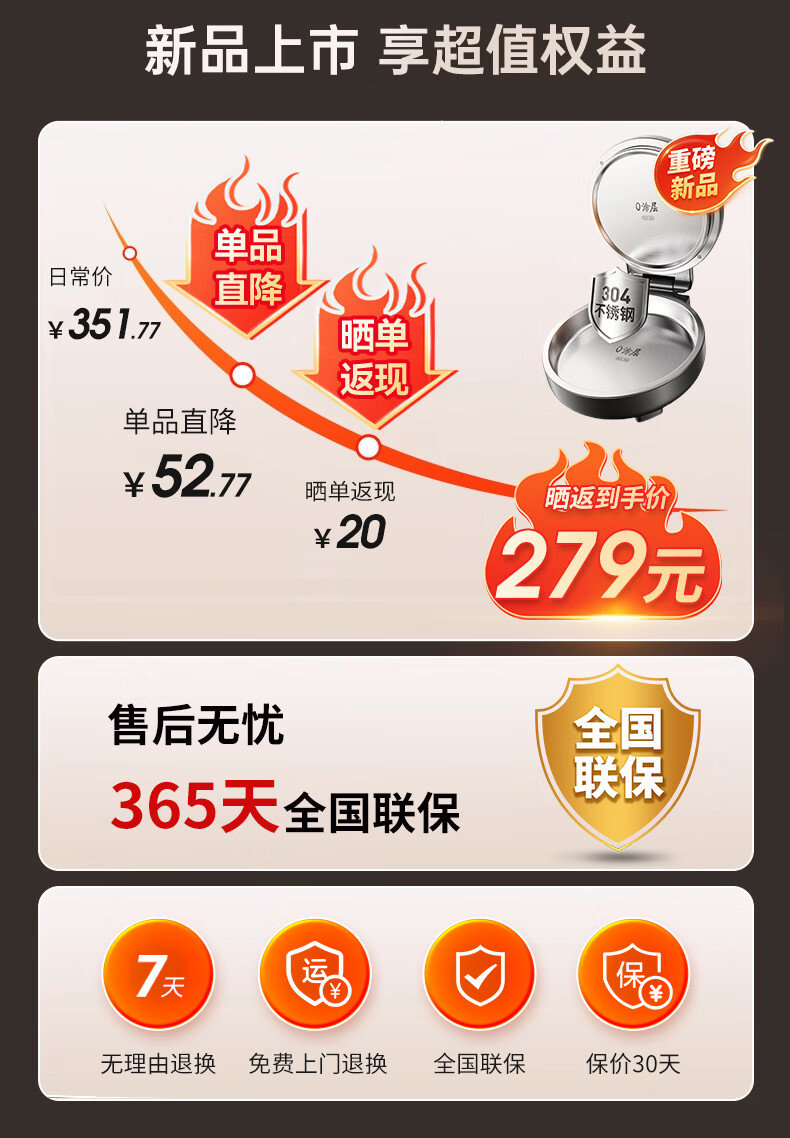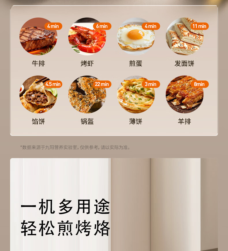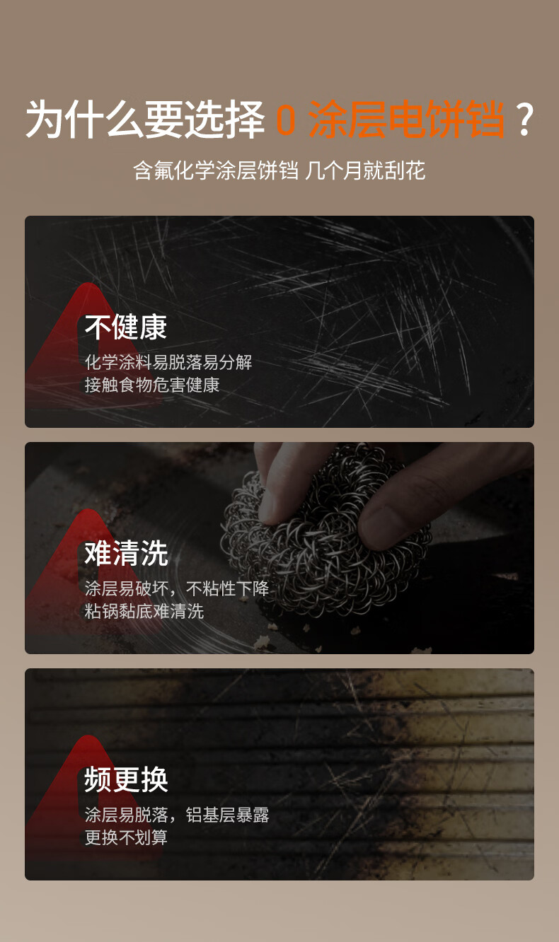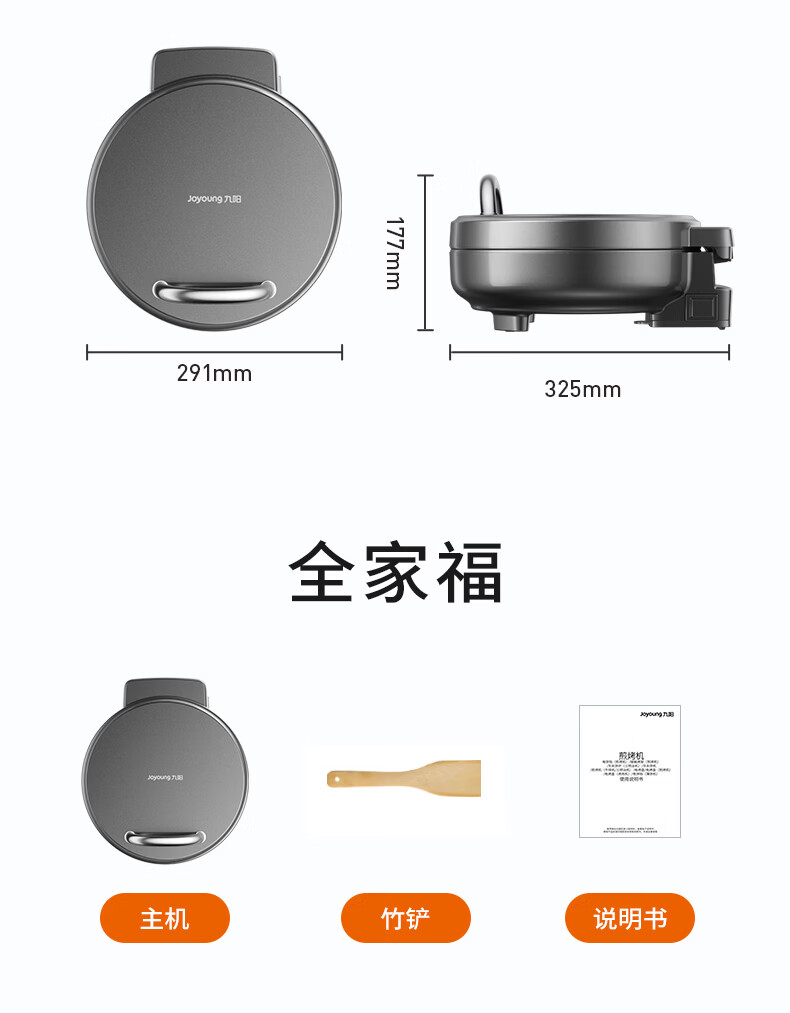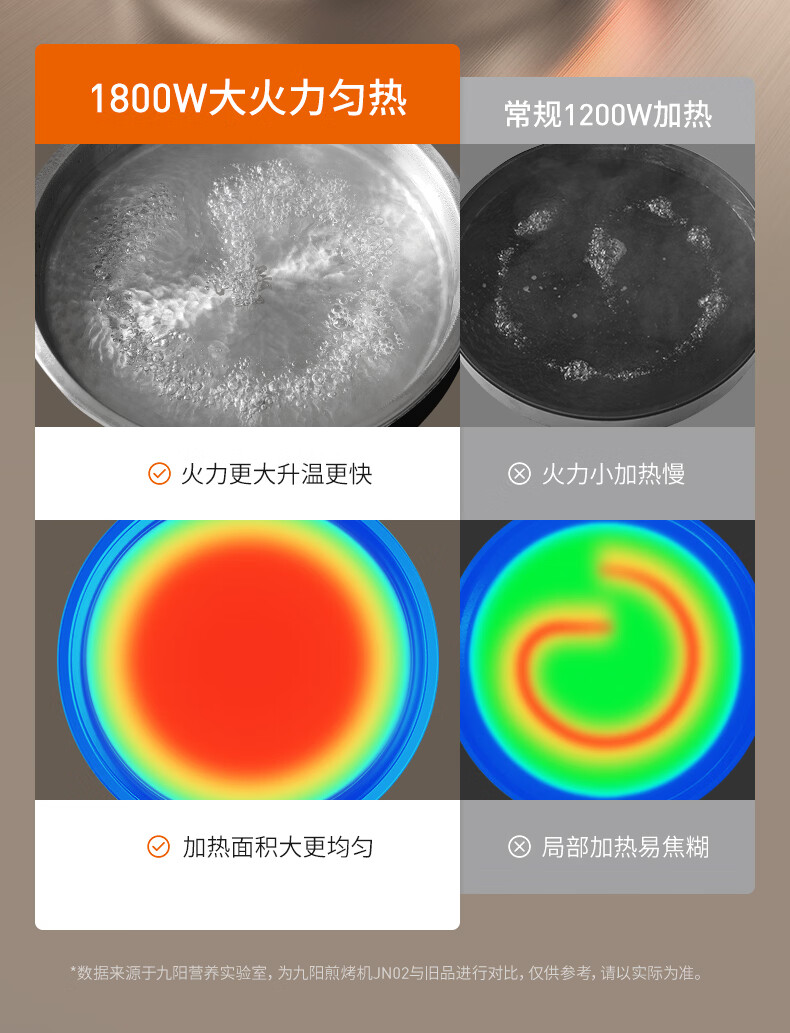 九阳电饼铛不锈钢家用0涂层烙饼锅1800W双面加热煎饼锅烤肉锅小精钢多功能40mm加深加大早餐机无涂层锅 30JN02