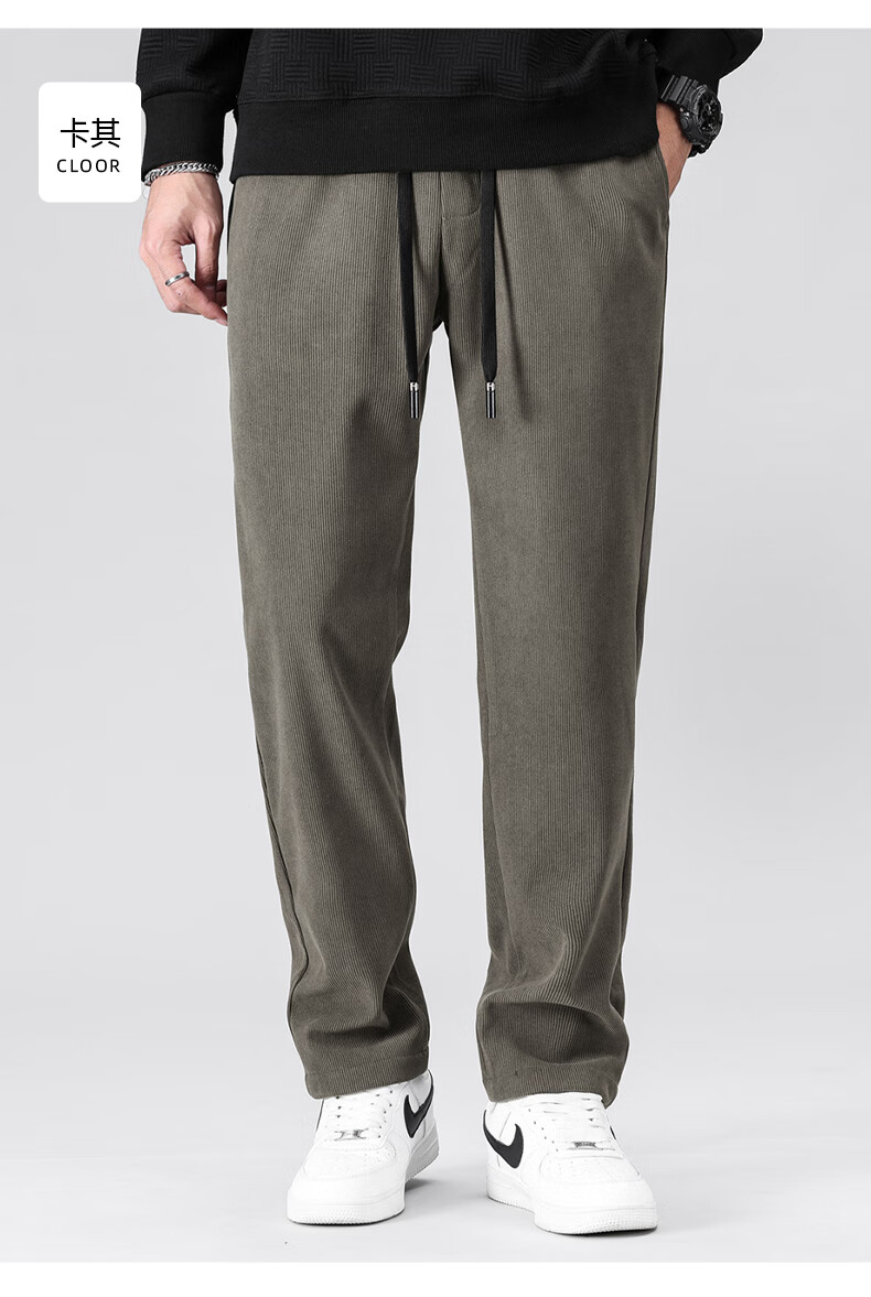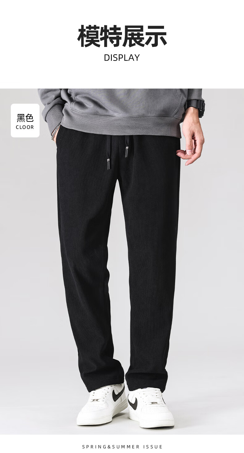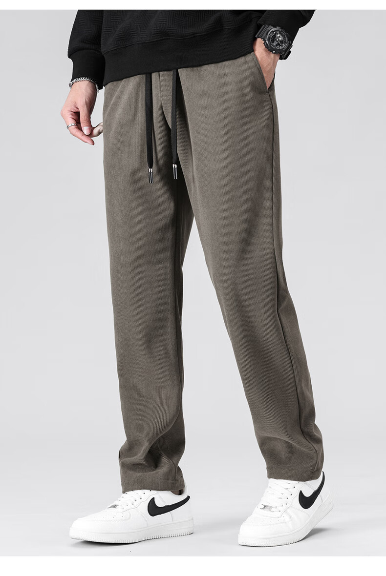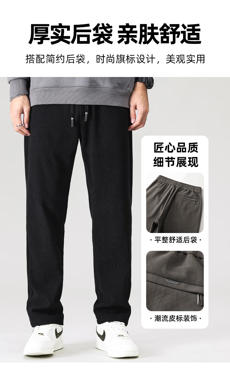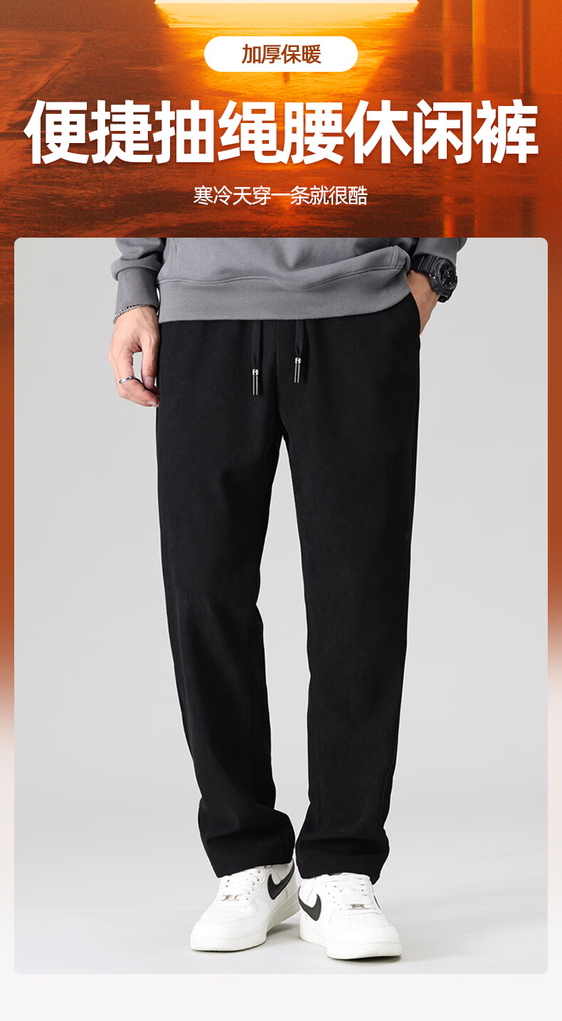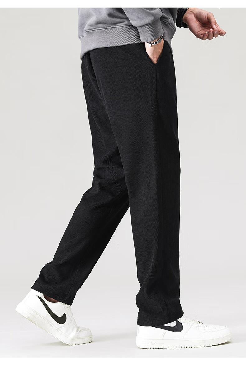 罗蒙(ROMON)【加绒可选】灯芯绒加厚休闲裤男秋冬新款抽绳腰中青年直筒长裤男 5K035635H黑色【加厚款】 L (175) (建议110-130斤)